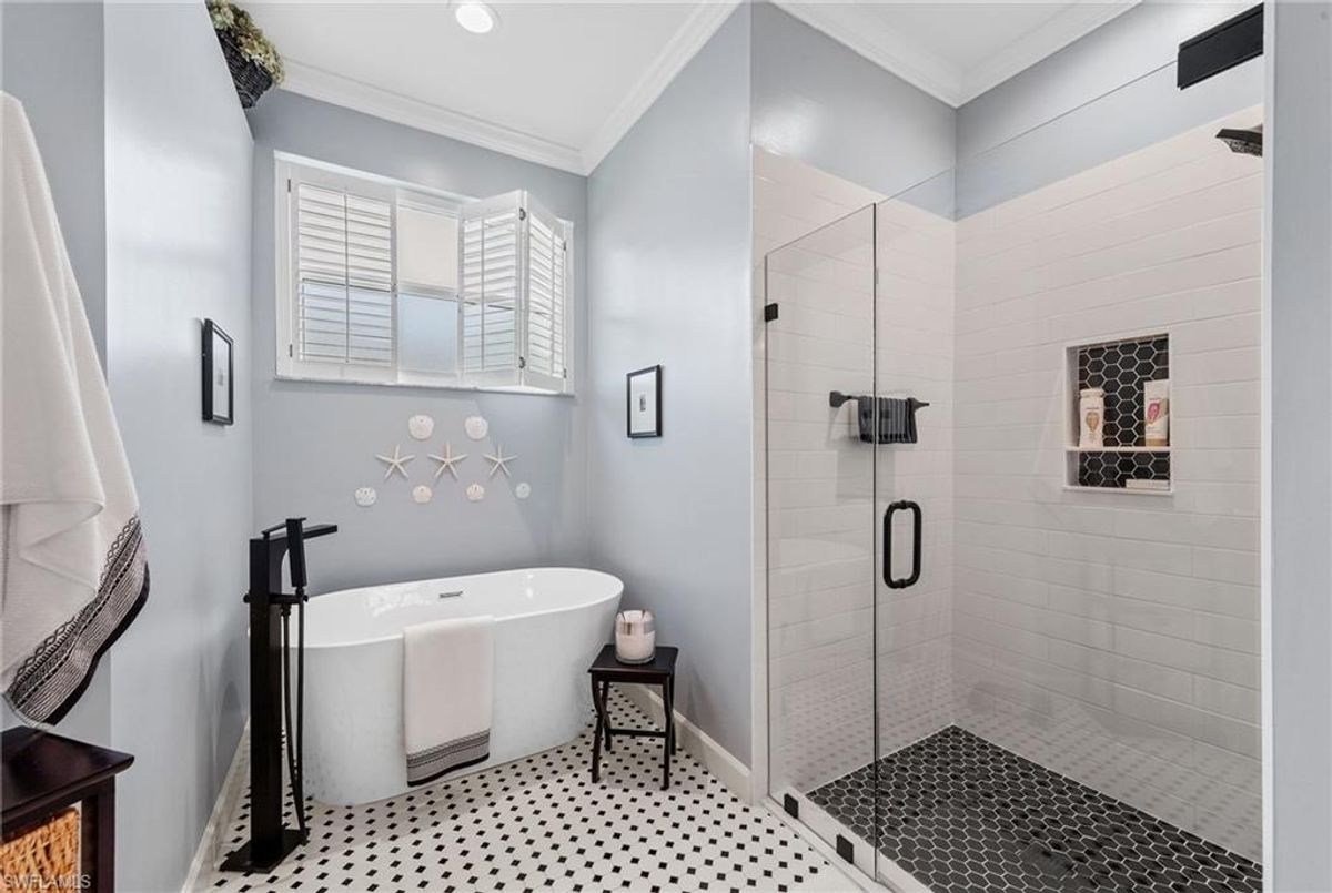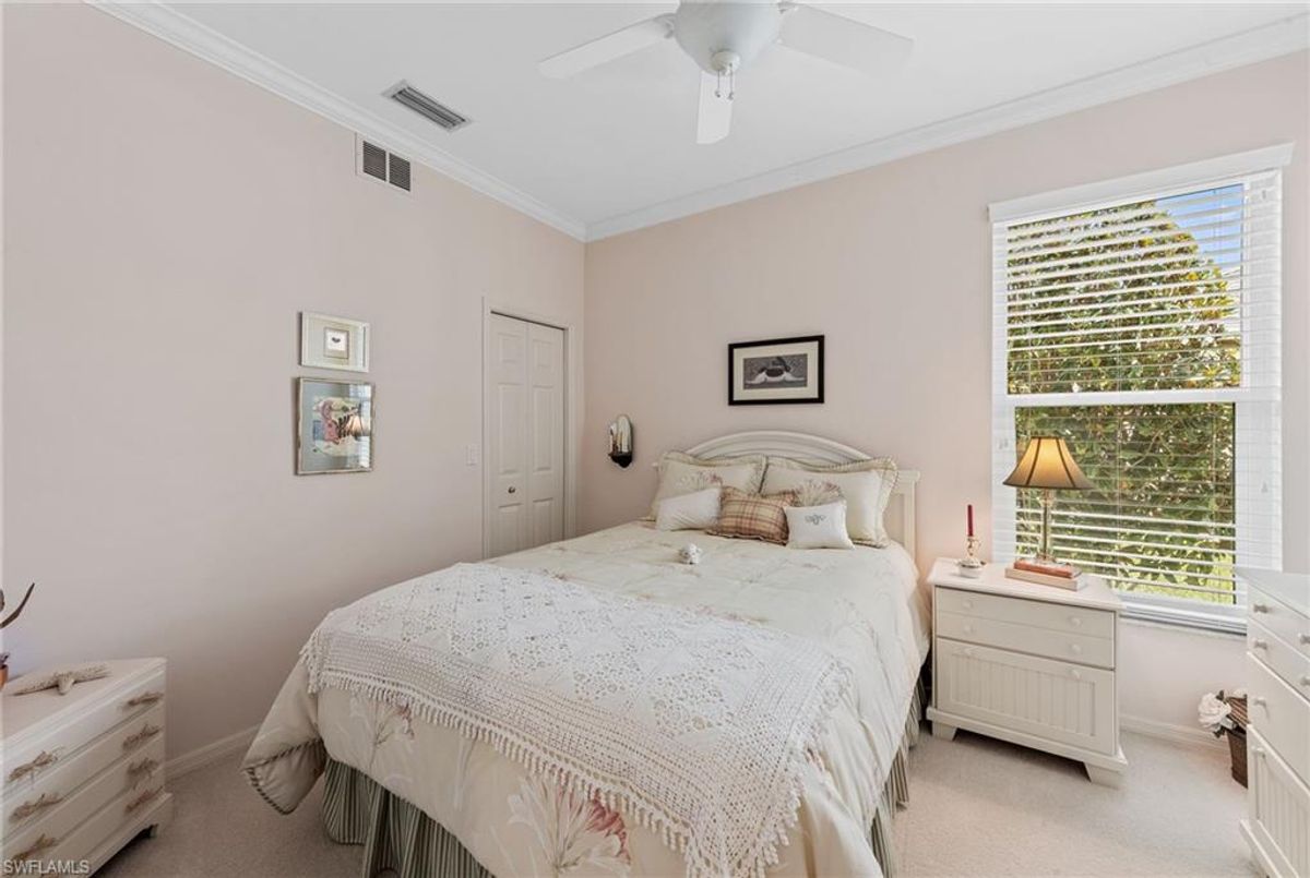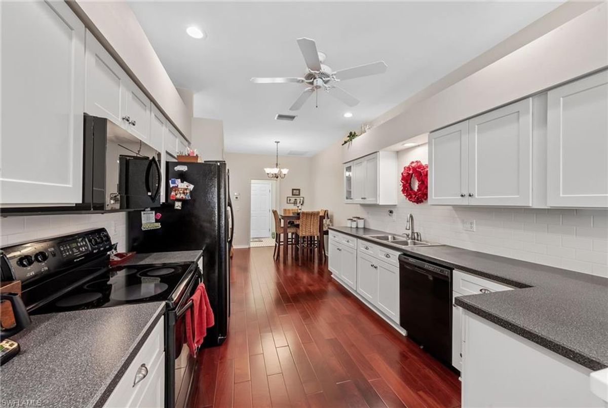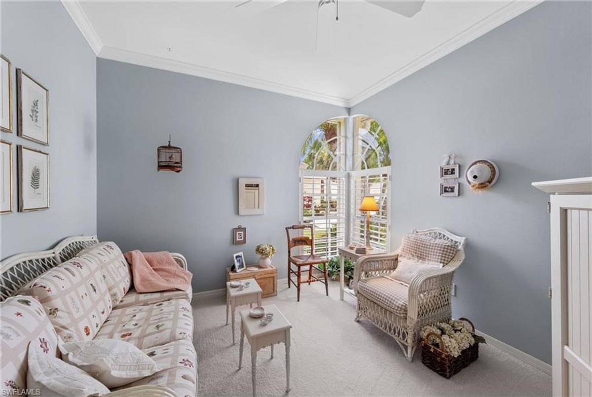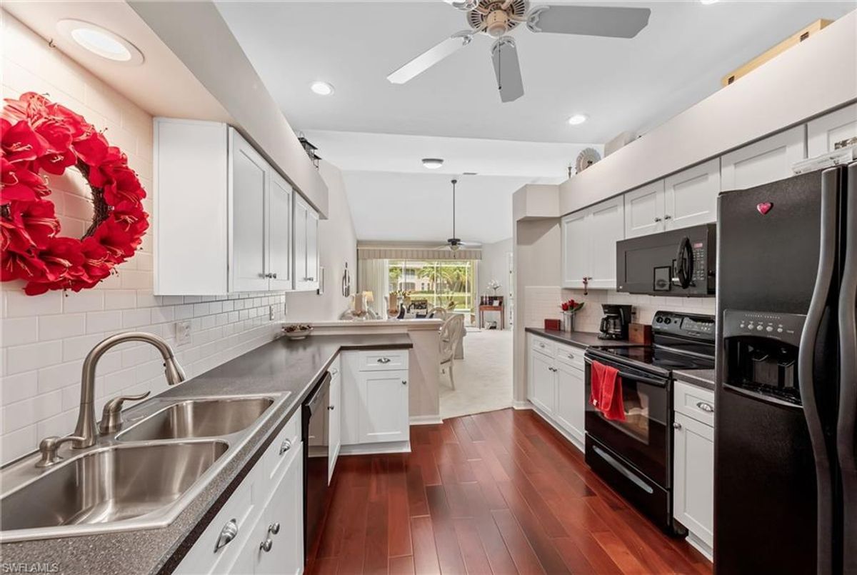 Welcome to this immaculately maintained lakefront pool home and light-filled villa, with 2 bedrooms & Den, 2 baths and 2 car garage. Perfectly positioned to capture serene lake views with an open, airy floor plan that instantly feels like home. From the moment you step into the spacious Great Room, you’ll notice the plush carpeting, soaring vaulted ceilings, and an abundance of natural light enhanced by fresh white paint—creating a clean canvas ready for your personal touch. Beautiful Mahogany wood flooring in both the entry and kitchen. The updated kitchen is a chef’s delight, featuring sleek stainless steel appliances, elegant countertops, and two separate dining areas—ideal for both entertaining and casual meals. The generous primary suite serves as a private retreat, complete with a luxurious spa like ensuite bathroom offering dual sinks, a walk-in shower with custom tile, and a separate stand alone soaking tub for the ultimate relaxation experience. A versatile den provides the perfect space for a home office, guest room, or cozy reading nook. Step outside to your private screened-in lanai with pool, where you can enjoy peaceful lake views and gentle Florida breezes. For added comfort and peace of mind, the lanai includes a hurricane-rated, remote-operated shade. A/C was replaced in 2022, water heater 2024. New roofs were just installed and exteriors painted this year! Hurricane windows on the rear of the home and side bathroom, other openings have metal shutters. The home is even nicer in person than the pictures show! Located in the highly sought-after Marsh Landing community, residents enjoy access to exceptional amenities including a heated pool and spa, tennis courts, four pickleball courts, basketball, bocce ball, a fitness center, and a welcoming clubhouse. Just across the street from Coconut Point Mall, you're minutes from top-tier shopping, dining, and entertainment, as well as RSW International Airport and the stunning Gulf beaches. Don’t miss this opportunity to live the Southwest Florida lifestyle you’ve been dreaming of! ...