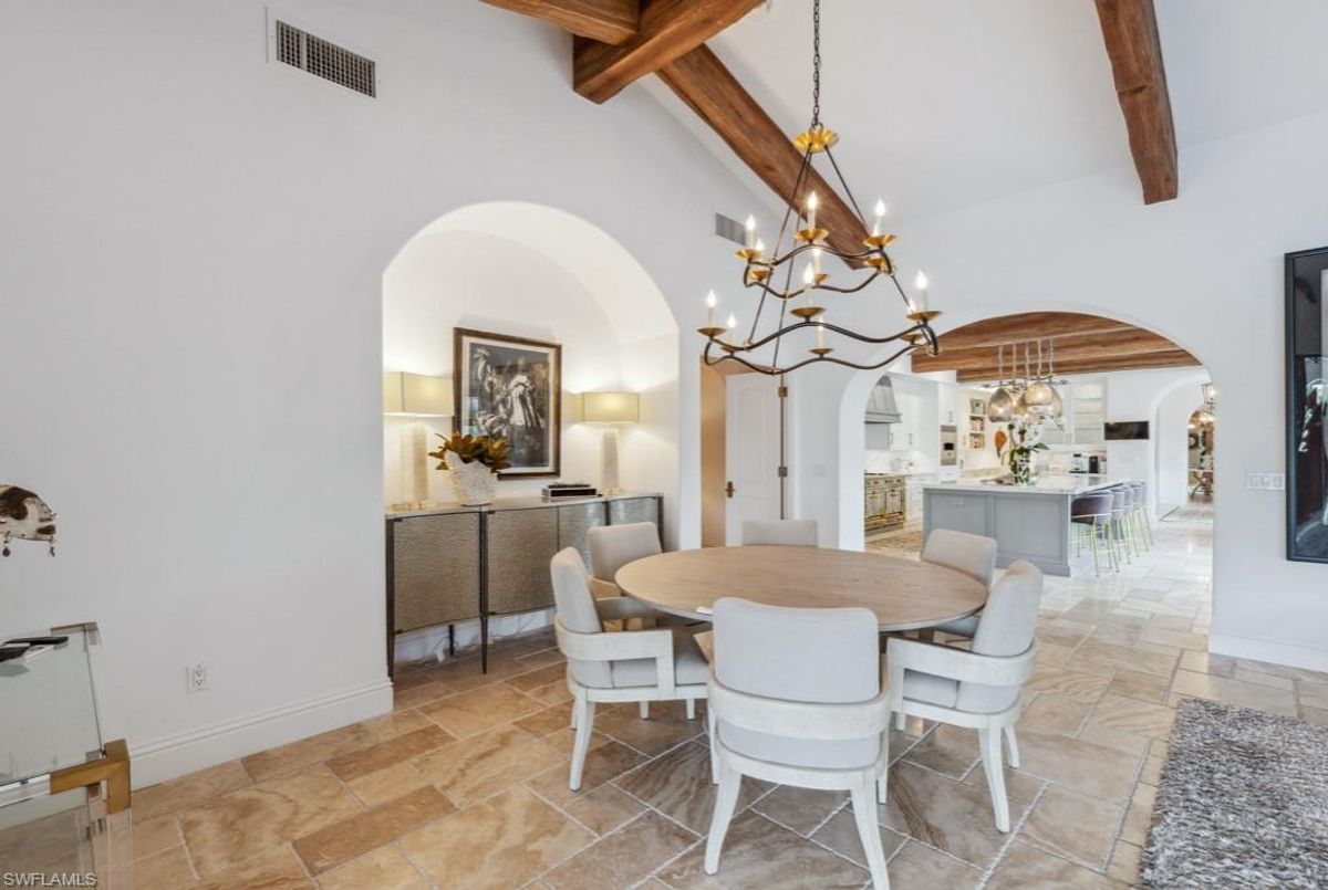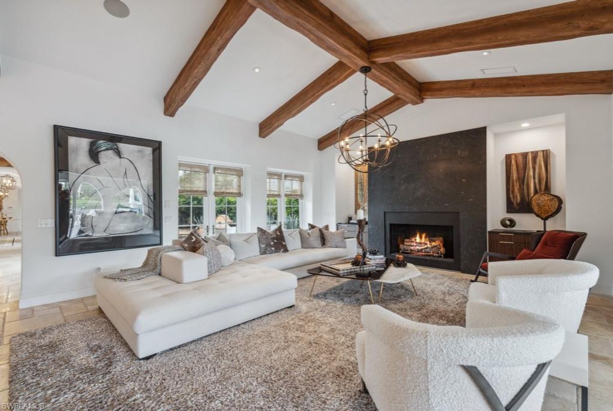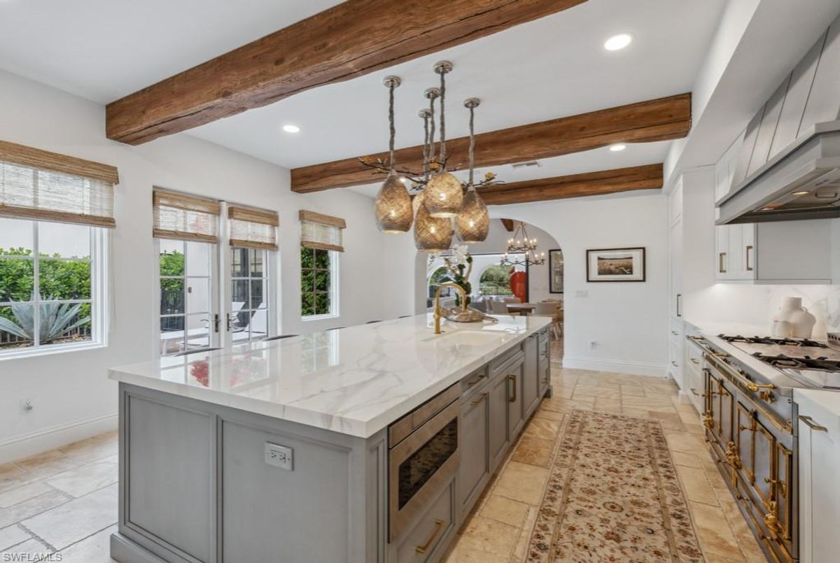 Located in the beautiful Mediterra Golf & Country Club - NEWLY RENOVATED PRIVATE BEACH CLUB - truly captivating home from London Bay, reminiscent of the finest Spanish-style Italian homes. This luxurious abode greets you through a private courtyard entry leading into French doors that open to the beautiful foyer accented with stone masonry. The spacious family room, highlighted by brilliant stone floors and rich wood beam ceilings, as well as a cozy fireplace, pocketing glass sliders, and automatic lanai screens, allows for a seamless flow between the indoors and out. The chef-quality kitchen is remarkable, with the most dazzling marble countertops, oversized center island, Walk-in pantry, expanded cabinetry, premium La Cornue Cháteau Gas Range, SubZero refrigerator, built-in pizza oven, and even a refrigerated Wine room & bar adjacent to the kitchen. Additionally, this home features impact windows and doors that add peace of mind. Entertaining is a delight with a full home theatre room, complete with a separate movie lobby equipped with a wet bar and powder bath. There’s also a serene home office space with lots of natural light through lovely French doors. The primary suite is indulgent, with large windows, tall tray ceilings, a walk-in shower, a separate tub, dual vanities, and a walk-in closet. Guests are always comfortable with a downstairs or upstairs suite available. For those who enjoy the outdoors, this home is full of excellent options, from the pool courtyard with fire bowls and water features to the covered loggia with a built-in summer kitchen featuring a Hestan Grill and a fireplace with dining and living areas. Step beyond the lanai to the awe-inspiring backyard with a phenomenal view of the fountain lake view, and neighborhood garden park beyond. Friends and family will be delighted with spacious seating around the fire pit; there’s even a fenced lawn for young children or pets! Mediterra is a prestigious luxury golf & country club community featuring Two championship Tom-Fazio golf courses for avid golfers, a private beach club with restaurant & bar, multiple tennis courts, pickle-ball & bocce, fitness center, pristine bike & jogging trails, and luxurious dining at the private country club restaurant. The Mediterra Beach Club offers an escape to a 10,000 sq. ft two-story private oceanfront paradise on the Gulf of Mexico. Featuring a restaurant & bar that serves members via indoor & outdoor dining, this private facility boasts a heated swimming pool, a sundeck, and cabana beach service for chairs, umbrellas & refreshments.
