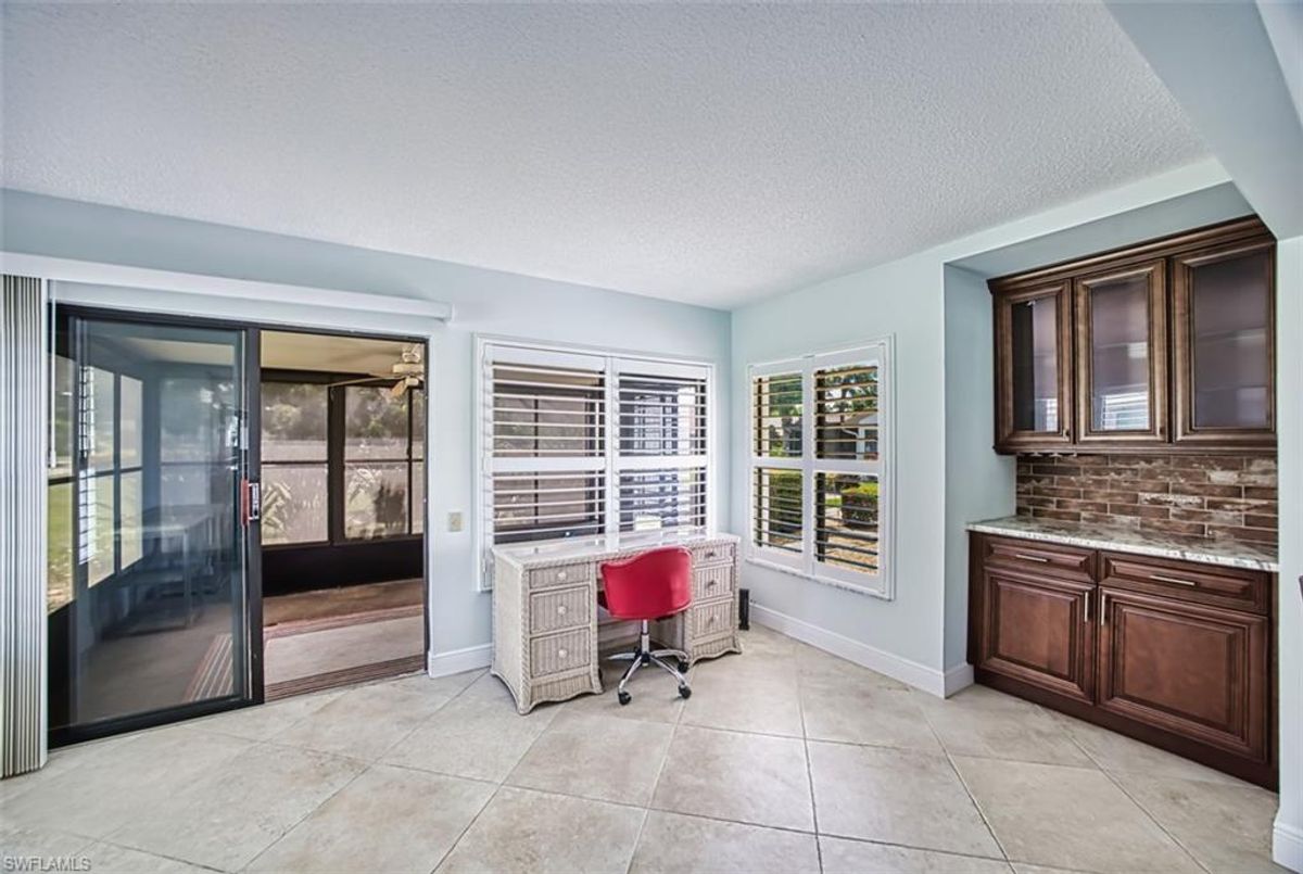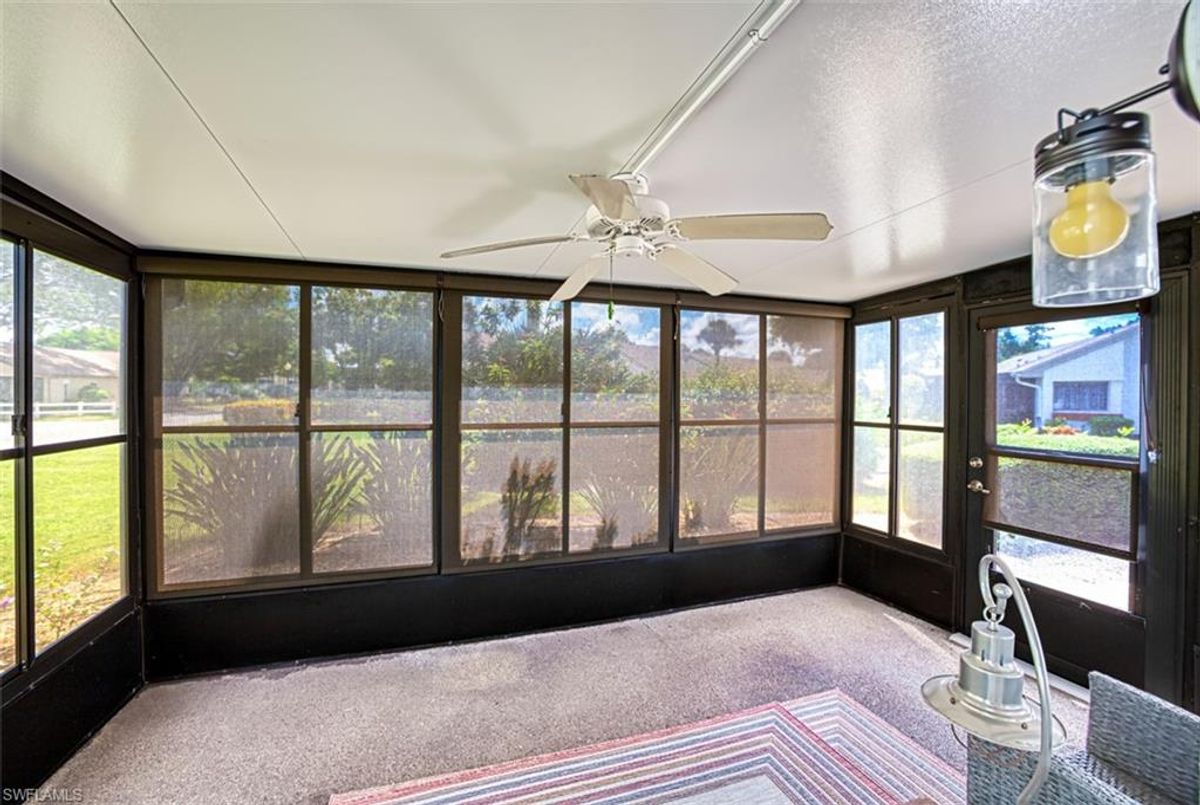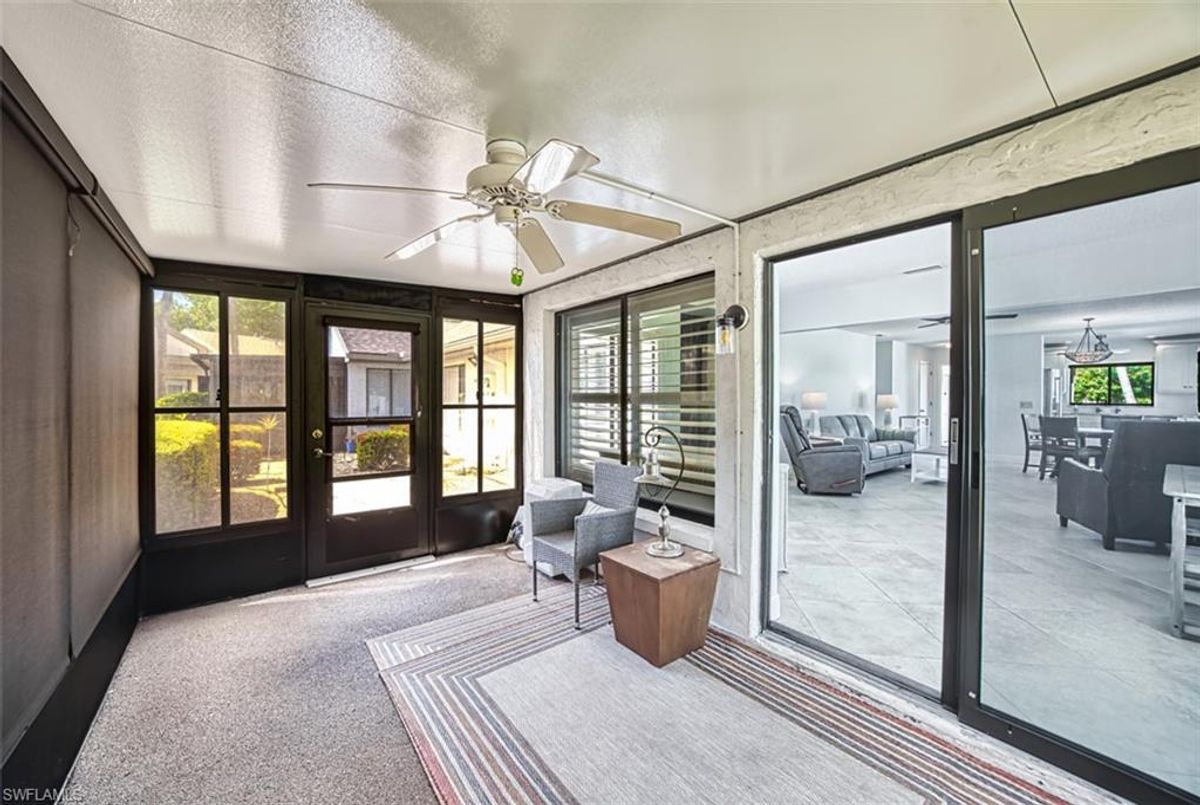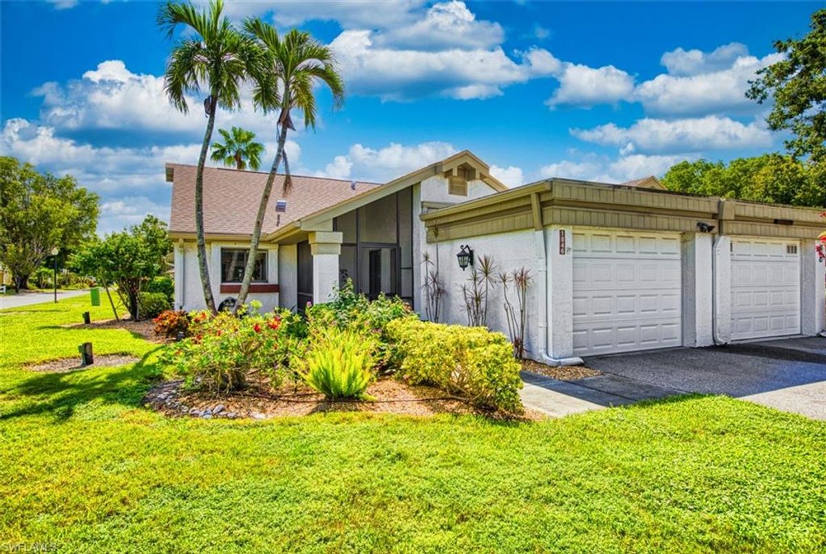 Amazing Price! Welcome to this Nicely Furnished and Updated 2 Bedroom, 2 Bath Garden Villa! The "Lido" Floorplan is 1230 Sq Ft. Located in the Seven Lakes Golf & Tennis Community. Granite Kitchen Countertops, Stainless Steel Appliances, Plantation Shutters and Tile flooring throughout. Split Bedroom Floorplan. Screened in Lanai with Interior Windows, Electronic Shades and Portable A/C. Updated Electrical, insulation and ductwork cleaning 2023. Halo Air Purification system 2023. Reverse Osmosis. Full Size Maytag Washer & Dryer. A/C is 2018. Hot Water Heater is 2016. Roof is 2023. Bundled Golf Community. Executive Golf Course is Newer! Active Adult 55+ Community offers 6 Heated Pools, 6 Har Tru Tennis Courts, Shuffleboard, Bocce ball, Pickle ball, Library Card rooms, Exercise room, Billiards, Wood Shop, Hobbies, Crafts, Cards, Restaurant, Full Time Recreational Area with Dinners, Movies and Dancing Events. Pet Friendly (1 pet under 25 lbs). 24 hour manned guard gate. The monthly Fee includes Bundled Golf for 2, Internet Wi-Fi, Cable, Water, Sewer, Structure Insurance, Trash & Building Maintenance. You only pay for Electricity! NO Golf Transfer fees, NO Golf Green Fees & NO Food Minimum in the restaurant. Minutes to Restaurants, Beaches & RSW Airport! Quick closing is possible. Come visit paradise!