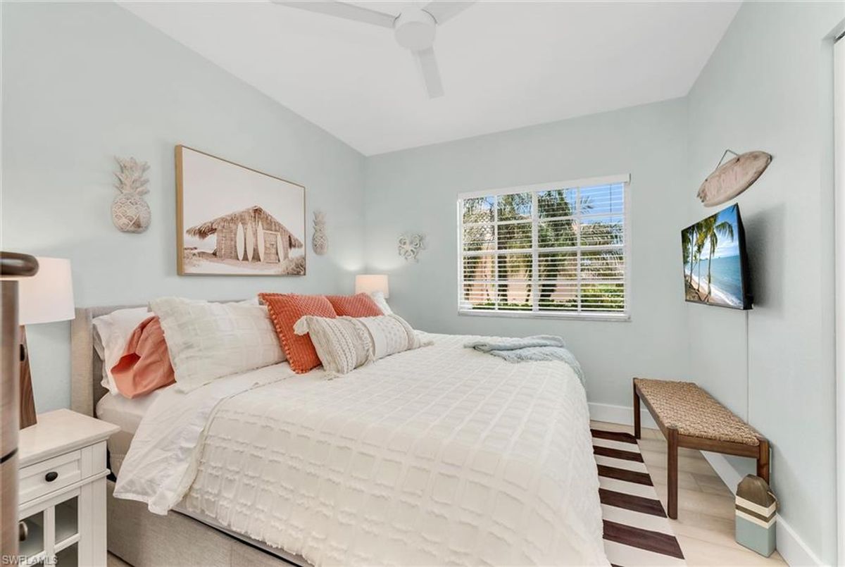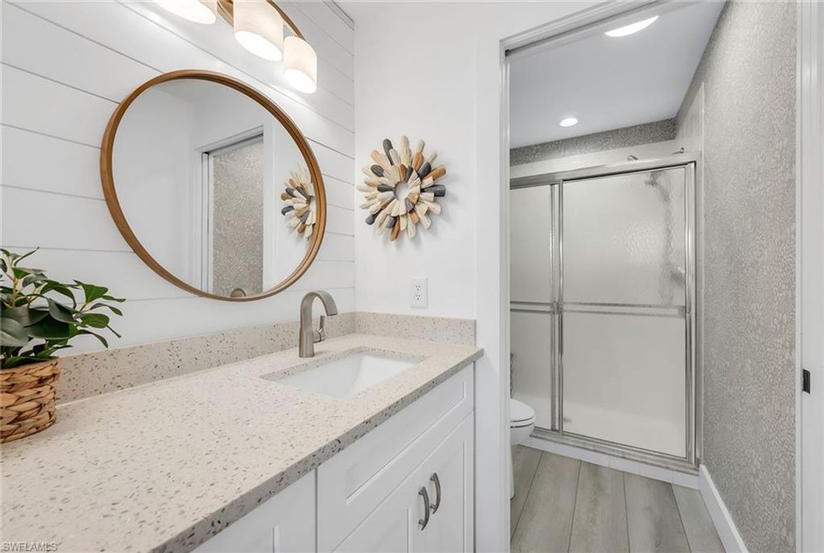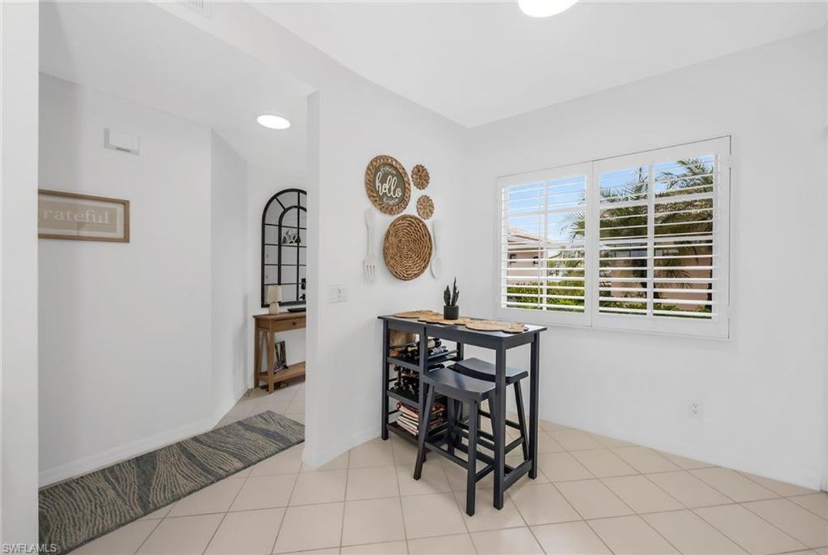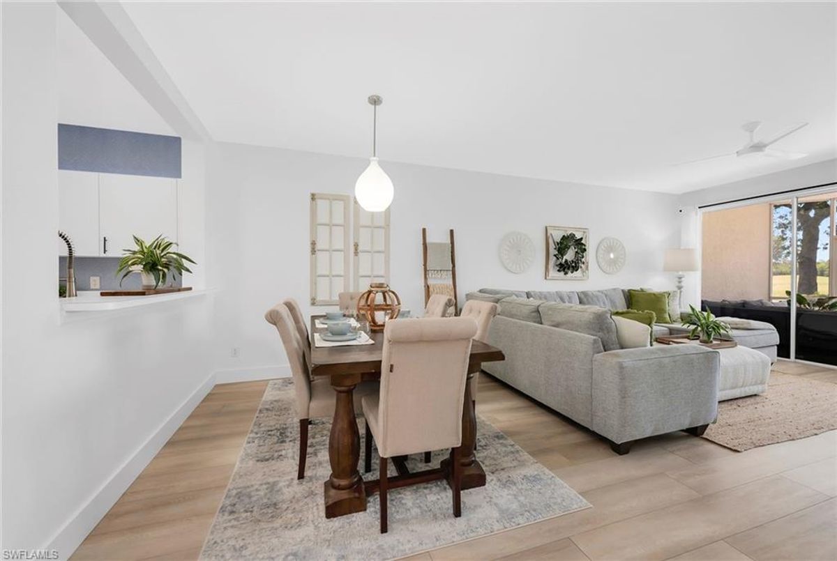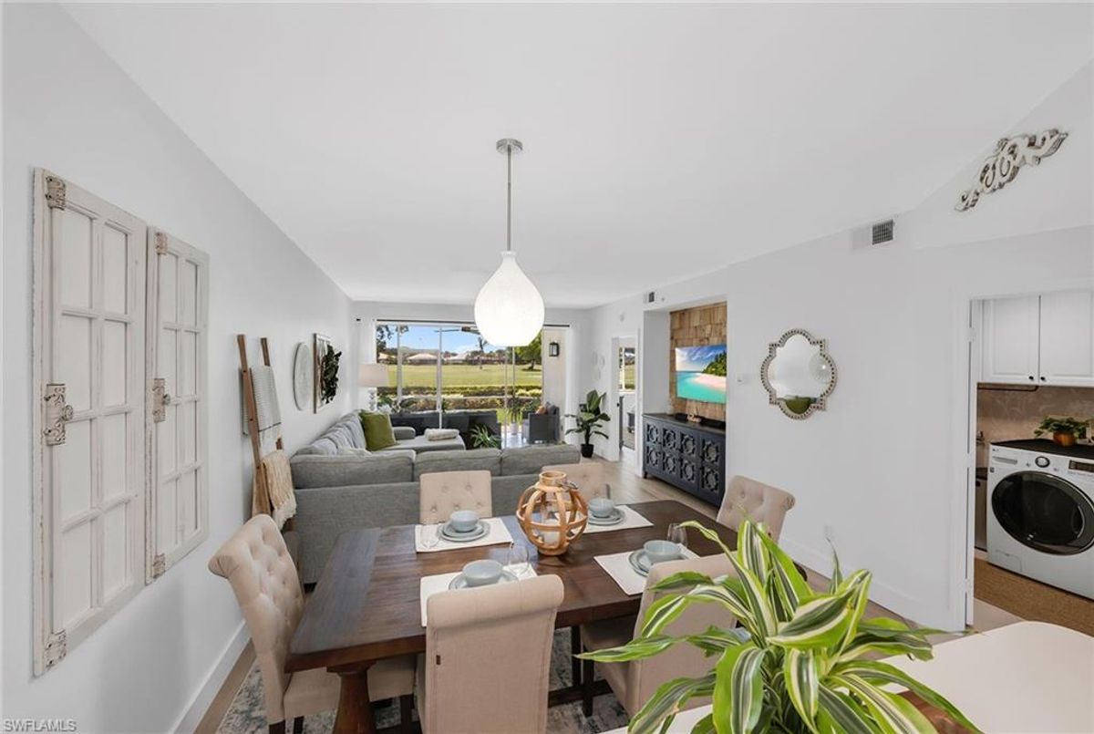 Are you searching for stunning sunset views, peaceful golf course vistas and an updated residence in the heart of Lely Resort? This western-facing condominium at Peridot at Sunstone offers wide and private views of the golf course from a spacious screened lanai, setting the tone for serene outdoor living. With recent upgrades throughout, this two-bedroom, two-bath unit with a garage delivers a refined lifestyle and unbeatable value in one of Naples sought-after resort communities. Freshly painted from top to bottom, this 1,248-square-foot home features a welcoming interior with updated molding, diagonal tile, and new luxury vinyl plank flooring throughout the living areas and bedrooms. The kitchen is light and functional with white cabinetry, recessed lighting, a ceiling fan, plantation shutters, a pantry and a full suite of appliances including a range, microwave, dishwasher, and refrigerator/freezer. The formal dining area flows into a bright living room with glass sliders that open to a screened lanai, where new no-see-um screens elevate the comfort and privacy of the outdoor space. The main suite offers more golf course views and includes new vinyl flooring, a closet with a new custom storage system and an en-suite bath featuring a quartz vanity with custom shiplap wall, built-in cabinetry and a glass-enclosed walk-in shower. The guest bedroom, on opposite side of the unit for added privacy, also features new vinyl plank flooring and is adjacent to a renovated bath. A spacious laundry room includes a utility sink, white overhead cabinetry, and an LG washer and dryer. A new water heater adds further value and efficiency. In addition to a private community pool and spa, residents have the option to join the award-winning Players Club and Spa, which offers exceptional amenities including three resort-style pools, a full-service spa, state-of-the-art fitness center with classes and instructors, bocce, tennis and pickleball courts, two restaurants, a dog park and an expanded tiki bar. Golf enthusiasts will appreciate the two nearby public courses. Ownership does not require membership in the Players Club, giving buyers flexibility to join if desired.