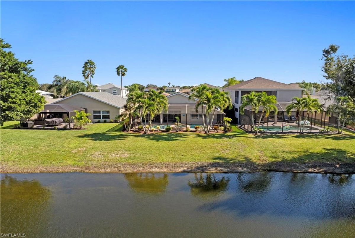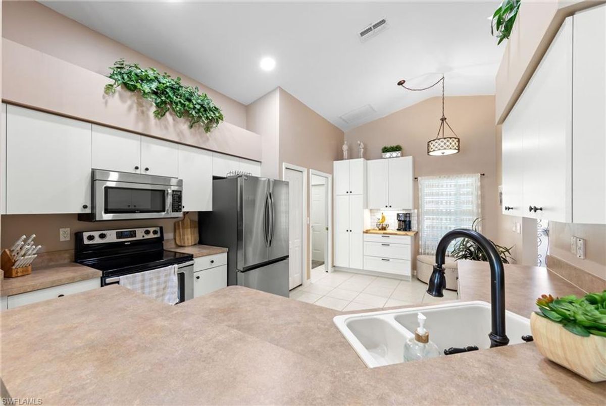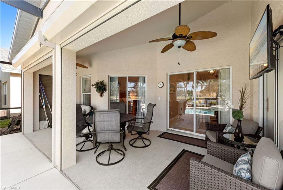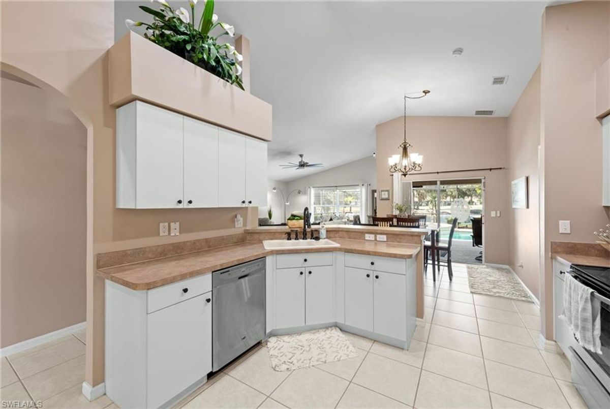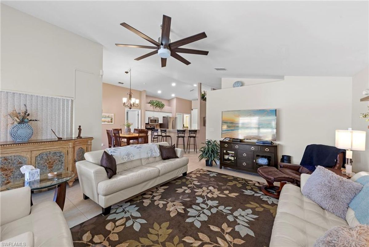 Experience the best of Florida living in this beautifully maintained 3-bedroom, 2-bath pool home with spa perfectly situated on a premium lakefront lot with panoramic golf course and lake views. The open great room floor plan features vaulted ceilings and large tile throughout the main living areas, creating a bright and inviting space perfect for entertaining. The kitchen overlooks the family room and includes a breakfast bar, ample cabinet space, and additional built-ins for storage. The spacious primary suite offers a walk-in closet, dual sinks, and a separate tub and shower. The guest bath has been tastefully remodeled with new shower tile and an updated vanity. When the home was built, the family room was enlarged to provide extra living space for relaxing or gathering with loved ones. Step out onto the screened lanai and take in the breathtaking panoramic lake and golf course views while enjoying your private heated pool and spa. With desirable western exposure, you’ll love watching colorful Florida sunsets year-round. Added peace of mind comes with electric hurricane shutters on all rear openings and impact glass windows in the front. This home perfectly combines comfort, functionality, and resort-style living in a serene lakefront setting—ready for you to move in and start enjoying the Florida lifestyle!Stoneybrook amenities offer something for everyone! Enjoy access to an exercise room, 3 community pools, tennis courts, pickleball, volleyball, basketball, bocce ball, a playground, and even a baseball field. The public golf course means you can pay as you play—no membership required. Conveniently located near shopping, dining, I-75, FGCU, beaches, and RSW airport. You're just a short drive to the golf clubhouse, CVS, Publix, Miromar Outlets, and Hertz Arena. With low association fees and a full range of amenities, it’s easy to see why Stoneybrook remains one of Estero’s most popular communities.