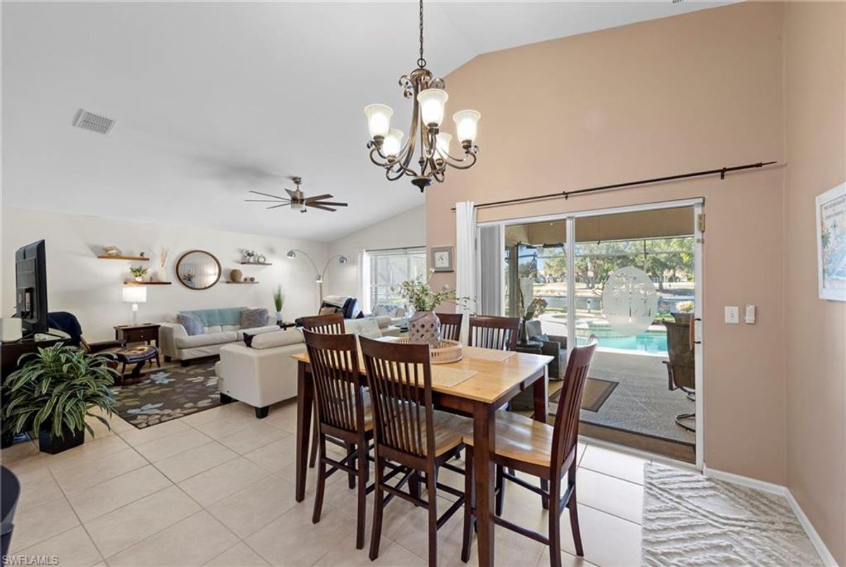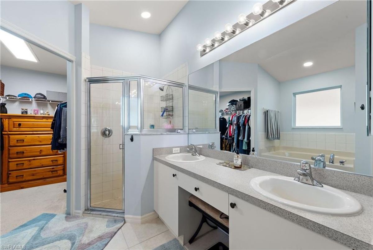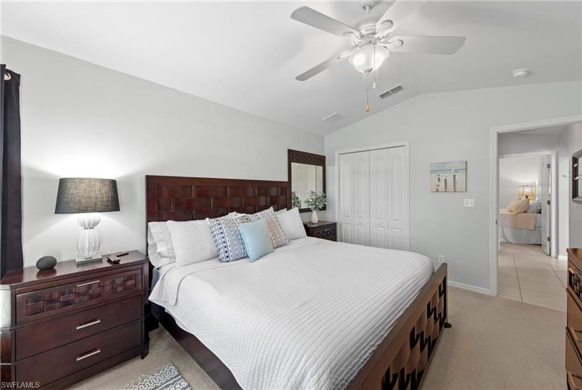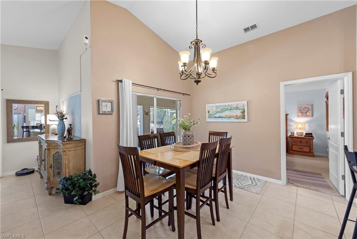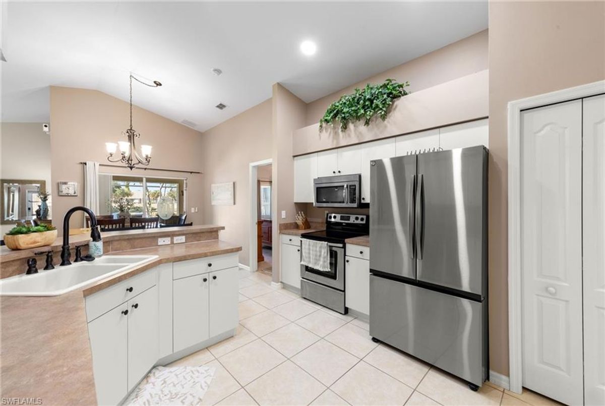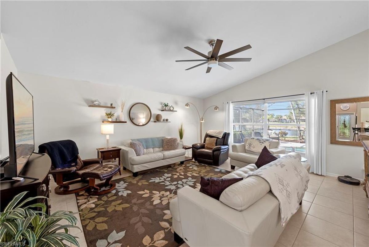 Experience the best of Florida living in this beautifully maintained 3-bedroom, 2-bath pool home with spa perfectly situated on a premium lakefront lot with panoramic golf course and lake views. The open great room floor plan features vaulted ceilings and large tile throughout the main living areas, creating a bright and inviting space perfect for entertaining. The kitchen overlooks the family room and includes a breakfast bar, ample cabinet space, and additional built-ins for storage. The spacious primary suite offers a walk-in closet, dual sinks, and a separate tub and shower. The guest bath has been tastefully remodeled with new shower tile and an updated vanity. When the home was built, the family room was enlarged to provide extra living space for relaxing or gathering with loved ones. Step out onto the screened lanai and take in the breathtaking panoramic lake and golf course views while enjoying your private heated pool and spa. With desirable western exposure, you’ll love watching colorful Florida sunsets year-round. Added peace of mind comes with electric hurricane shutters on all rear openings and impact glass windows in the front. This home perfectly combines comfort, functionality, and resort-style living in a serene lakefront setting—ready for you to move in and start enjoying the Florida lifestyle!Stoneybrook amenities offer something for everyone! Enjoy access to an exercise room, 3 community pools, tennis courts, pickleball, volleyball, basketball, bocce ball, a playground, and even a baseball field. The public golf course means you can pay as you play—no membership required. Conveniently located near shopping, dining, I-75, FGCU, beaches, and RSW airport. You're just a short drive to the golf clubhouse, CVS, Publix, Miromar Outlets, and Hertz Arena. With low association fees and a full range of amenities, it’s easy to see why Stoneybrook remains one of Estero’s most popular communities.