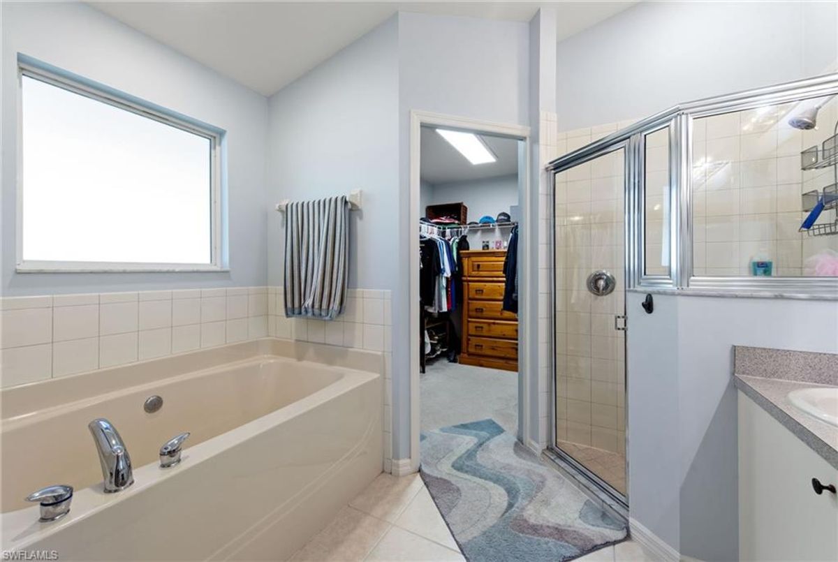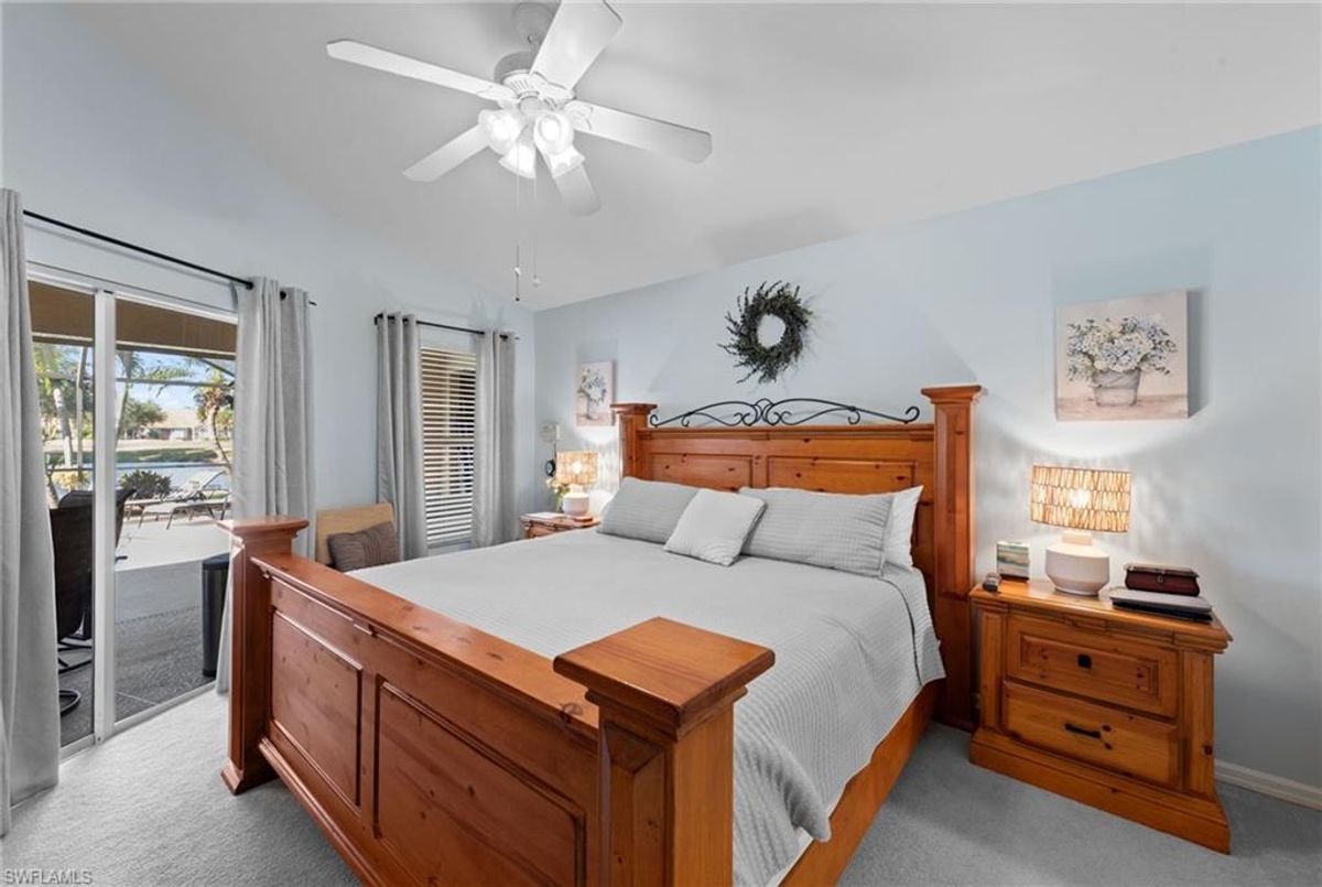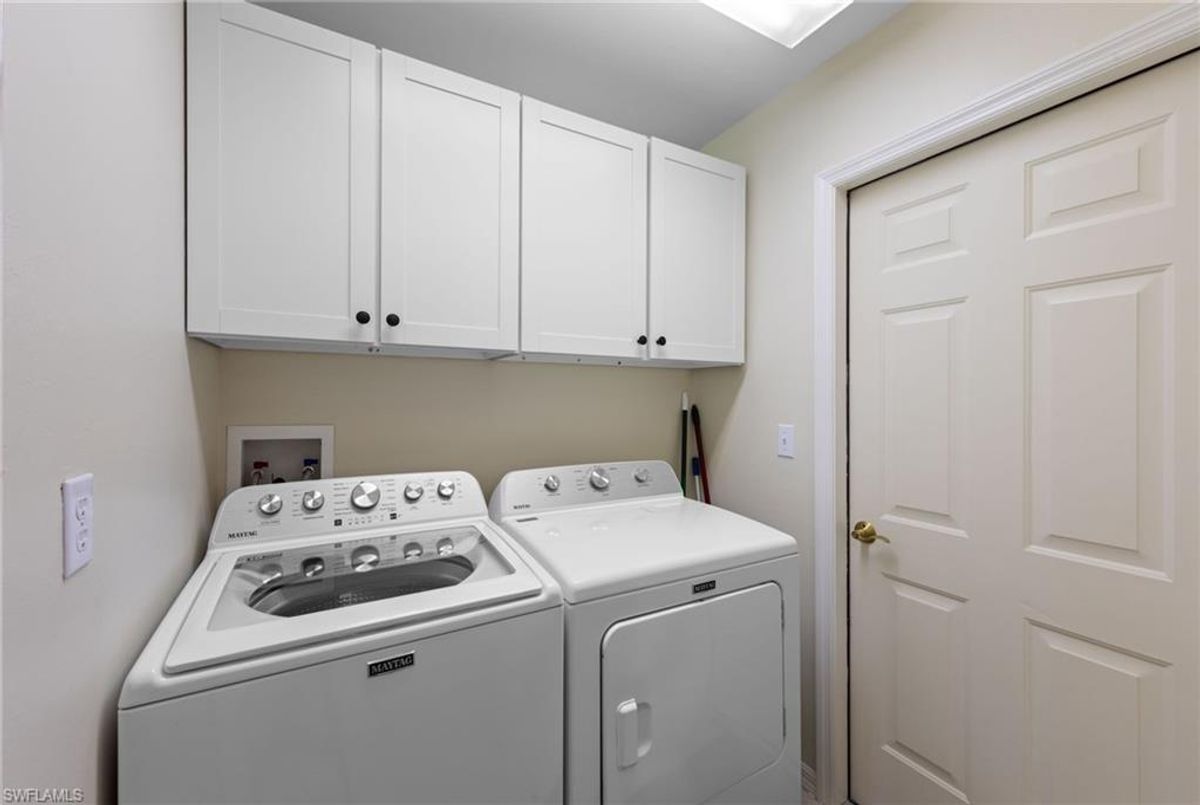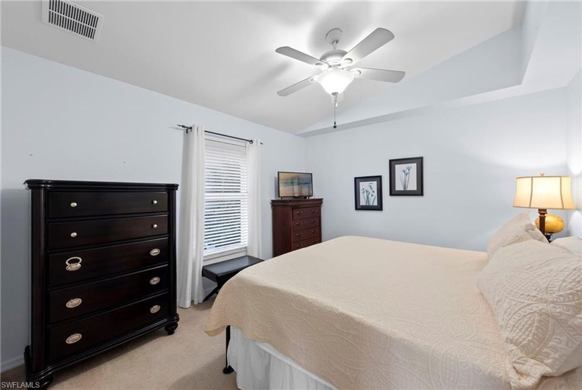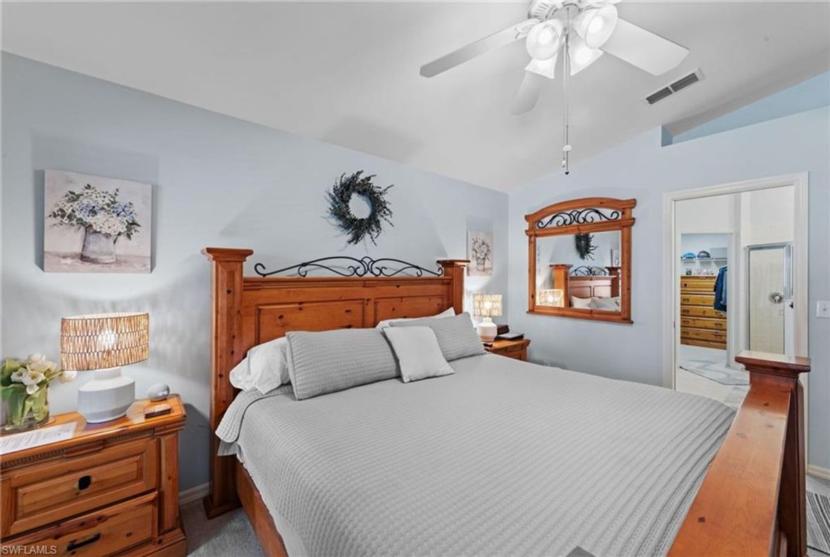 Experience the best of Florida living in this beautifully maintained 3-bedroom, 2-bath pool home with spa perfectly situated on a premium lakefront lot with panoramic golf course and lake views. The open great room floor plan features vaulted ceilings and large tile throughout the main living areas, creating a bright and inviting space perfect for entertaining. The kitchen overlooks the family room and includes a breakfast bar, ample cabinet space, and additional built-ins for storage. The spacious primary suite offers a walk-in closet, dual sinks, and a separate tub and shower. The guest bath has been tastefully remodeled with new shower tile and an updated vanity. When the home was built, the family room was enlarged to provide extra living space for relaxing or gathering with loved ones. Step out onto the screened lanai and take in the breathtaking panoramic lake and golf course views while enjoying your private heated pool and spa. With desirable western exposure, you’ll love watching colorful Florida sunsets year-round. Added peace of mind comes with electric hurricane shutters on all rear openings and impact glass windows in the front. This home perfectly combines comfort, functionality, and resort-style living in a serene lakefront setting—ready for you to move in and start enjoying the Florida lifestyle!Stoneybrook amenities offer something for everyone! Enjoy access to an exercise room, 3 community pools, tennis courts, pickleball, volleyball, basketball, bocce ball, a playground, and even a baseball field. The public golf course means you can pay as you play—no membership required. Conveniently located near shopping, dining, I-75, FGCU, beaches, and RSW airport. You're just a short drive to the golf clubhouse, CVS, Publix, Miromar Outlets, and Hertz Arena. With low association fees and a full range of amenities, it’s easy to see why Stoneybrook remains one of Estero’s most popular communities.