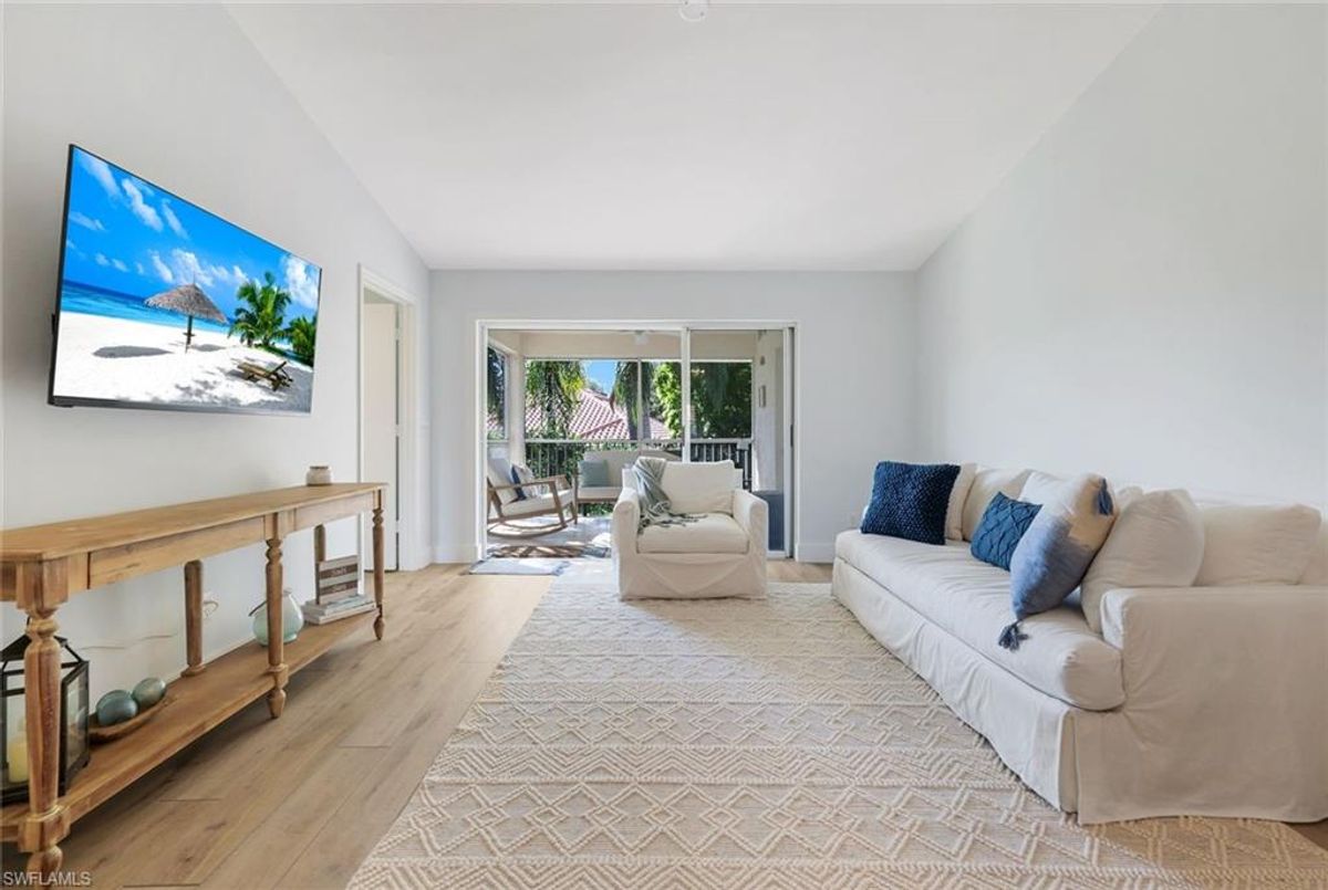 Experience the perfect blend of elegance and comfort in this beautifully updated 2-bedroom, 2-bath residence. The spacious living room features luxury Vinyl Plank flooring and sliding glass doors that open to a large balcony for seamless indoor-outdoor living. The remodeled kitchen impresses with white shaker cabinets, modern quartz countertops, and stainless-steel appliances. The master suite is bright and inviting, while the guest bedroom and bath offer comfort and style with updated finishes. Enjoy in-unit laundry, a peaceful balcony with lush views, and access to resort-style amenities—pool, fitness center, tennis, and pickleball courts. Ideally located near Vanderbilt Beach, Galleria Shoppes, Publix, and top restaurants. Schedule a showing today!