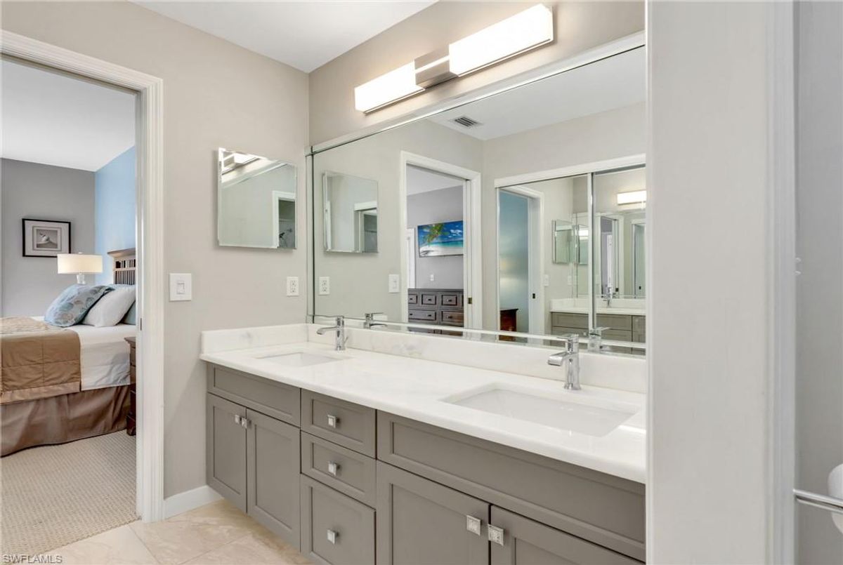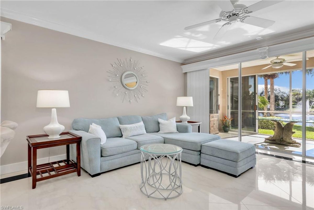 This gorgeous LAKEFRONT coach home offers the perfect blend of luxury, comfort, and convenience. Spanning over 1,400 square feet of air conditioned space. The home features 2 spacious bedrooms, a den with a closet (ideal for an office or guest suite) and 2 beautifully updated bathrooms. This END-UNIT home is filled with natural light and enjoys a preferred southern rear exposure, creating bright and welcoming living spaces. A major renovation has been completed in recent years — and polybutylene piping has already been replaced for added peace of mind. Elegant finishes include plantation shutters, crown molding, and French doors leading from the primary bedroom to a spacious lanai. The chef’s kitchen boasts granite countertops, stainless steel appliances, and 24 x 24 Italian tile throughout most of the home for a refined modern look. Additional highlights include an extra-long driveway, one-car attached GARAGE and extra guest parking spaces. Most furniture is included with the sale making this truly almost move-in ready. Enjoy an active and social lifestyle in Wiggins Lakes and Preserves, featuring two community pools and a tennis court (also used for pickleball). A vibrant social calendar offers plenty of opportunities to connect with neighbors and enjoy community events. Located just minutes from the upscale shopping and dining at Mercato, this home combines coastal luxury with everyday convenience — all within easy reach of Naples’ world-famous beaches. ***** THERE ARE TWO VIRTUAL TOUR LINKS TO CLICK ON AS WELL FOR MORE INFORMATION *****