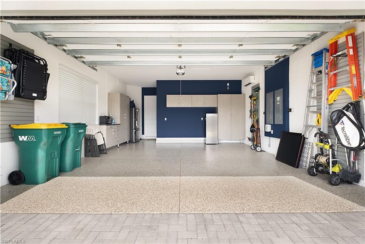 Welcome to sophisticated single-level living in Valencia Trails, where this exceptional residence enjoys privacy and tranquility with beautiful views of expanded back yard and conservation areas. Perfectly positioned on peaceful Azalea Way, this 4-bedroom plus den, 4.5-bathroom home spans 3,176 square feet of air-conditioned living space with 4,388 total square feet under roof. The open-concept floor plan creates inviting flow with elegant porcelain rectified tile flooring throughout. The gourmet kitchen features premium GE Profile appliances including gas cooktop, complemented by a Thermador refrigerator and striking Reflekt Euro Acrylic Cabinetry. Thoughtfully appointed finishes include custom window coverings, designer lighting, quality trim work, custom closets throughout, and tasteful wallpaper in the foyer, powder room, and master bath. Each of the four bedrooms features a private en-suite bathroom, with an additional powder room for convenience. The expansive covered lanai showcases beautiful leathered marble flooring and features a fully equipped summer kitchen with gas grill perfect for year-round entertaining, complemented by a striking fireplace accent wall. Modern conveniences include a 22KW whole-house generator, comprehensive water treatment system, impact-resistant glass throughout, security cameras, and an impressive three-car garage equipped with custom cabinetry, epoxy flooring, and split air conditioning in all garage spaces. Valencia Trails delivers an unmatched resort lifestyle within its impressive 43,000-square-foot clubhouse, featuring Gather restaurant and bar, theater with live performances, state-of-the-art fitness center with steam room, full-service spa and nail salon, cooking studio, arts and crafts studio, card rooms, and gathering spaces. The outdoor recreation complex includes resort-style beach-entry pool, 70-foot lap pool, resistance walking pool, whirlpool spa, six lighted tennis courts, eight lighted pickleball courts, five bocce courts with pro shop, separate dog parks, poolside bar with al-fresco dining, and over three miles of scenic trails through preserved natural areas and around sparkling lakes. This active 55-plus community sits in an enviable North Naples location just three miles from Founders Square, offering dining and shopping including Skillets, Outback Steakhouse, and South Street City Oven and Grill. Logan Landings and nearby Publix provide everyday conveniences, while upscale Mercato is minutes away. Vanderbilt Beach, renowned for pristine white sand and warm waters of the Gulf of America, is approximately 15 miles away, while downtown Naples, NCH Healthcare facilities, Southwest Florida International Airport, and world-class golf courses are all easily accessible. Valencia Trails represents the pinnacle of modern 55-plus living, combining luxurious single-level homes with comprehensive resort-style amenities and an ideal Southwest Florida location.