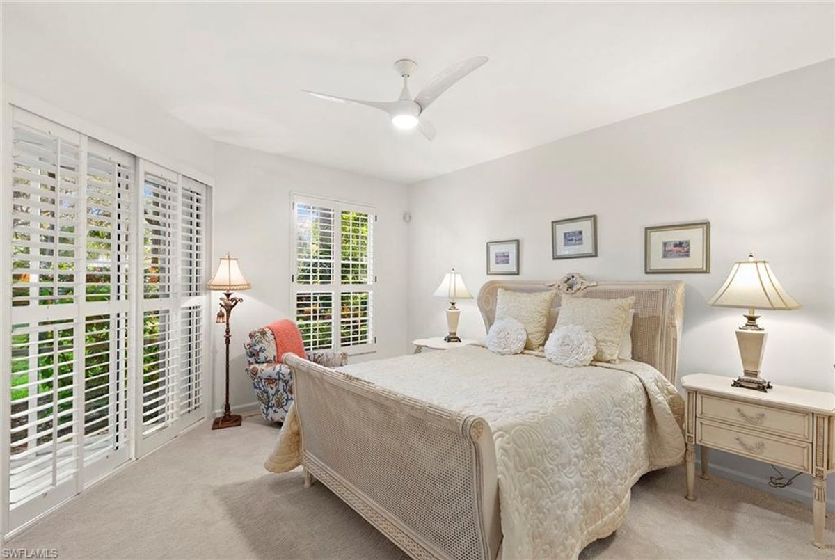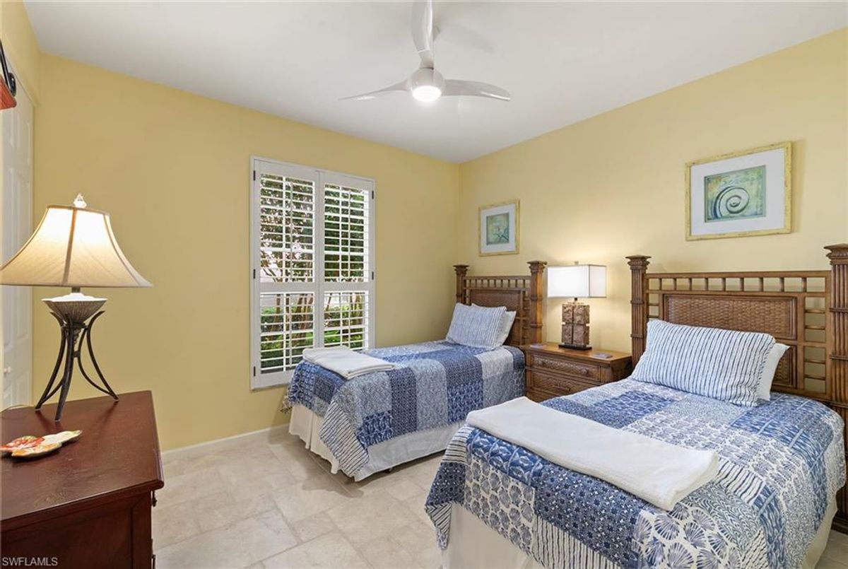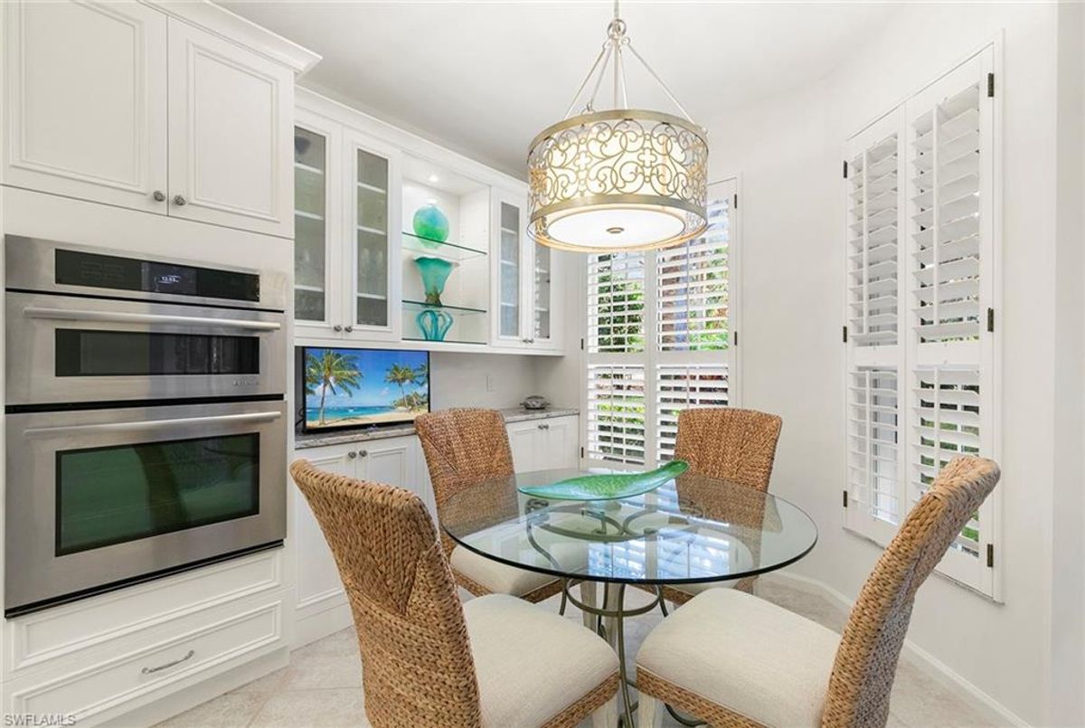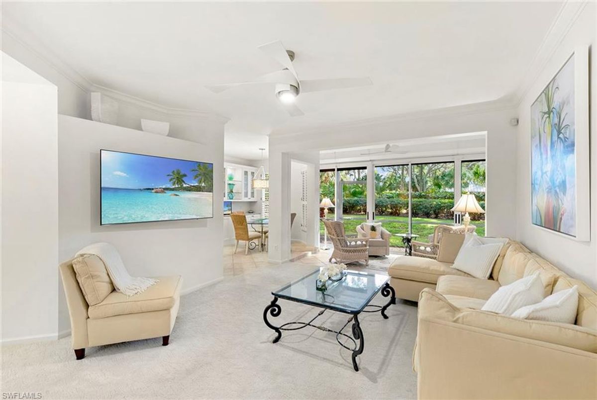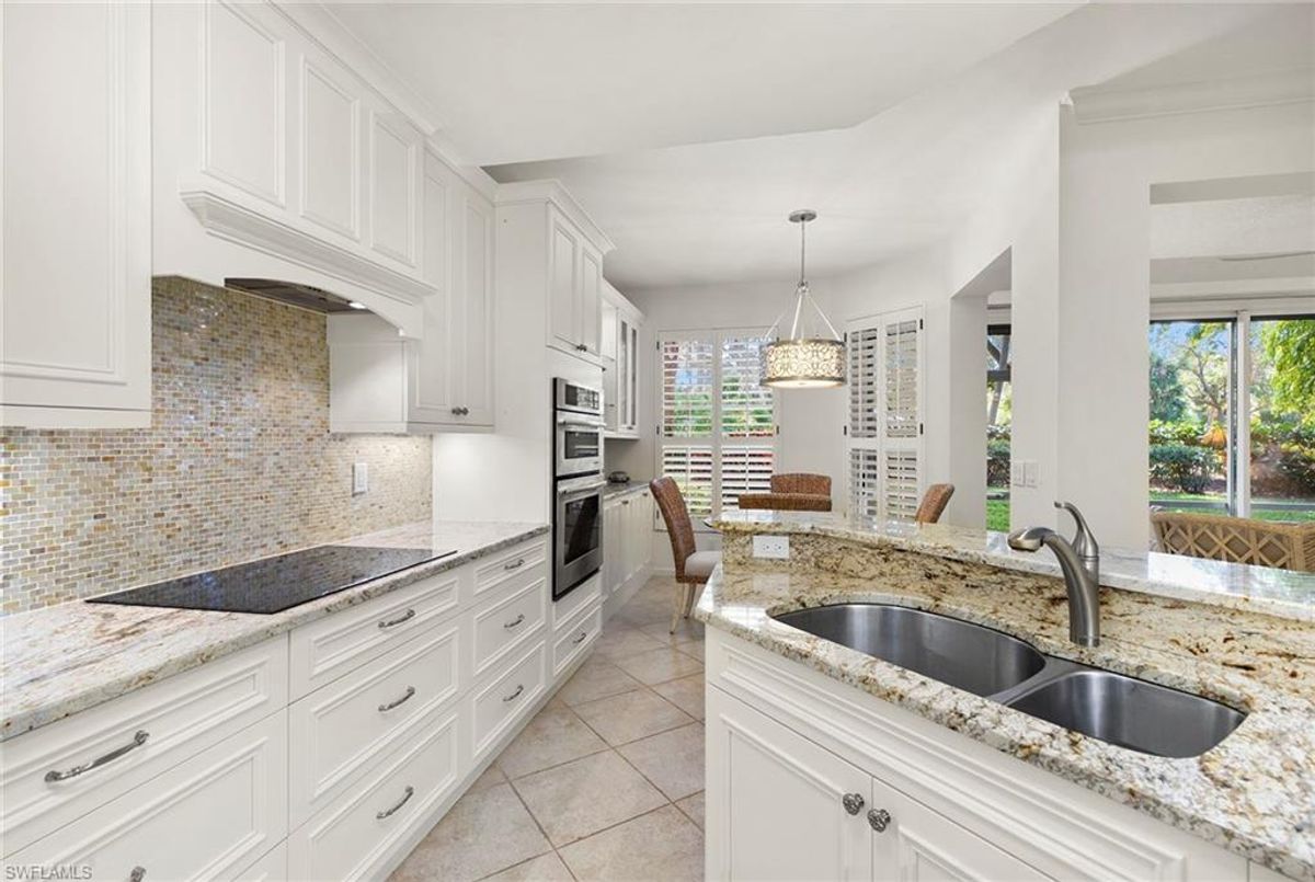 Discover your dream home in the sought-after dog-friendly neighborhood of Covington Row in the Crescent. This stunning first-floor condominium offers a harmonious blend of modern living and serene surroundings ideal for relaxation and entertainment. Key features include spacious living including three bedrooms and 2 1/2 baths, providing ample space for family and guests. Each room is designed to maximize light and flow. The screened and glassed lanai overlooks a private rear yard with mature trees, landscaping and the golf course beyond, A spot for a cup of coffee and the morning sunrise. Being offered turnkey furnished, making it ideal for those looking for a hassle-free transition to Naples and Pelican Bay. The updated kitchen features granite countertops and modern stainless appliances. Enjoy a bright, light and open floor plan. Enter your home through the two-car attached garage, a real plus. Covington Row and the Crescent offer a large attractive swimming pool and spa, and a fitness room. Enter your home through the two-car attached garage, also a real plus. Pelican Bay offers three miles of pristine, private beach access with two restaurants with bars. two tennis centers; a world-class fitness center; pickleball courts, canoes, Sunfish and recreational paths.