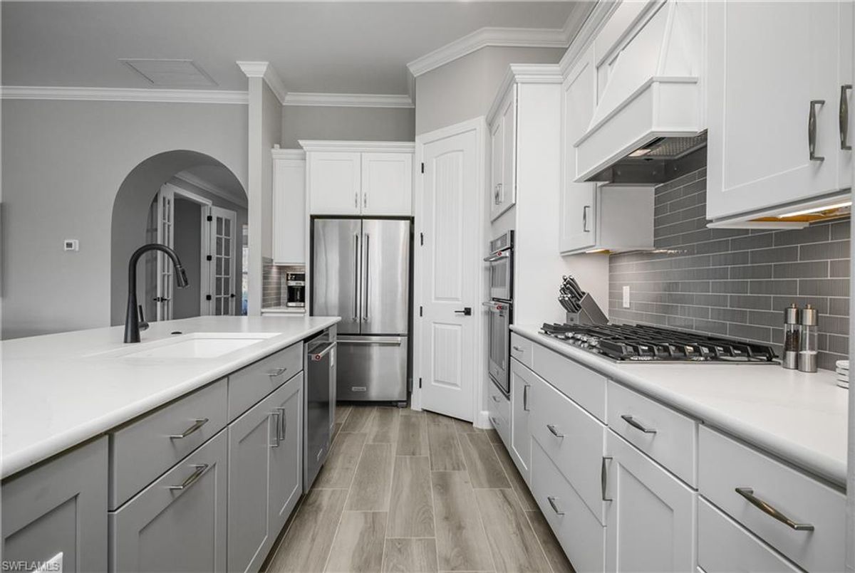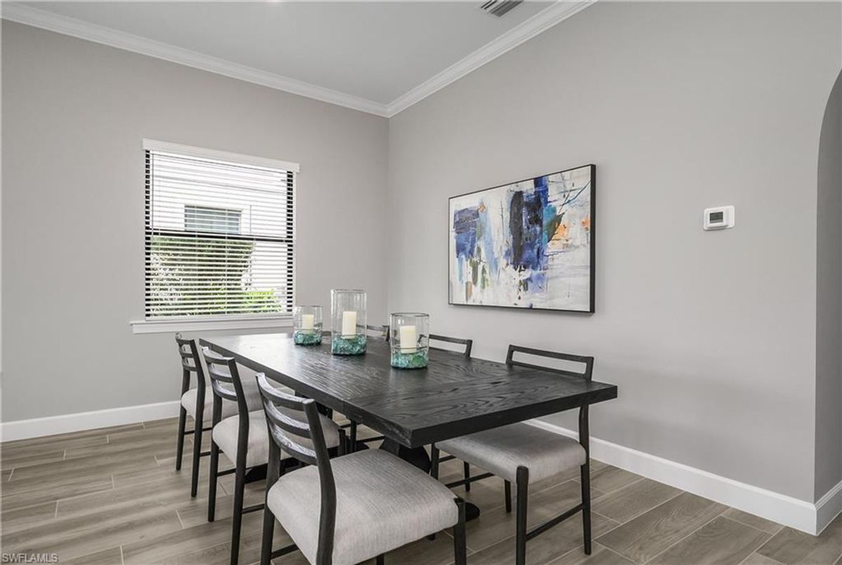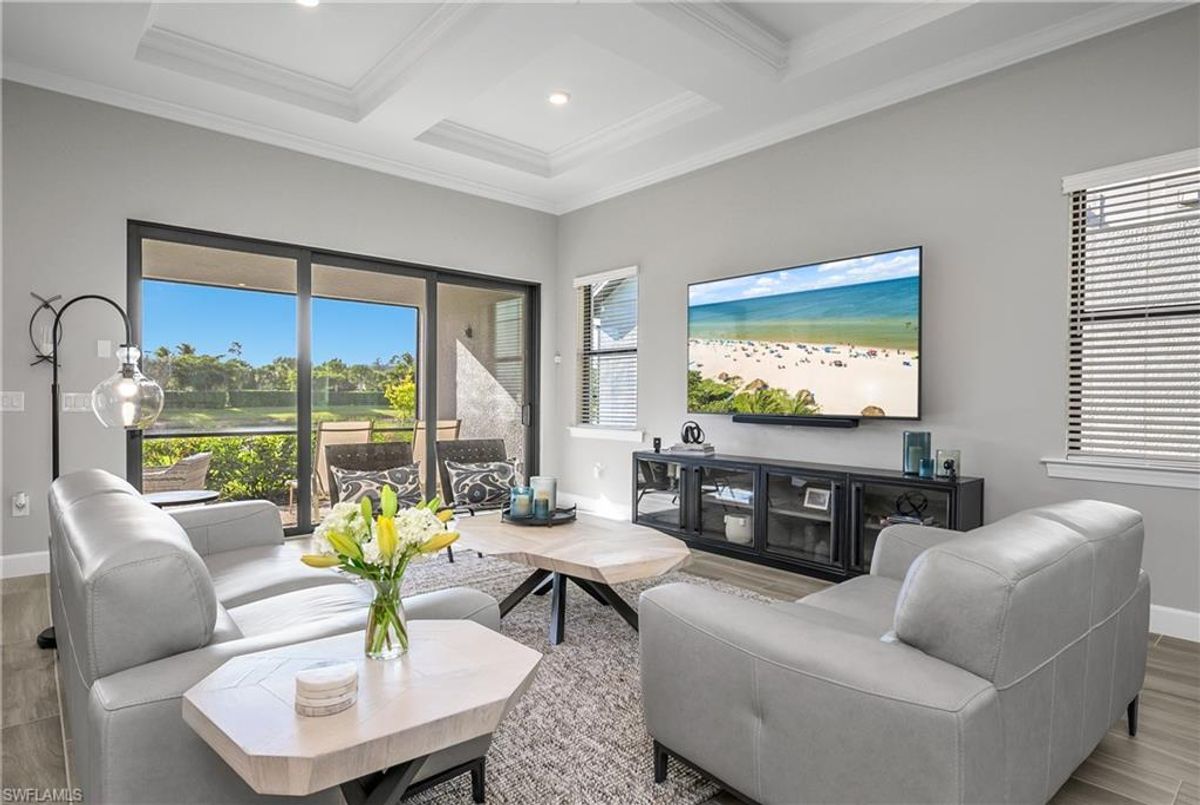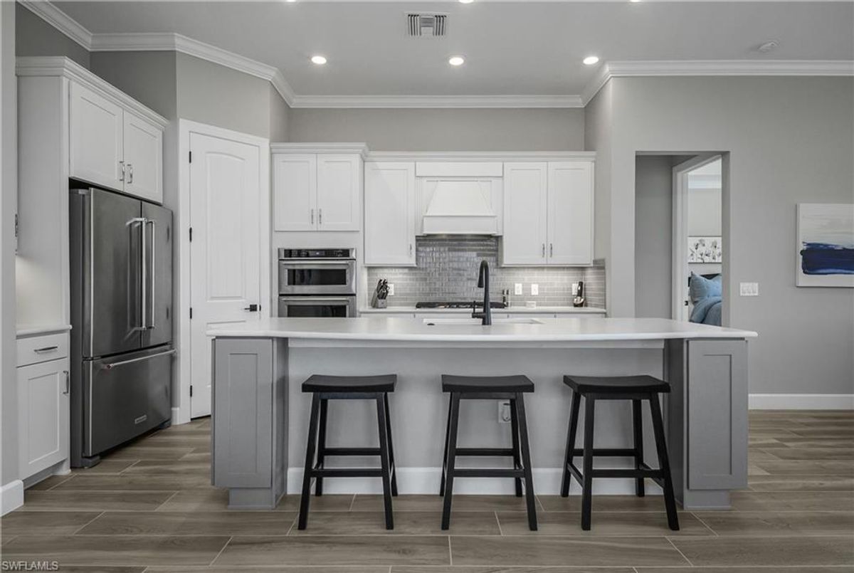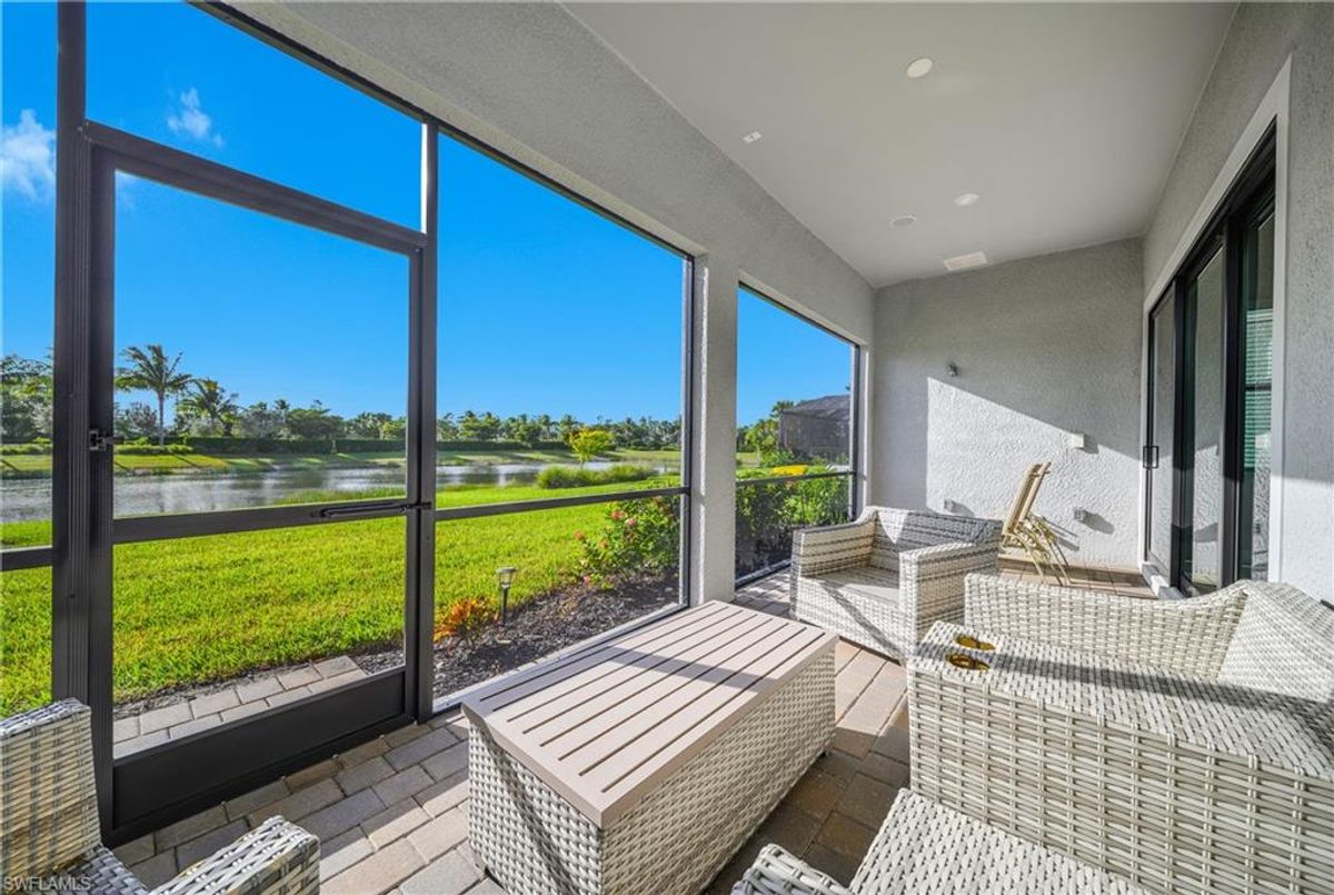 Accepting back up offers. Simply gorgeous… This immaculate and barely lived in meticulously maintained Summerwood residence in WildBlue showcases sun-splashed interiors, refined finishes, and effortless indoor/outdoor living. The flexible open floor plan features 3 bedrooms plus a den with glass French doors, and 2 full baths, creating the perfect blend of function and style for everyday living or seasonal retreats. At the heart of the home, the open kitchen, living, and dining areas flow naturally for entertaining. The kitchen offers upgraded cabinetry with soft close cabinets and pull-out drawers, soft touch “leathered” quartz countertops, an oversized island for gathering with friends, a well-sized pantry, a bright and airy kitchen cafe for casual meals, and abundant natural light throughout. Enjoy seamless indoor/outdoor living from the great room to the screened lanai, where stunning water views and evening sunsets create a relaxing alfresco dining experience or a simple evening of quiet conversation and cocktails. The spacious primary suite is a serene retreat with a spa-like bath featuring an oversized walk-in shower, dual-sink vanity, and a large walk-in closet. Two guest bedrooms are on the opposite side of the home and are perfect for out-of-town guests, both share a well-appointed full bath, while the den provides a flexible space for a home office, media room, or hobby area. Additional highlights include tile flooring throughout (no carpet), impact-resistant doors and windows, custom crown molding and tray ceilings, and a two-car garage. Set on a quiet, friendly street within the premier amenity-rich lake and boating community of WildBlue, where residents enjoy a lakefront clubhouse and restaurant, fitness center, resort-style pool and spa, tennis, pickleball, lakefront beach, and the option to lease a boat dock and enjoy 800+ acres of navigable lakes. This meticulously finished Summerwood floorplan captures the best of Southwest Florida living—plenty of natural light, water views, sunsets, and an exceptional community lifestyle. Don’t miss the opportunity to own this incredible home… it truly feels like BRAND NEW!