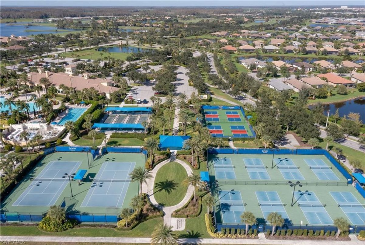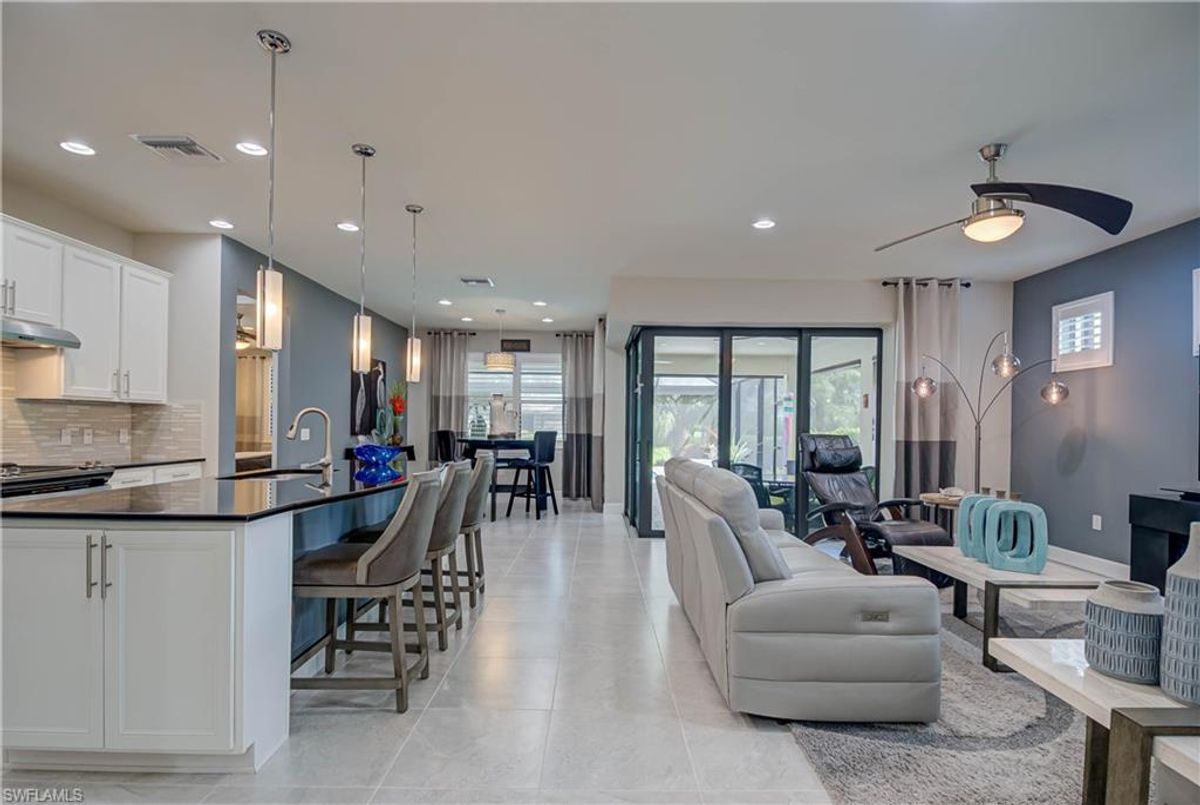 Welcome to 7938 Guadiana Way, a stunning and extensively upgraded Summerwood home situated on a premium lot in Del Webb Naples, one of the area’s premier 55+ communities. This beautifully enhanced 2+Den residence offers exceptional privacy and serene views of two waterways, located just steps from the community walkway. From the moment you arrive, the home stands out with new professional landscaping, exterior uplighting, fresh interior and exterior paint, and decorative interior shutters that add elegance throughout. Inside, the well-designed floor plan includes a spacious den with new French doors, a large laundry room, and numerous upgrades such as zero-edge doors and an installed home generator switch for added peace of mind. The epoxy-finished garage provides parking for two cars, dedicated golf cart parking, and over-the-garage storage—perfect for enjoying the Del Webb lifestyle.The outdoor living space is equally impressive. Sliding glass doors lead to an extended lanai with sealed pavers, a heated saltwater pool, a panoramic picture-window pool cage, and a Storm Smart electric roll-down hurricane shutter. This inviting retreat is ideal for entertaining or relaxing, with beautiful lake views and a built-in sound system on the lanai. Additional enhancements include new landscaping, decorative shutters, and exterior uplighting, all of which elevate the home’s curb appeal.Located in the highly desirable Del Webb Naples 55+ community, residents enjoy resort-style amenities, including a state-of-the-art recreation center, lap pool, infinity pool and spa, pickleball, tennis, billiards, and more. The home is minutes from Panther Run Golf Course and a short drive to the Ave Maria Town Center, which offers dining, shopping, community events, and university activities. Naples’ world-famous beaches and fine dining are less than an hour away. Offering luxury, comfort, and a premium Florida lifestyle, this move-in-ready home is a must-see—schedule your private showing today.X Flood Zone- so NO flood insurance needed! SELLER is crediting the BUYER $4000.00 at closing towards CLOSING COSTS!