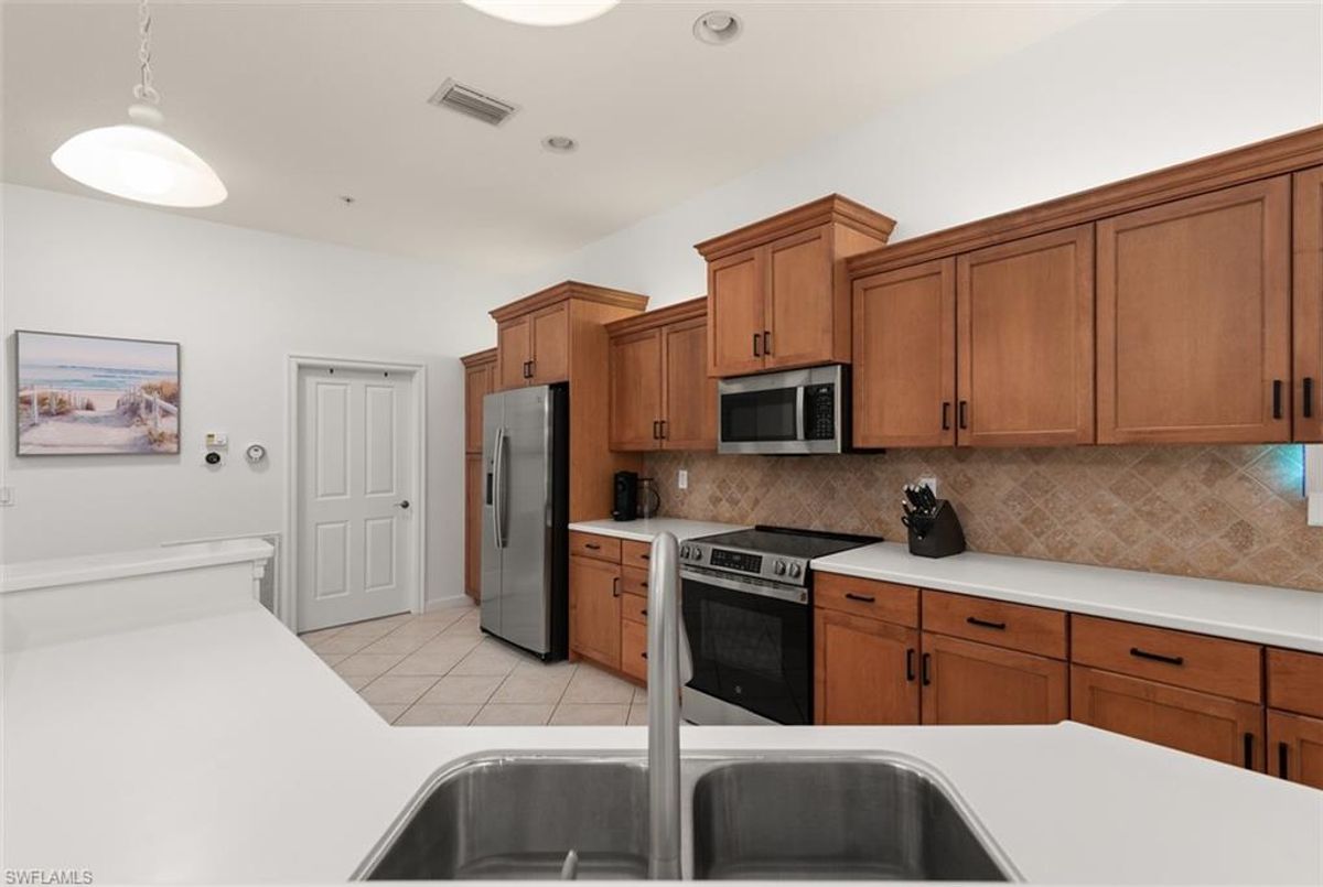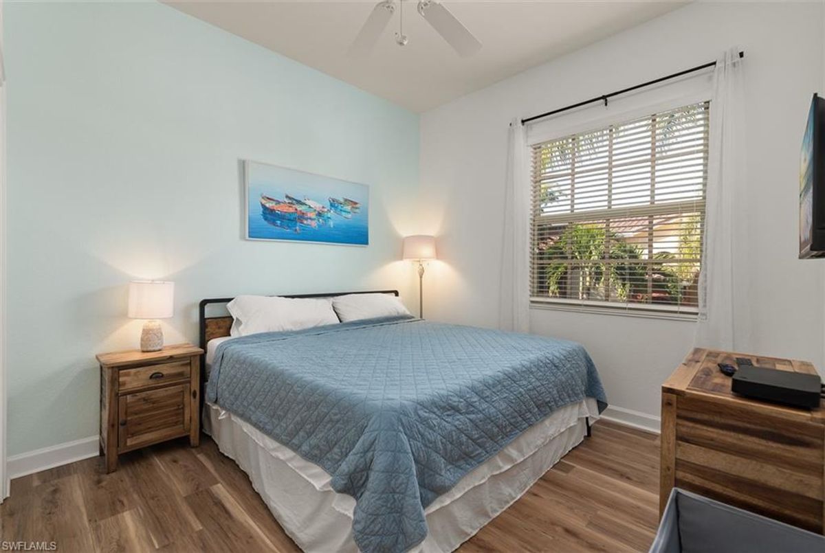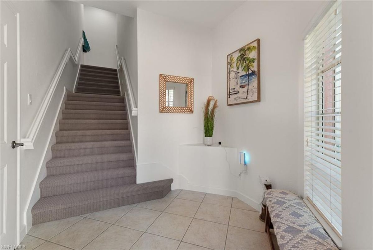 Located in the desirable Enclave section of Rapallo, this beautifully maintained second floor, end unit coach home offers resort style living in the heart of Estero. Rapallo is a Mediterranean-inspired gated community perfectly positioned within walking distance to Coconut Point Mall-with its endless shops and restaurants and soon the new Marketplace shops and restaurants directly in front of Rapallo. This units has been beautifully maintained and offers a light and bright open concept, newly installed LVT planks thoughout living area and bedrooms. A gourmet kitchen allow for entertaining and ample storage. Laundry room is off the kitchen. The Primry suite has sliding doors out to the Lanai along with Great Room out to the lanai. The Lanai has been enclosed with Plexiglass sliders providing more air conditioned square footage. This southern view is so peacefull and private overlooking lake and fountain views. DESIGNATED PARKING SPOT RIGHT OUTSIDE YOUR DOOR. You have a pool,lakehouse, and barbague area right outside your door and a boardwalk that takes you over to all the amenities that Rapallo has to offer. Some are the two Lagoon style pools with Rock grotto waterfalls, Jr olympic screened Lap pool, fitness center with a full time fitness director. Five har Tru tennis courts with full time tennis pro, Bocce Ball, bike and jogging paths, fountains and lakes troughout. An Activity Director will keep your calandar full with activiities. The Clubhouse has a full catering kitchen, and Library. Rapallo is only 12 miles to the International Airport and just minutes to our beautiful beaches. Rapallo is not in Flood Zone and had 3 year old roofs, Hurricane rated windows and is truly the safest place to be during a Hurricane.