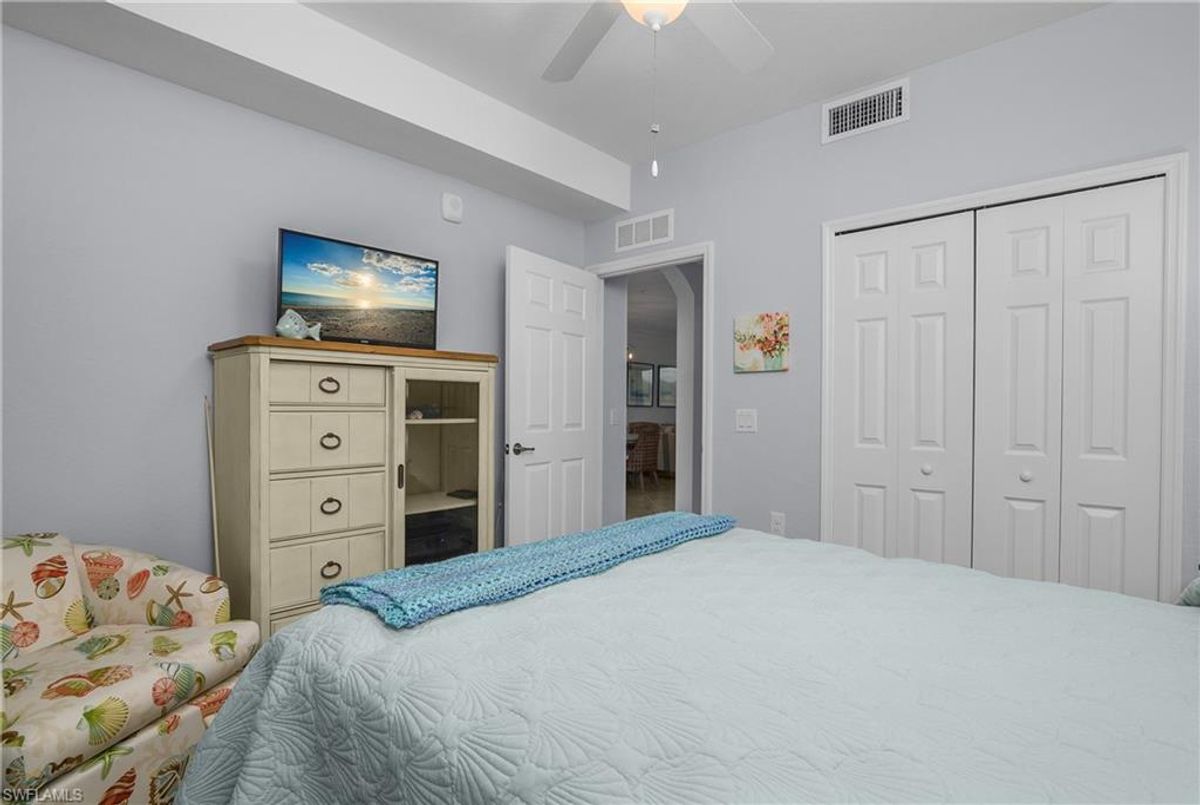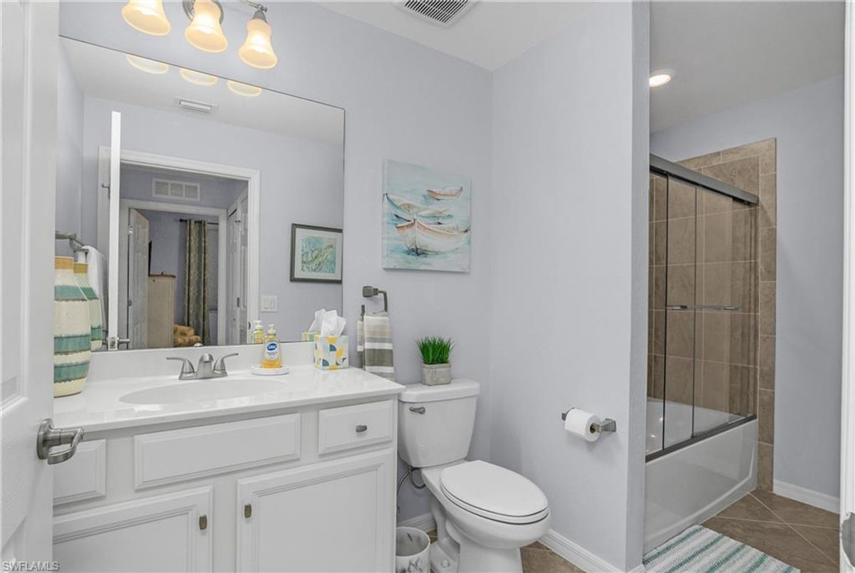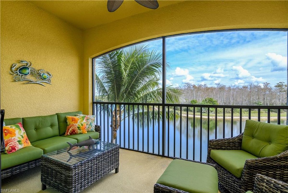 Experience resort-style living in Treviso Bay with this beautifully maintained third-floor, social membership condo at 9572 Trevi Ct #5034 in Naples, Florida. Offered turnkey and move-in ready, this 2-bedroom, 2-bath residence with 1,194 square feet of thoughtfully designed living space is ideal as a full-time home, seasonal getaway, or investment property. Inside, the home showcases a coastal-inspired design complemented by a long list of tasteful upgrades. The kitchen features a stylish tile backsplash, upgraded lighting, and a new garbage disposal, flowing seamlessly into the dining and living areas where a statement chandelier and decorative cornice above the sliding doors add character and warmth. The primary suite and guest bedroom have been refreshed with upgraded paint, creating light, inviting retreats. Both bathrooms have been enhanced with brushed nickel faucets, towel bars, and hardware, while the guest bath includes a glass shower/tub enclosure for a clean, modern finish. Additional improvements include replaced water valves throughout, a new pleated shade in the guest bedroom, a peephole added to the front door, and a fan on the screened lanai. The lanai is further upgraded with no-see-um screens, making it the perfect spot to enjoy peaceful mornings and breezy evenings. Located within the highly sought-after, gated community of Treviso Bay, residents enjoy a true resort lifestyle. Amenities include a stunning resort-style pool with waterfalls, poolside restaurant and bar, state-of-the-art fitness center, aerobics studio, full-service spa, tennis courts, pickleball, bocce, walking and biking trails, and a vibrant calendar of social events. A social membership provides access to these world-class amenities without the added expense of a golf membership, but the extraordinary private TPC golf course in the community is available to social members off-season from May - October.. Conveniently situated just minutes from downtown Naples, Fifth Avenue South, Marco Island, and the area’s renowned beaches, shopping, and dining, this condo offers the perfect blend of comfort, convenience, and Southwest Florida lifestyle. Whether you’re looking for a low-maintenance seasonal retreat or a full-time residence in a resort-style community, this Treviso Bay condo checks all the boxes.
