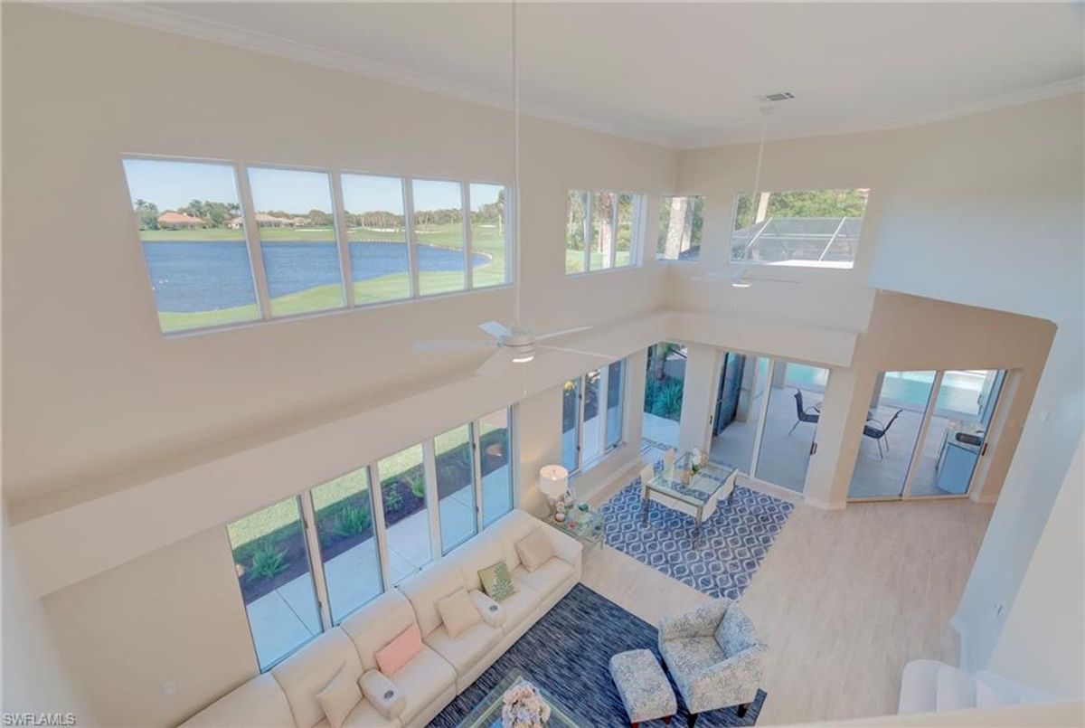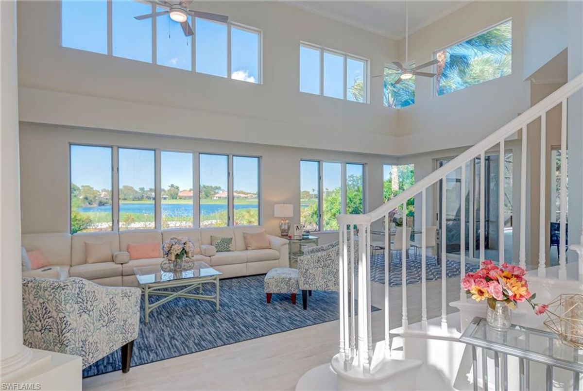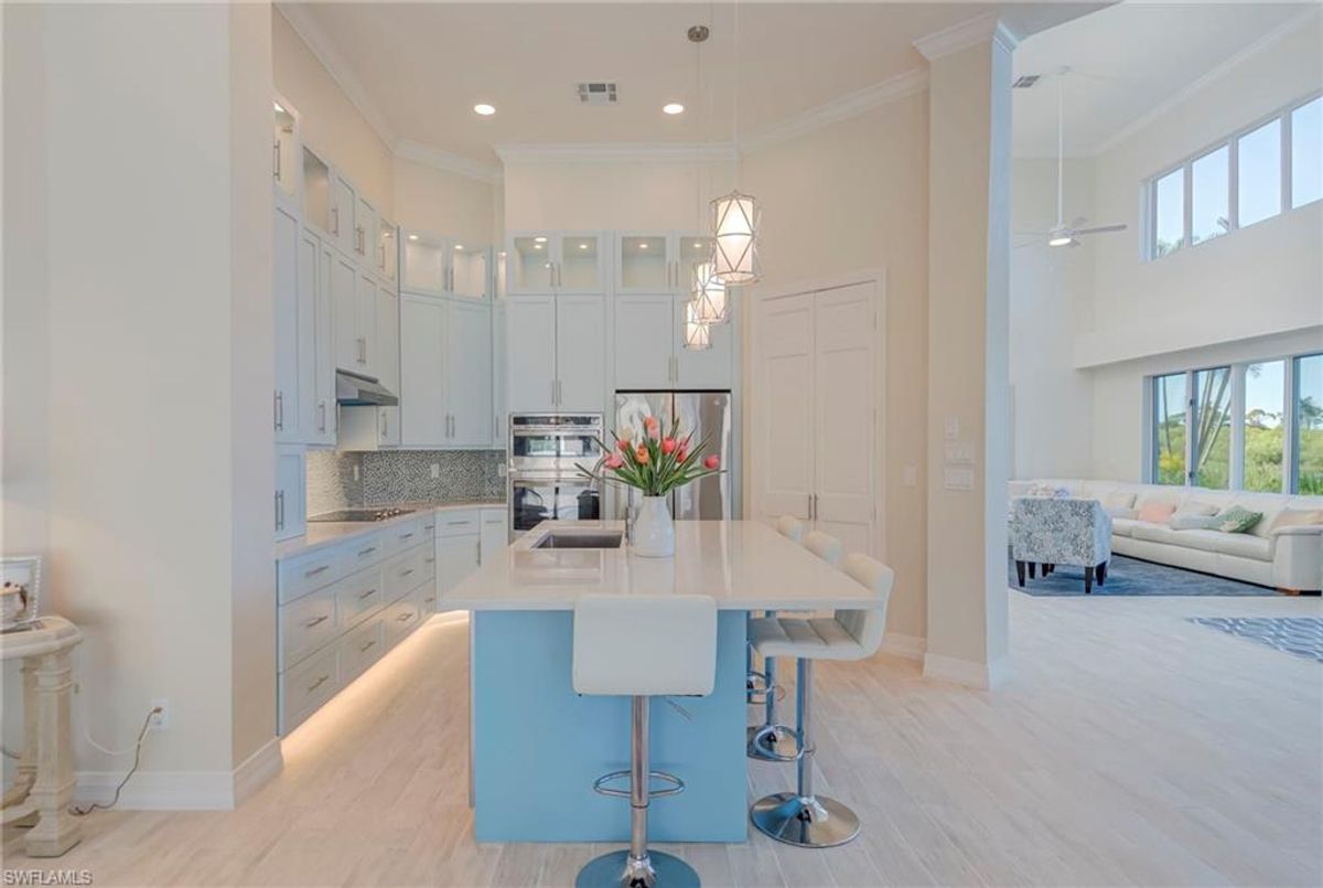 Beautiful fully-renovated coastal contemporary luxury residence is one-of-a-kind and resides on the best lot of the highly-desired Riviera neighborhood in Bonita Bay. Perfectly positioned at the end of a cul-de-sac on an oversized lot, this home spans over 2,900 square feet of living space and offers 3 bedrooms and 5 baths. As you enter this remarkable residence you will be captivated by the soaring ceilings and left breathless by the expansive lake and golf course views from the rear of the home. This home is thoughtfully designed, featuring an open-concept layout allowing an abundance of natural light and remarkable nature scenes while flawlessly integrating the great room, kitchen, and living area. The spacious master bedroom wing is on the ground floor and exudes privacy while allowing the main residents of the home to utilize the entire main floor without sacrificing living space with guest bedrooms. The luxurious master wing includes a palatial spa-style bathroom complete with soaking tub and expansive shower. As you exit the private master suite, you’ll walk through the stunning great room, highlighting 24-foot ceilings and amazing sights out the back windows. This room is perfect for relaxing and taking in the tranquil nature landscapes during sun-soaked days. It’s also ideal for spending time with family and friends while hosting cocktail hour and dinner parties. The great room flows seamlessly into the gourmet kitchen featuring sleek quartz countertops, custom built cabinetry and new appliances. It boasts several glass sliders leading to the expansive screened lanai and pool area, integrating the indoor-outdoor style of living Southwest Florida is known for. This stunning residence offers a secondary master suite upstairs featuring an expansive bathroom with custom cabinetry, amazing quartzite counter tops, and a private balcony. There’s also a third ensuite bedroom on the second floor which is private, has stunning lake views, and perfect for accommodating additional guests. As an owner in Bonita Bay, you’ll enjoy over 12 miles of nature-inspired walking and biking trails, and several parks including Riverwalk park which offers a boat and kayak launch as well as tennis, bocce, and newly constructed pickleball courts. Bonita Bay offers the opportunity to join the country club which includes five championship golf courses, world class tennis facilities, and a cutting-edge fitness facility with an extravagant spa and salon. This spectacular community is the perfect place to call home seasonally or permanently as it offers a full-service marina with direct gulf access and the popular Backwater Jack’s Restaurant. Bonita Bay comes complete with its very own newly-built private beach club, which includes complimentary shuttle service, lounge chairs, umbrellas, and shaded pavilions. Don't miss out on this luxury residence, fantastic location, and spectacular community that embody the best of the Florida lifestyle.