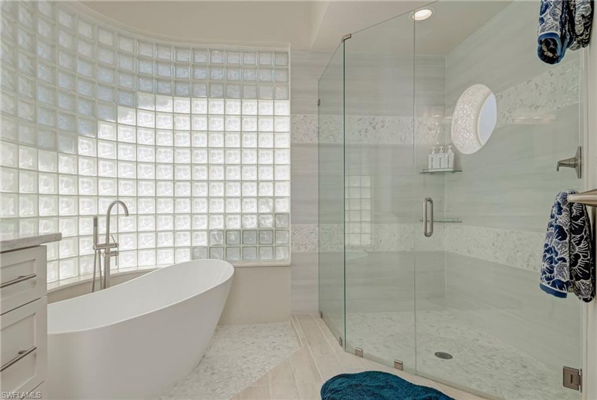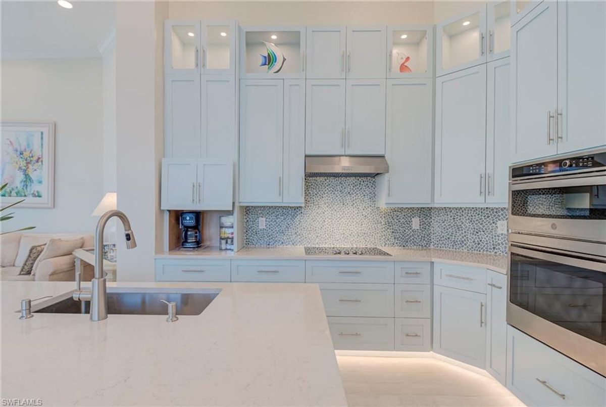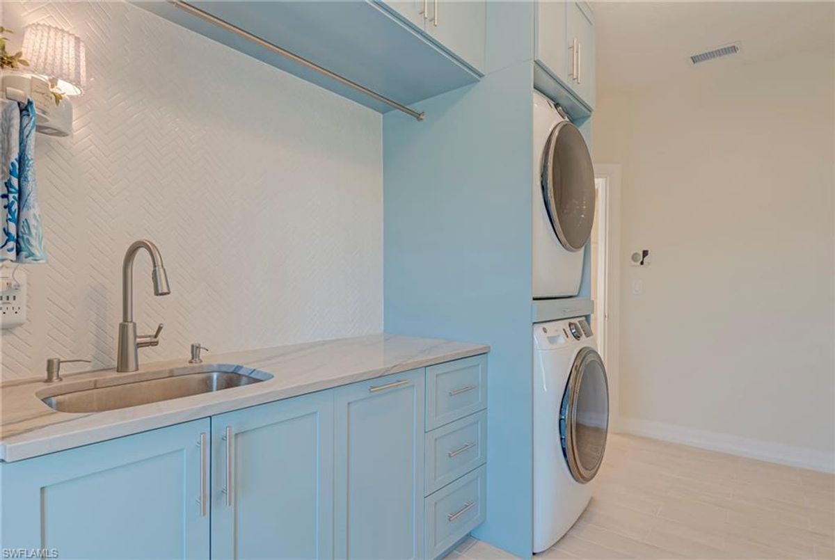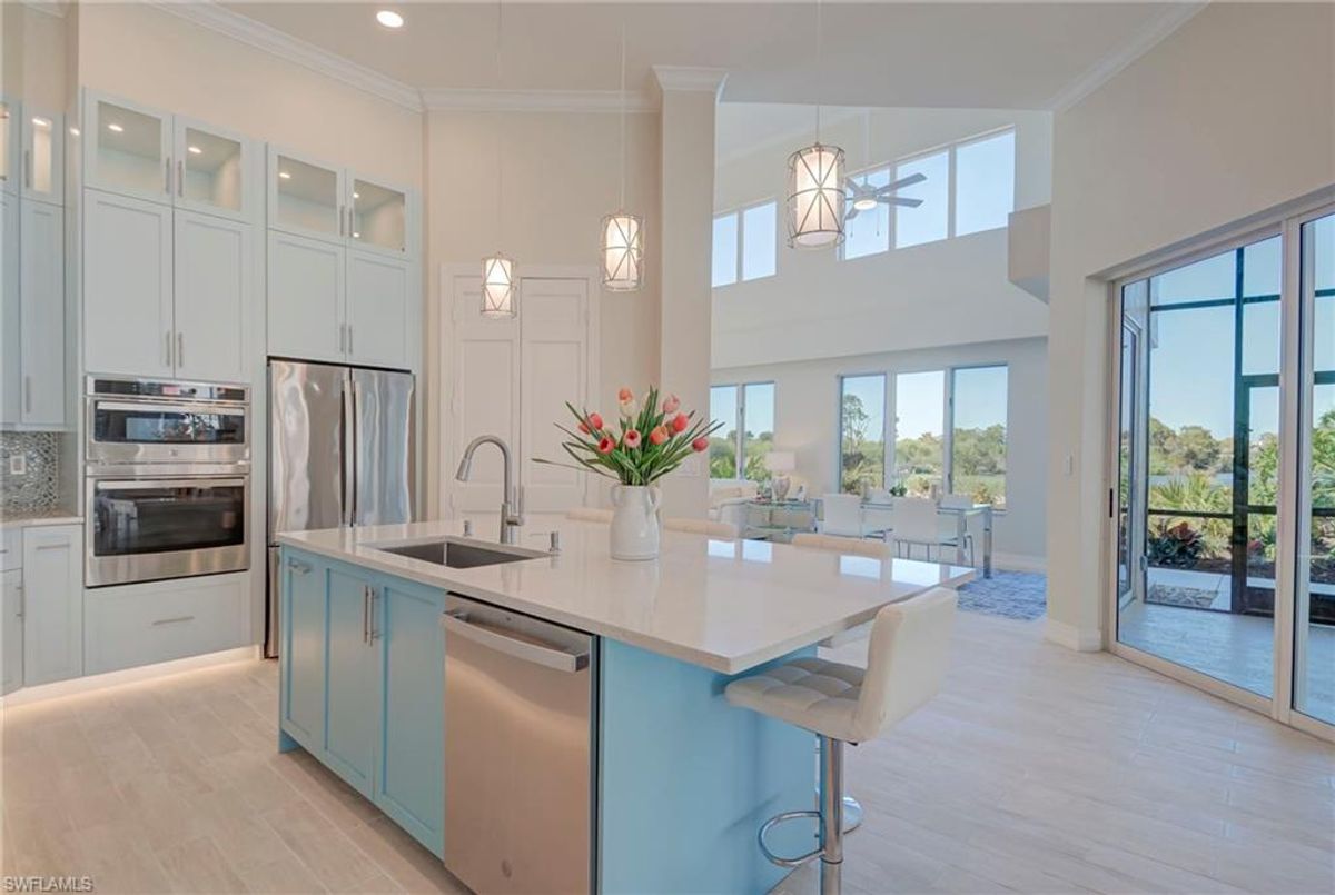 Beautiful fully-renovated coastal contemporary luxury residence is one-of-a-kind and resides on the best lot of the highly-desired Riviera neighborhood in Bonita Bay. Perfectly positioned at the end of a cul-de-sac on an oversized lot, this home spans over 2,900 square feet of living space and offers 3 bedrooms and 5 baths. As you enter this remarkable residence you will be captivated by the soaring ceilings and left breathless by the expansive lake and golf course views from the rear of the home. This home is thoughtfully designed, featuring an open-concept layout allowing an abundance of natural light and remarkable nature scenes while flawlessly integrating the great room, kitchen, and living area. The spacious master bedroom wing is on the ground floor and exudes privacy while allowing the main residents of the home to utilize the entire main floor without sacrificing living space with guest bedrooms. The luxurious master wing includes a palatial spa-style bathroom complete with soaking tub and expansive shower. As you exit the private master suite, you’ll walk through the stunning great room, highlighting 24-foot ceilings and amazing sights out the back windows. This room is perfect for relaxing and taking in the tranquil nature landscapes during sun-soaked days. It’s also ideal for spending time with family and friends while hosting cocktail hour and dinner parties. The great room flows seamlessly into the gourmet kitchen featuring sleek quartz countertops, custom built cabinetry and new appliances. It boasts several glass sliders leading to the expansive screened lanai and pool area, integrating the indoor-outdoor style of living Southwest Florida is known for. This stunning residence offers a secondary master suite upstairs featuring an expansive bathroom with custom cabinetry, amazing quartzite counter tops, and a private balcony. There’s also a third ensuite bedroom on the second floor which is private, has stunning lake views, and perfect for accommodating additional guests. As an owner in Bonita Bay, you’ll enjoy over 12 miles of nature-inspired walking and biking trails, and several parks including Riverwalk park which offers a boat and kayak launch as well as tennis, bocce, and newly constructed pickleball courts. Bonita Bay offers the opportunity to join the country club which includes five championship golf courses, world class tennis facilities, and a cutting-edge fitness facility with an extravagant spa and salon. This spectacular community is the perfect place to call home seasonally or permanently as it offers a full-service marina with direct gulf access and the popular Backwater Jack’s Restaurant. Bonita Bay comes complete with its very own newly-built private beach club, which includes complimentary shuttle service, lounge chairs, umbrellas, and shaded pavilions. Don't miss out on this luxury residence, fantastic location, and spectacular community that embody the best of the Florida lifestyle.