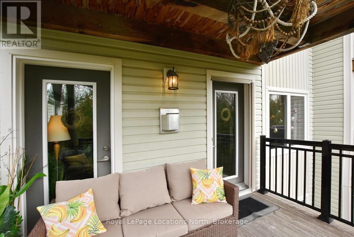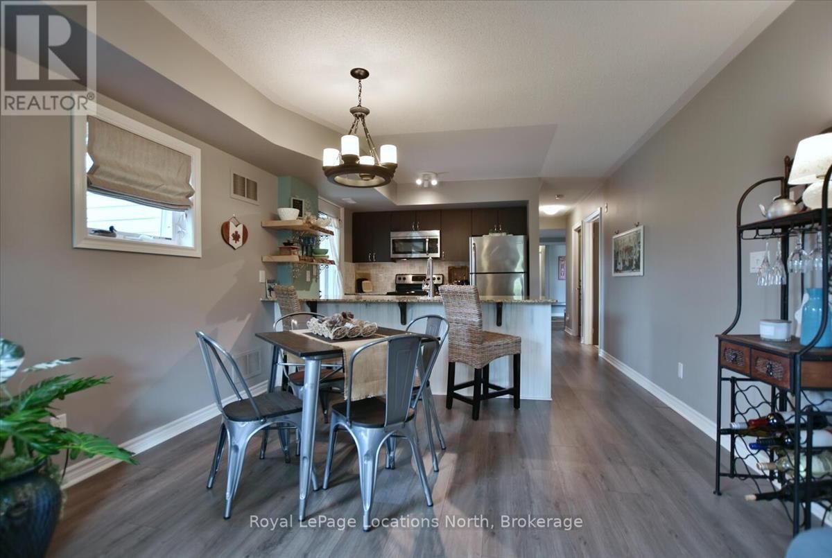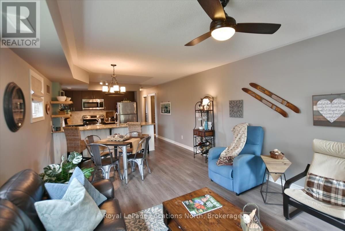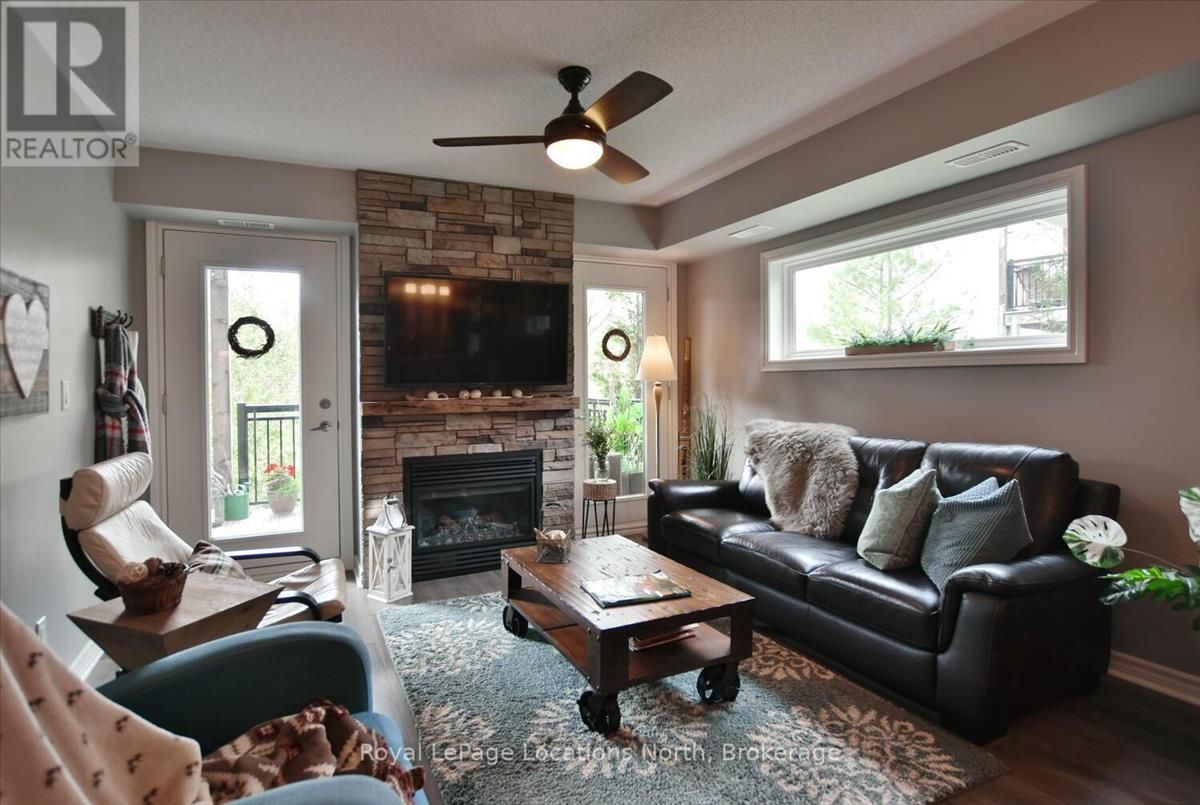Stylish End Unit in Wyldewood! Your 4-Season Escape! Welcome to this beautifully upgraded 3-bed, 2-bath end unit in the sought-after Wyldewood community, an ideal full-time residence or weekend getaway offering the best of Collingwood's 4-season lifestyle. Situated in the desirable Brandy Lane complex, this stylish 2nd-floor condo combines modern comfort, thoughtful design, & unbeatable location just minutes from Georgian Bay, Blue Mountain, trails, golf, & vibrant shops & dining. This bright airy unit features a spacious open-concept layout perfect for entertaining or relaxing. The modern kitchen is outfitted with stainless steel appliances, granite countertops & a large island. It flows seamlessly into the dining & living areas, where a cozy gas fireplace anchors the space & large windows bathe the room in natural light. Enjoy outdoor living on 2 private covered balconies, one with tranquil views of the forest & trails & escarpment, & the other equipped with a gas BBQ, ideal for outdoor cooking & entertaining year-round. The generous primary suite offers a walk-in closet & a private 4-piece ensuite. Two additional bedrooms provide flexible space for guests, family, or a home office. Additional features include in-suite laundry, central air conditioning, & 2 dedicated parking spaces right outside the buildings front entrance. The building includes elevator access & this unit comes with a large exclusive storage locker just steps from the door, perfect for bikes, skis, & seasonal gear. Wyldewood residents enjoy access to a year-round heated outdoor pool, maintained walking trails, & proximity to some of Ontario's best recreational amenities. Whether you're hitting the slopes, cycling the Georgian Trail, or exploring downtown Collingwood, everything you need is close at hand. This turn-key condo offers a rare blend of style, convenience, & location in one of Collingwood's most desirable communities. Don't miss your chance to own a piece of this four-season paradise! (id:26457)