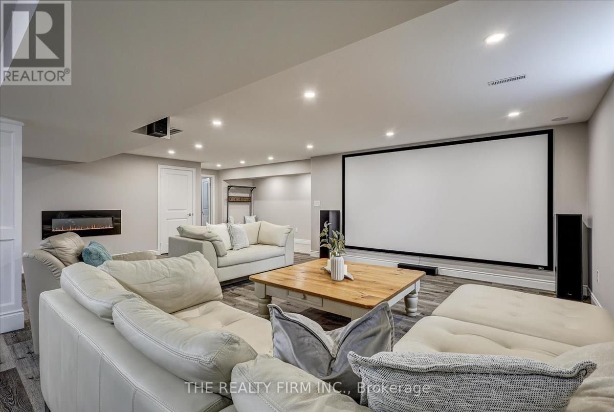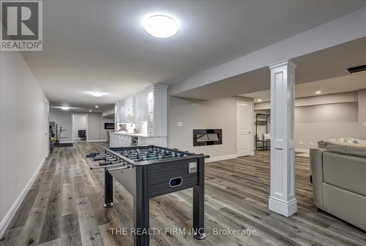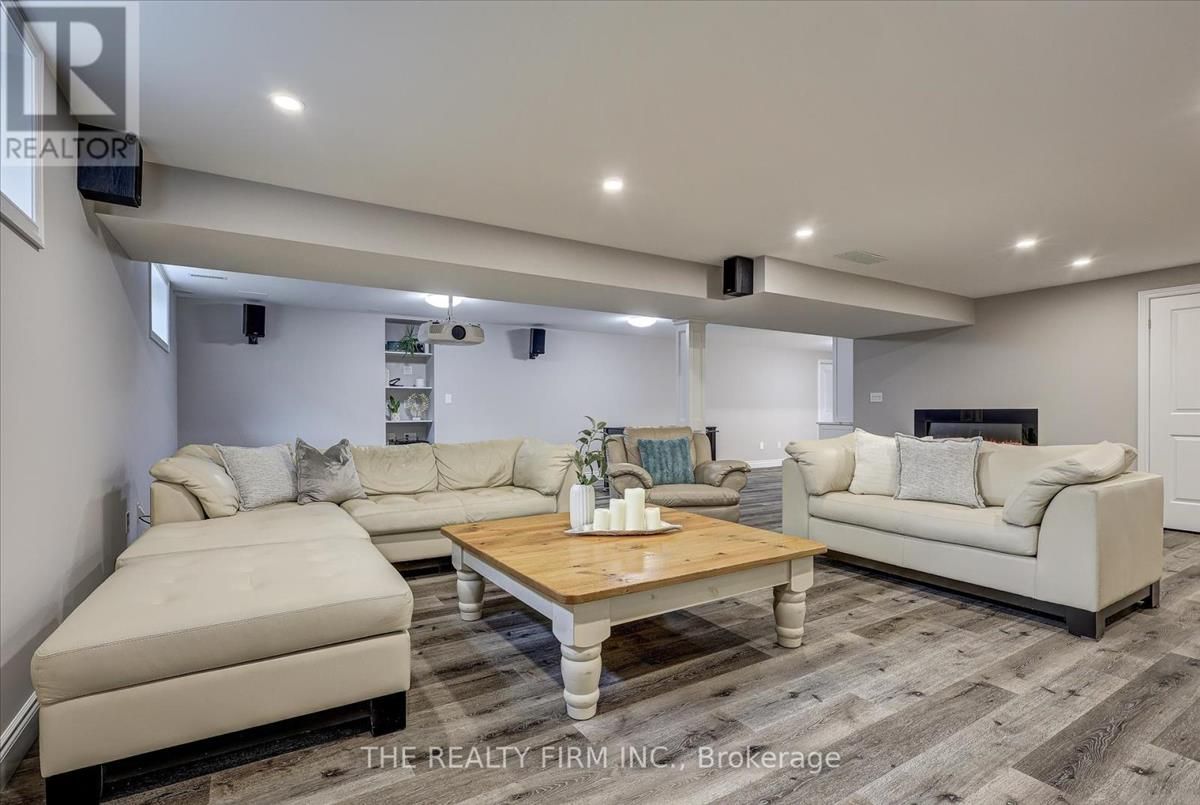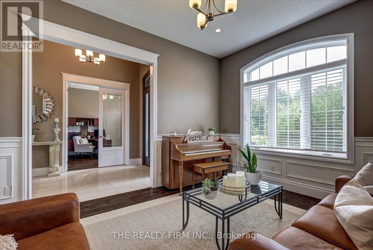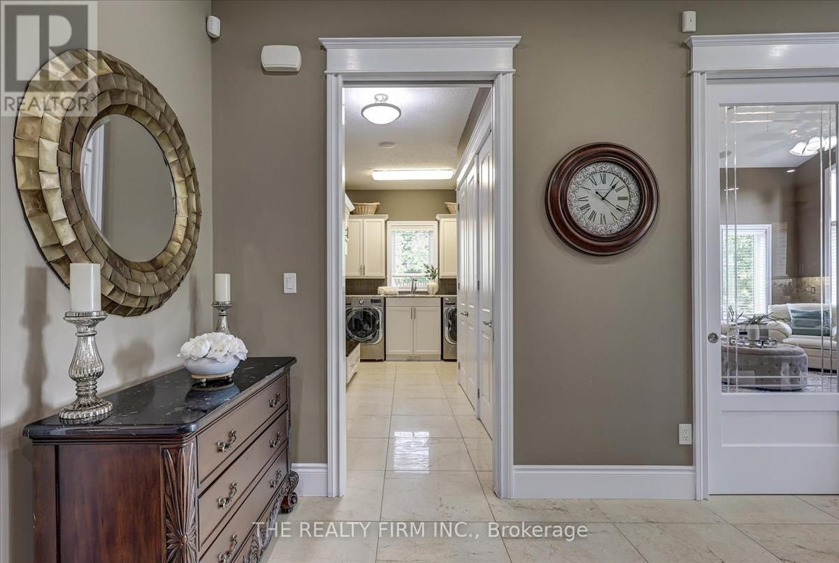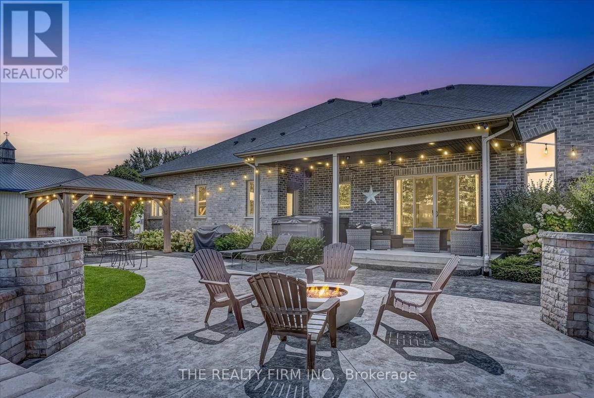 Welcome to your sanctuary of refined rural living at 22060 Nissouri Rd. Thorndale On. A breathtaking estate nestled on 1.33 acres spanning over 5,000 sq ft with exquisitely finished space. This majestic home features 4 + 1 bedrooms and 3.5 baths, crafted with thoughtful design and premium craftsmanship at every turn. Step through the stately entry into a 12' coffered-ceiling foyer with poplar custom trim flowing seamlessly into the family room with its soaring 13 vaulted ceiling and commanding floor-to-ceiling plaster gas fireplace. The kitchen, dazzles with maple cabinetry, a massive island with sink with reverse osmosis, a 6 burner gas stove, double wall ovens and luxe finishes like a travertine backsplash, Brizo faucets and Electrolux ICON fridge/freezer. The main level boasts 10 ceilings, 8 doors, hand scraped oak floors, Italian porcelain tile, granite throughout and an ambient speaker system all complemented by Hunter Douglas window treatments. A convenient main-floor laundry and custom drop zone add to daily ease. The lower level inspires with a stylish wet bar, wine fridge, additional bedroom, full bath, quartz and dual electric fireplaces, oak staircase, spray-foam insulation, separate garage access and a cold room. This property is ideal for multigenerational living with the separate lower level entrance, full amenities and expansive layout. Outside experience meticulously curated 360 landscaping and lighting, stamped concrete walkways and patios, a covered 10' x 25' patio with speakers, insulated attic & 2 extra circuits for a future sunroom addition. Completing the yard is a gas fire pit, a 20' x 22' shed with hydro, gazebo, backyard hydrant and a triple garage with an extra bay door to the back. Thorndale offers tranquility and vibrant community living with playgrounds, splash pad, skate park, sports courts and community gardens. A short drive to Londons premier shopping, business district & airport. The perfect blend of rural and urban charm (id:26457)