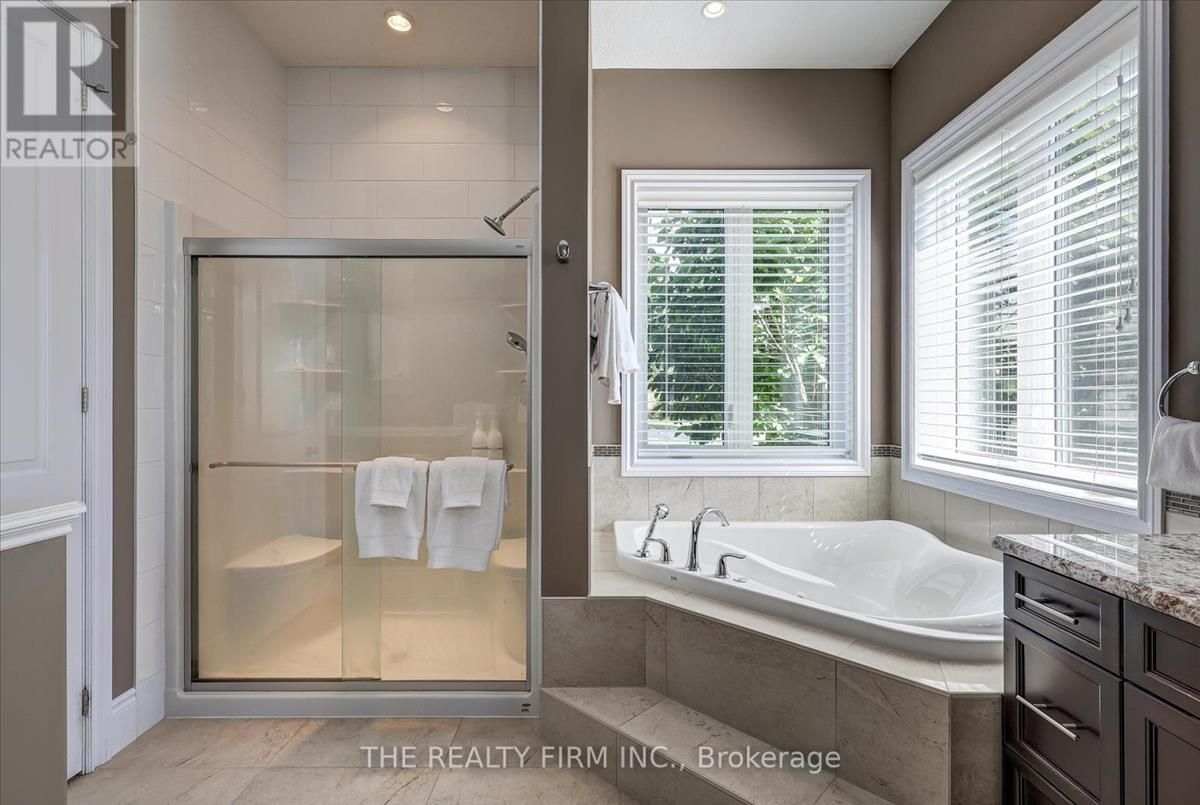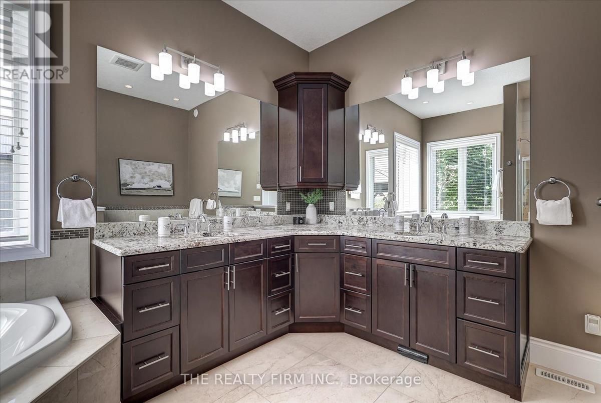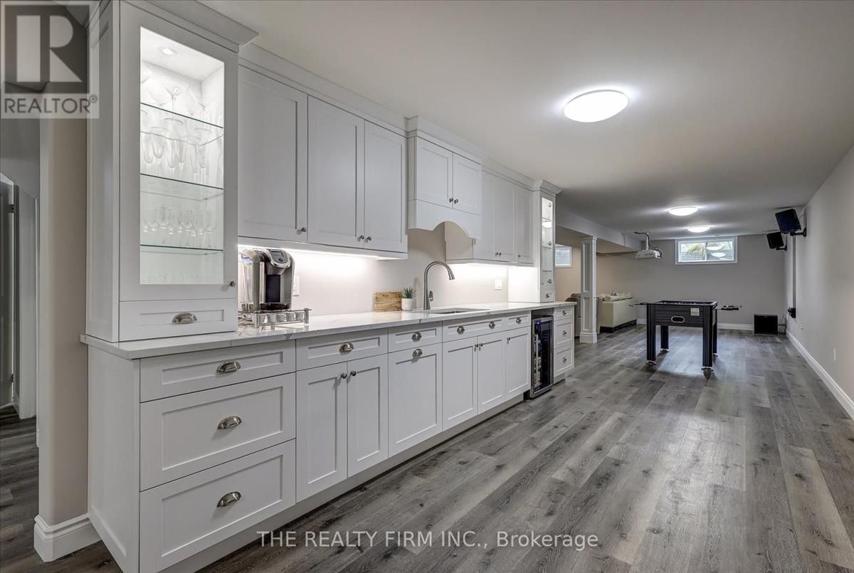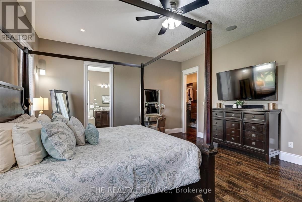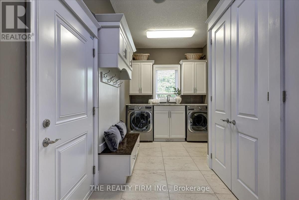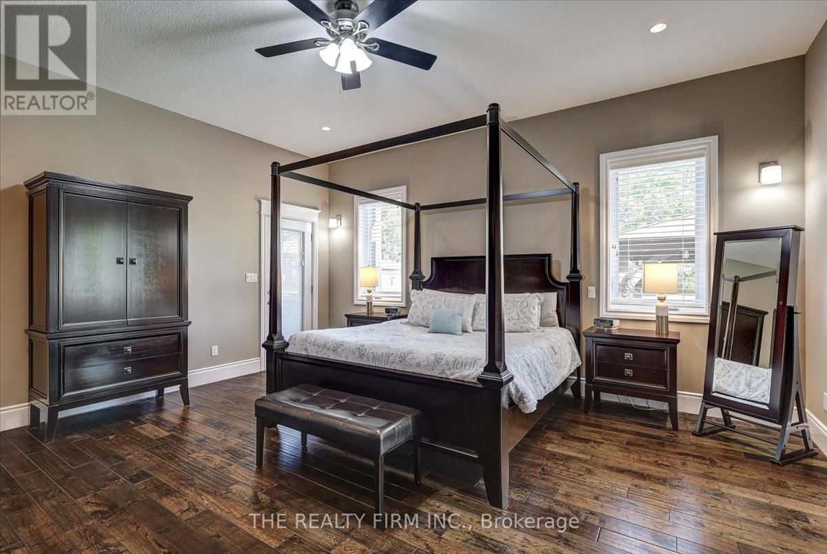 Welcome to your sanctuary of refined rural living at 22060 Nissouri Rd. Thorndale On. A breathtaking estate nestled on 1.33 acres spanning over 5,000 sq ft with exquisitely finished space. This majestic home features 4 + 1 bedrooms and 3.5 baths, crafted with thoughtful design and premium craftsmanship at every turn. Step through the stately entry into a 12' coffered-ceiling foyer with poplar custom trim flowing seamlessly into the family room with its soaring 13 vaulted ceiling and commanding floor-to-ceiling plaster gas fireplace. The kitchen, dazzles with maple cabinetry, a massive island with sink with reverse osmosis, a 6 burner gas stove, double wall ovens and luxe finishes like a travertine backsplash, Brizo faucets and Electrolux ICON fridge/freezer. The main level boasts 10 ceilings, 8 doors, hand scraped oak floors, Italian porcelain tile, granite throughout and an ambient speaker system all complemented by Hunter Douglas window treatments. A convenient main-floor laundry and custom drop zone add to daily ease. The lower level inspires with a stylish wet bar, wine fridge, additional bedroom, full bath, quartz and dual electric fireplaces, oak staircase, spray-foam insulation, separate garage access and a cold room. This property is ideal for multigenerational living with the separate lower level entrance, full amenities and expansive layout. Outside experience meticulously curated 360 landscaping and lighting, stamped concrete walkways and patios, a covered 10' x 25' patio with speakers, insulated attic & 2 extra circuits for a future sunroom addition. Completing the yard is a gas fire pit, a 20' x 22' shed with hydro, gazebo, backyard hydrant and a triple garage with an extra bay door to the back. Thorndale offers tranquility and vibrant community living with playgrounds, splash pad, skate park, sports courts and community gardens. A short drive to Londons premier shopping, business district & airport. The perfect blend of rural and urban charm (id:26457)