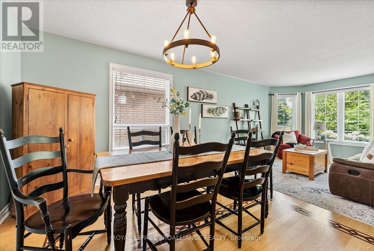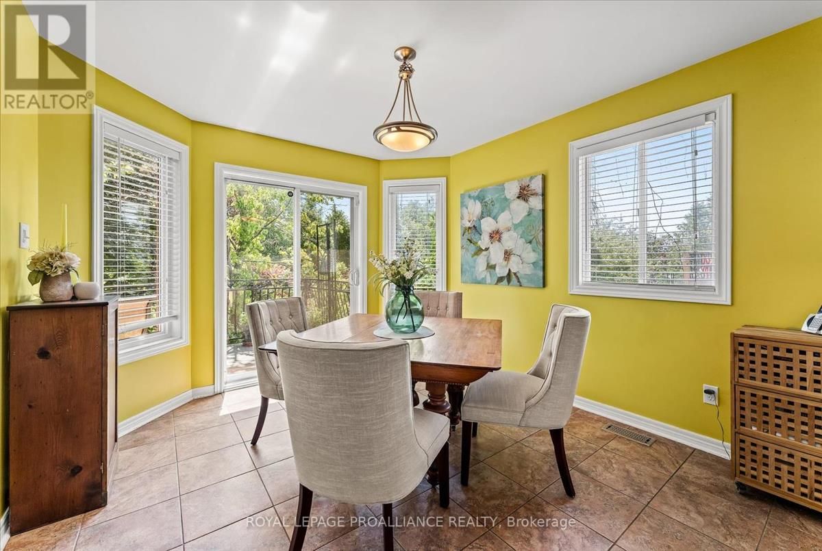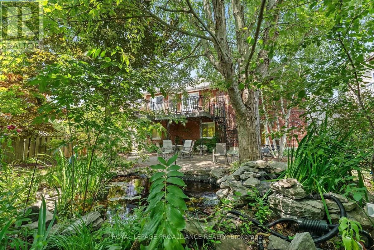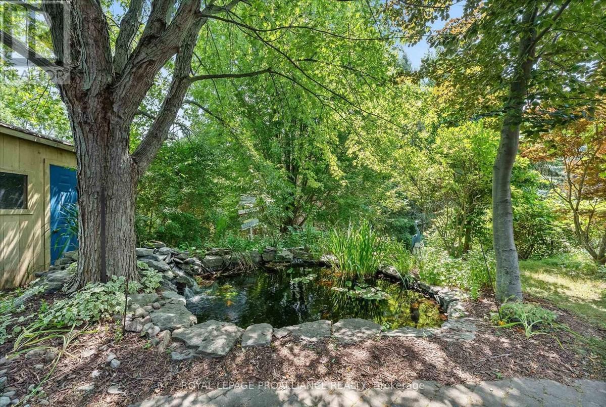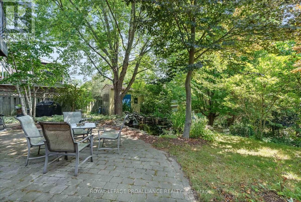 Your private nature retreat in one of Cobourg's most desirable neighbourhoods. This exceptional property backs onto a greenbelt while offering convenient Highway 401 access; the perfect balance of tranquility and connectivity. Nestled on a secluded lot adorned with mature trees and thoughtful landscaping, this home invites you to embrace the beauty of indoor-outdoor living. Step through the main floor and onto your private terrace, where the soothing sounds of nature await. Below, a second walkout from the finished basement leads to a serene patio overlooking your personal pond, flowing gardens, and the lush ravine beyond. Bird enthusiasts will appreciate the variety of wildlife that visits this natural sanctuary, while the established trees provide welcome shade during summer months. Inside, the heart of the home features a spacious eat-in kitchen that flows seamlessly into a welcoming family room anchored by the natural gas fireplace - ideal for both everyday living and entertaining. The main floor also offers a bright living room with an elegant bay window showcasing the front garden views. This flexible space can easily accommodate both living and dining areas to suit your lifestyle preferences. Retreat to one of three generously-sized main floor bedrooms, including a primary suite complete with walk-in closet and private four-piece ensuite. The main level is thoughtfully designed with an additional four-piece bathroom and convenient laundry room with direct access to the two-car garage (currently divided but easily converted back to an open configuration). The mostly finished lower level presents endless possibilities with its large family room, full kitchen, additional bedroom and dedicated den/office space. Pamper yourself in the luxurious four-piece bathroom featuring both a jetted soaker tub and separate shower. A second laundry area in the basement utility room adds exceptional convenience for multigenerational living. (id:26457) ...