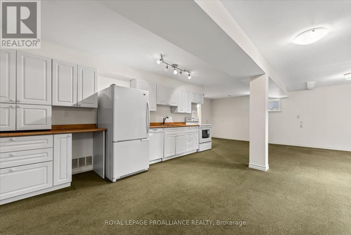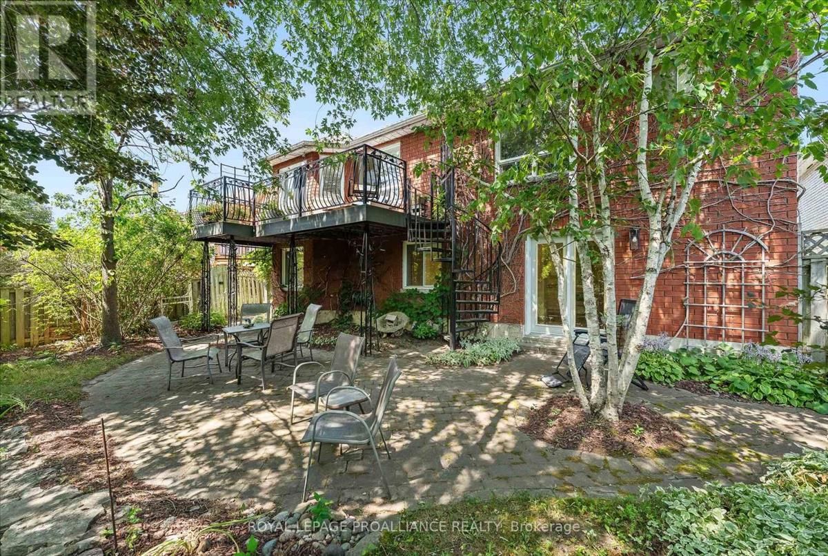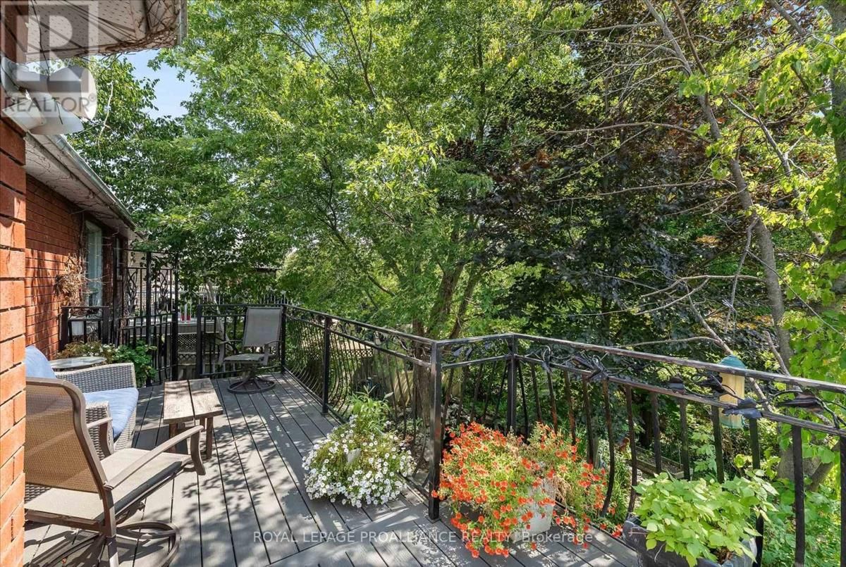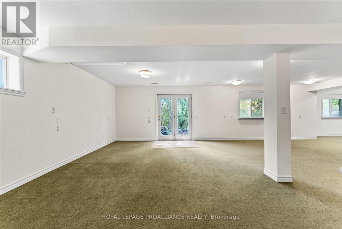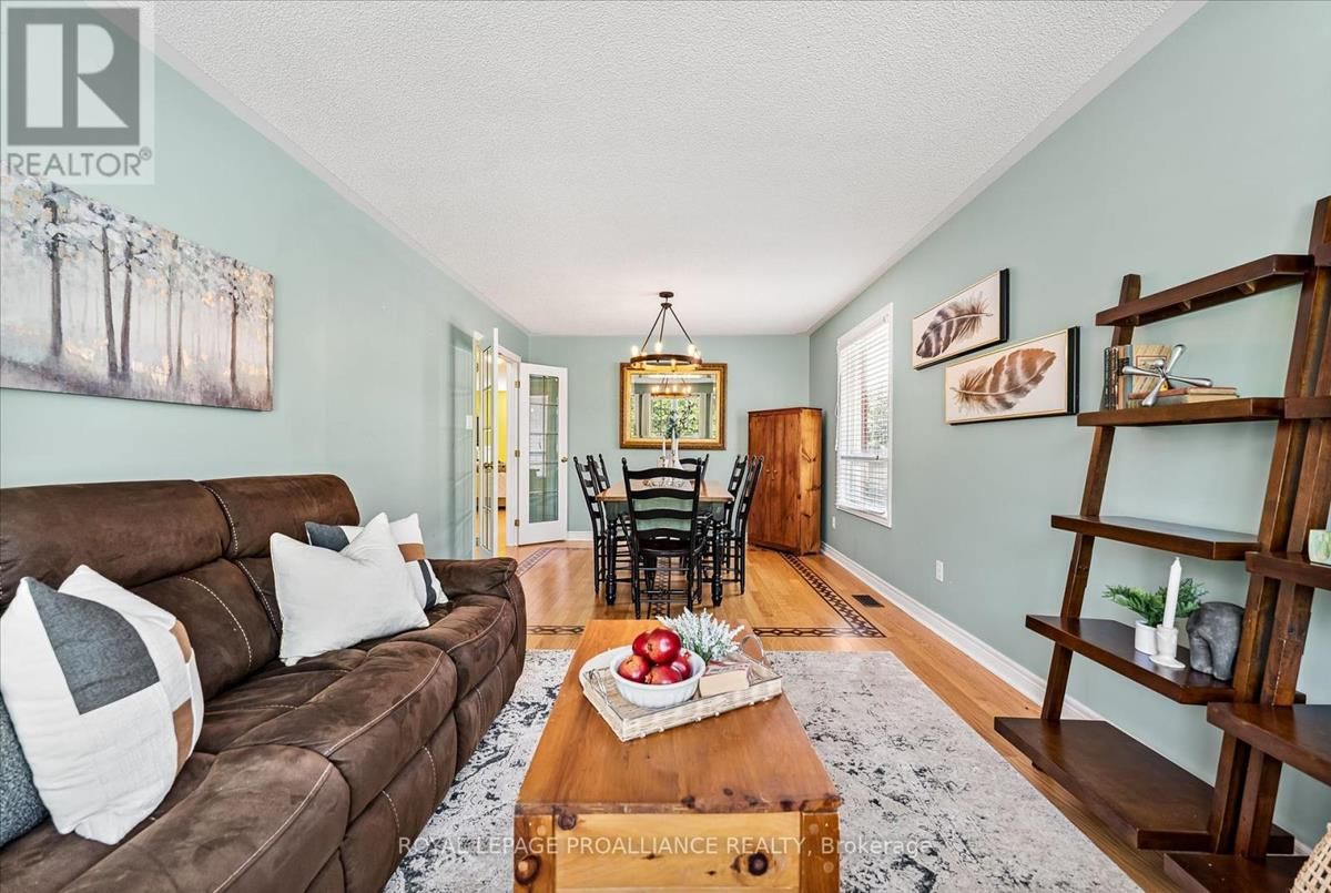 Your private nature retreat in one of Cobourg's most desirable neighbourhoods. This exceptional property backs onto a greenbelt while offering convenient Highway 401 access; the perfect balance of tranquility and connectivity. Nestled on a secluded lot adorned with mature trees and thoughtful landscaping, this home invites you to embrace the beauty of indoor-outdoor living. Step through the main floor and onto your private terrace, where the soothing sounds of nature await. Below, a second walkout from the finished basement leads to a serene patio overlooking your personal pond, flowing gardens, and the lush ravine beyond. Bird enthusiasts will appreciate the variety of wildlife that visits this natural sanctuary, while the established trees provide welcome shade during summer months. Inside, the heart of the home features a spacious eat-in kitchen that flows seamlessly into a welcoming family room anchored by the natural gas fireplace - ideal for both everyday living and entertaining. The main floor also offers a bright living room with an elegant bay window showcasing the front garden views. This flexible space can easily accommodate both living and dining areas to suit your lifestyle preferences. Retreat to one of three generously-sized main floor bedrooms, including a primary suite complete with walk-in closet and private four-piece ensuite. The main level is thoughtfully designed with an additional four-piece bathroom and convenient laundry room with direct access to the two-car garage (currently divided but easily converted back to an open configuration). The mostly finished lower level presents endless possibilities with its large family room, full kitchen, additional bedroom and dedicated den/office space. Pamper yourself in the luxurious four-piece bathroom featuring both a jetted soaker tub and separate shower. A second laundry area in the basement utility room adds exceptional convenience for multigenerational living. (id:26457) ...