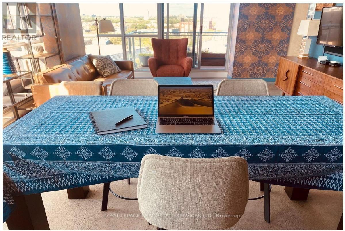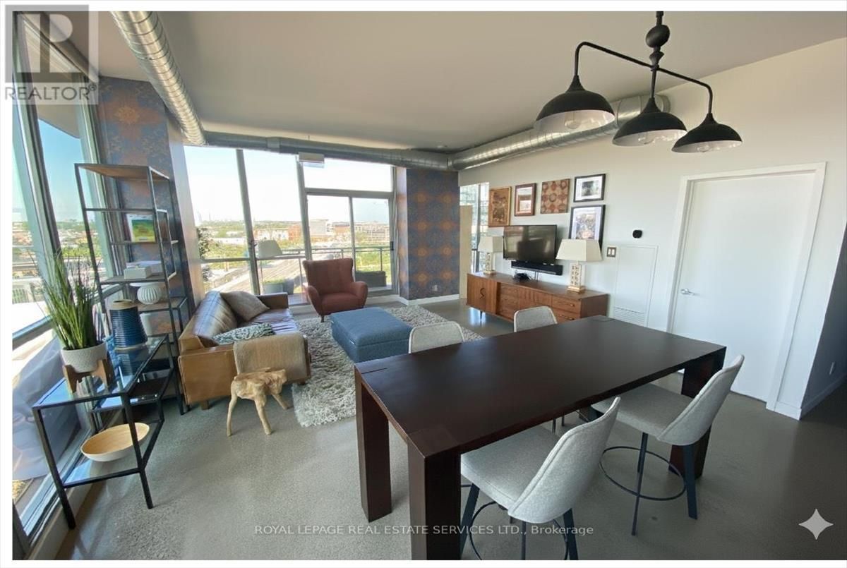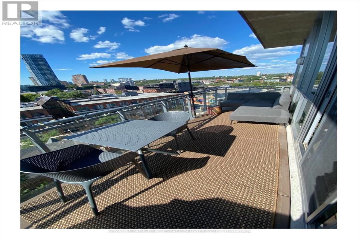 Stylish loft living in this rare corner penthouse with two balconies! High ceilings and polished concrete floors. Floor to ceiling windows make sure you are bathed in light. The open plan eat in chefs kitchen with living area is full of upgrades. This is a show off space perfect for entertainers. The gas hook up in one of the balconies can be for cooking and chilling taking in the north view while the other balcony can be for coffee and taking in the sunrise. This gem is offered furnished with a Style Garage vibe with parking and a locker! The building has loads to offer with a roof top terrace and 24 hr concierge. Easy access to the DVP and Gardiner and many bike trails. This is the best of east end living. (id:26457)