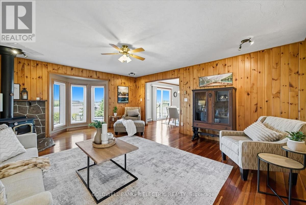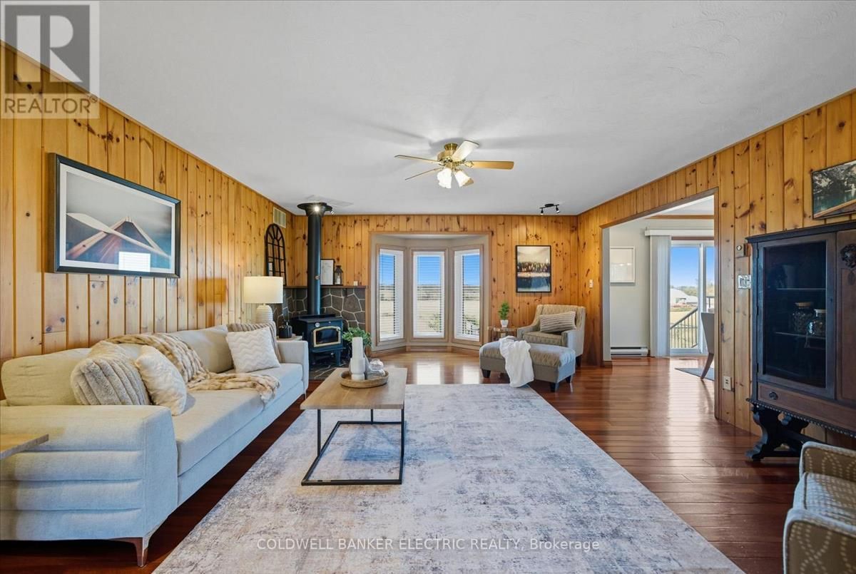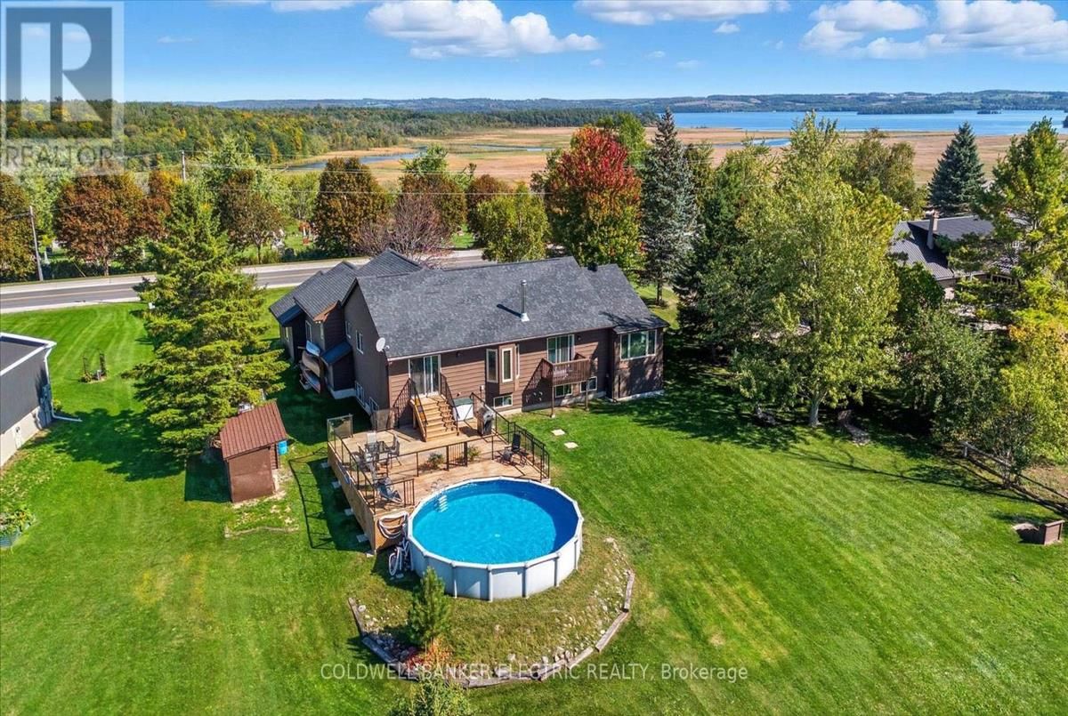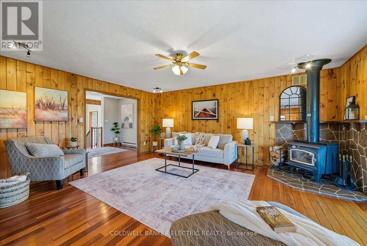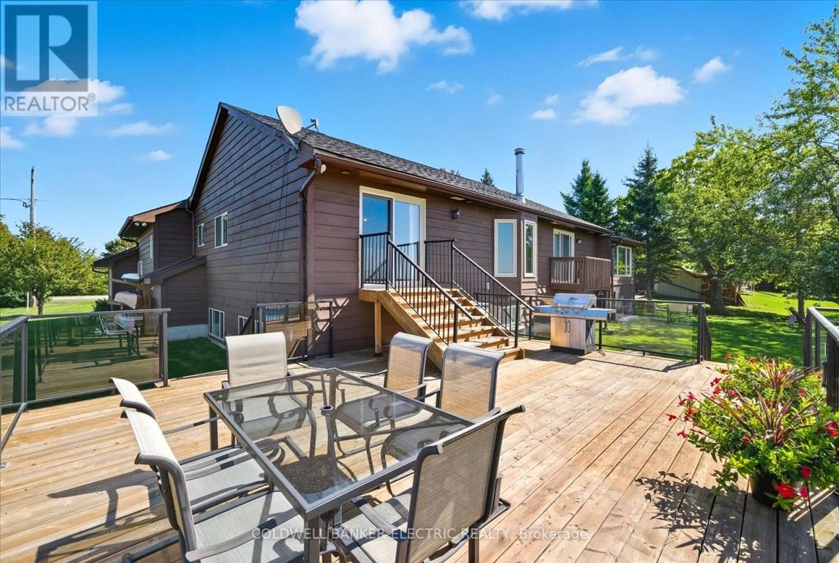 Enjoy cottage vibes without the cottage bills! This raised bungalow on Serpent Mounds Road offers a perfect balance of comfort, charm and practicality. With 3 + 2 bedrooms and 4 baths, you're getting dramatic rural panoramas and even glimpses of Rice Lake and just a minute (yes, I timed it) to the boat launch. Best part: no waterfront taxes, just pure lakeside joy. Step inside through a grand entry to the main floor, where gleaming Brazilian cherry wood floors shine. An oversized living room warmed by a wood stove features a heating redistribution system that sends cozy heat throughout the main floor, keeping you comfortable no matter where you are. The kitchen is both functional and generous: tons of cabinetry, a walk-in pantry, laundry room, plus direct access to the garage. The dining area leads out to a newer back deck (glass railings) overlooking a pool (liner replaced in 2025). Downstairs, the lower level is your custom-built chill zone: large family room with a stone gas fireplace, built-in hot tub for year-round relaxation, and two flexible rooms for bedrooms, office, hobby your choice. Outside, the fun continues: above-ground pool, fire pit, horseshoe pit, and wide open yard space for summer games or moonlit gatherings. The elevated lot gives you full 360-degree views, gorgeous sunsets, real wow moments. Location? Spot on. Close to Peterborough. Within walking reach of Keenes offerings: restaurant, pharmacy, LCBO / general store, library, school, medical centre, community centre with year-round events. Privacy, space and entertaining under one roof. A rare find near Rice Lake. (id:26457) ...