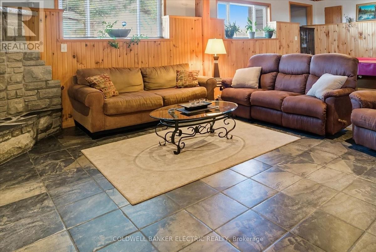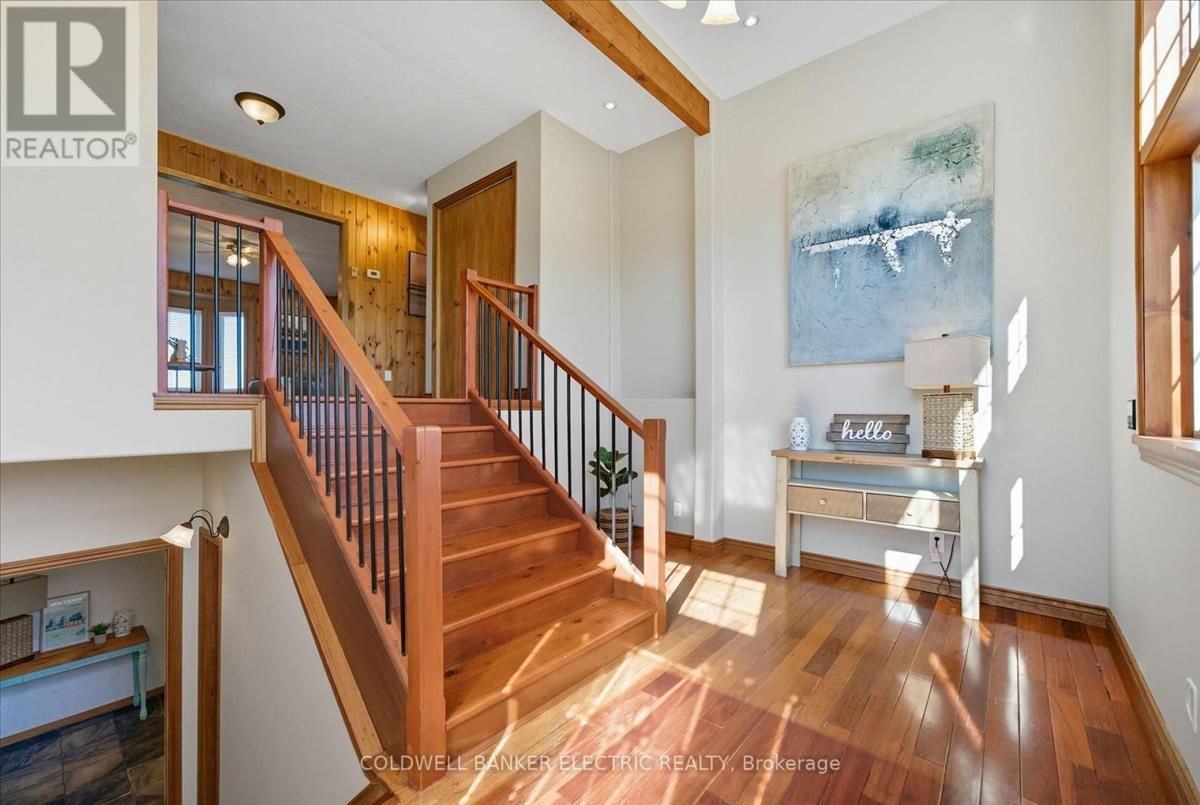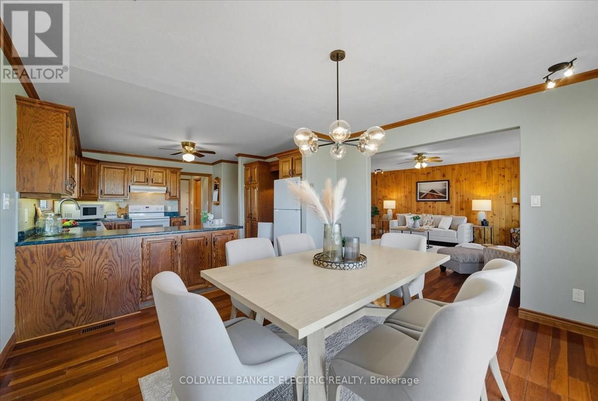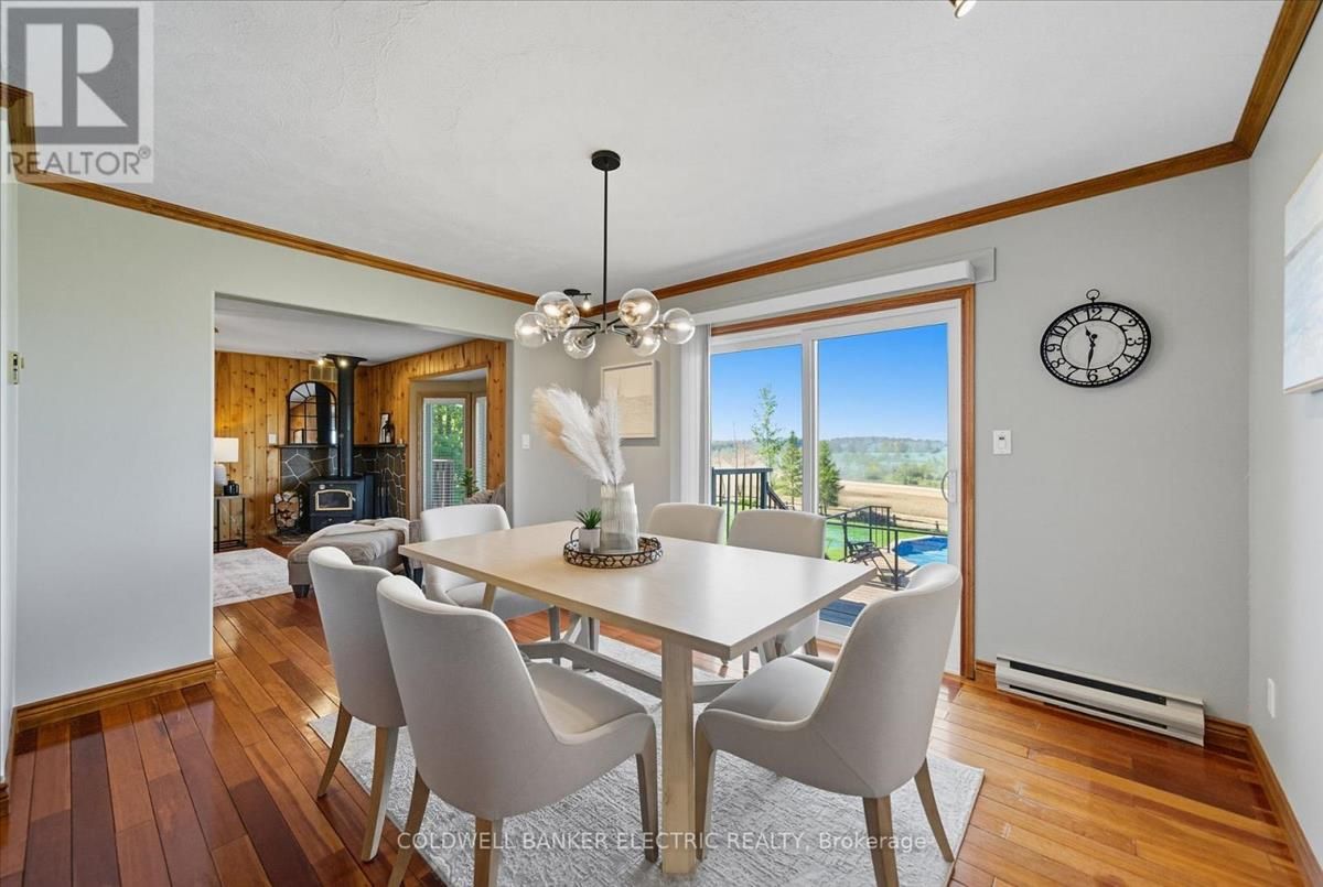 Enjoy cottage vibes without the cottage bills! This raised bungalow on Serpent Mounds Road offers a perfect balance of comfort, charm and practicality. With 3 + 2 bedrooms and 4 baths, you're getting dramatic rural panoramas and even glimpses of Rice Lake and just a minute (yes, I timed it) to the boat launch. Best part: no waterfront taxes, just pure lakeside joy. Step inside through a grand entry to the main floor, where gleaming Brazilian cherry wood floors shine. An oversized living room warmed by a wood stove features a heating redistribution system that sends cozy heat throughout the main floor, keeping you comfortable no matter where you are. The kitchen is both functional and generous: tons of cabinetry, a walk-in pantry, laundry room, plus direct access to the garage. The dining area leads out to a newer back deck (glass railings) overlooking a pool (liner replaced in 2025). Downstairs, the lower level is your custom-built chill zone: large family room with a stone gas fireplace, built-in hot tub for year-round relaxation, and two flexible rooms for bedrooms, office, hobby your choice. Outside, the fun continues: above-ground pool, fire pit, horseshoe pit, and wide open yard space for summer games or moonlit gatherings. The elevated lot gives you full 360-degree views, gorgeous sunsets, real wow moments. Location? Spot on. Close to Peterborough. Within walking reach of Keenes offerings: restaurant, pharmacy, LCBO / general store, library, school, medical centre, community centre with year-round events. Privacy, space and entertaining under one roof. A rare find near Rice Lake. (id:26457) ...