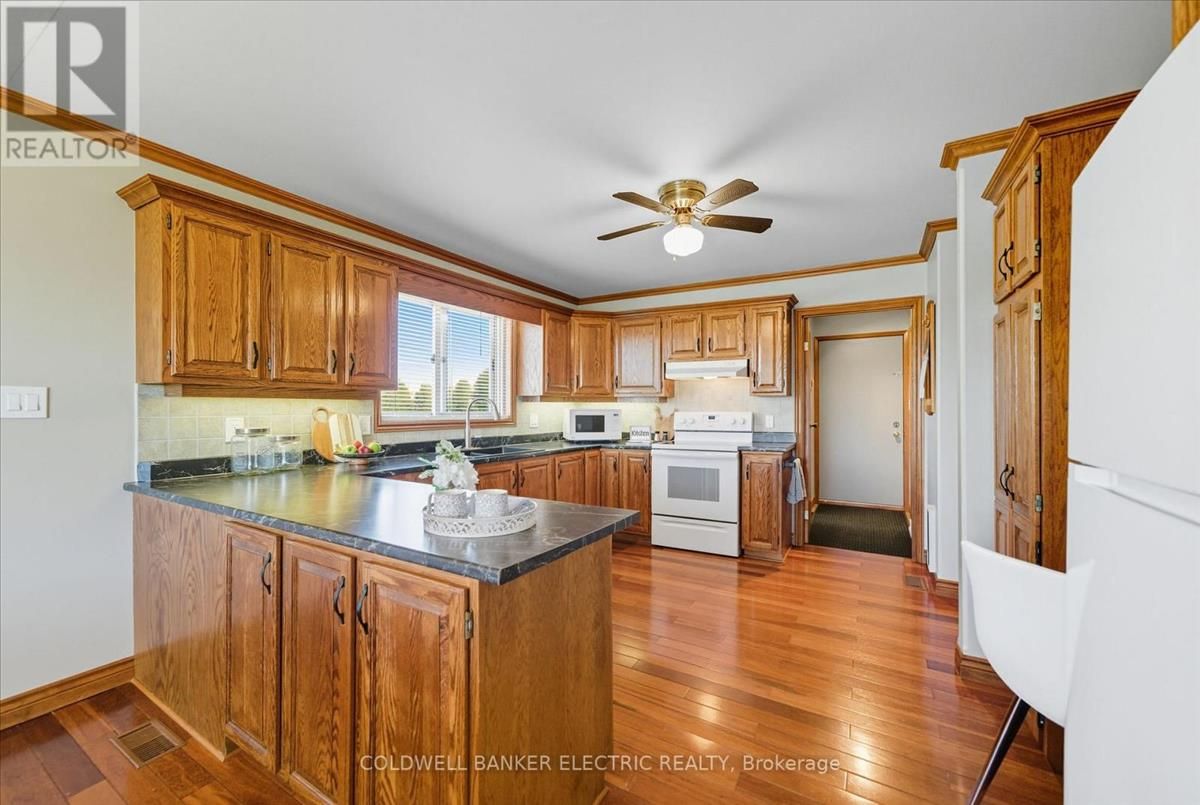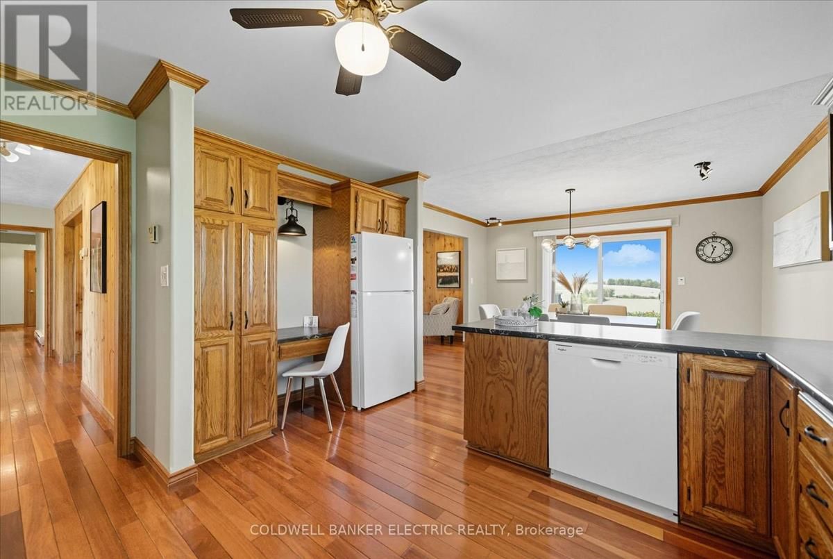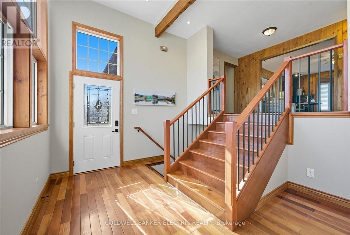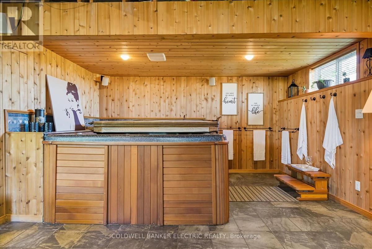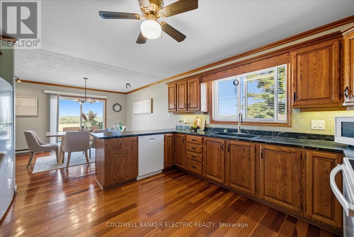 Enjoy cottage vibes without the cottage bills! This raised bungalow on Serpent Mounds Road offers a perfect balance of comfort, charm and practicality. With 3 + 2 bedrooms and 4 baths, you're getting dramatic rural panoramas and even glimpses of Rice Lake and just a minute (yes, I timed it) to the boat launch. Best part: no waterfront taxes, just pure lakeside joy. Step inside through a grand entry to the main floor, where gleaming Brazilian cherry wood floors shine. An oversized living room warmed by a wood stove features a heating redistribution system that sends cozy heat throughout the main floor, keeping you comfortable no matter where you are. The kitchen is both functional and generous: tons of cabinetry, a walk-in pantry, laundry room, plus direct access to the garage. The dining area leads out to a newer back deck (glass railings) overlooking a pool (liner replaced in 2025). Downstairs, the lower level is your custom-built chill zone: large family room with a stone gas fireplace, built-in hot tub for year-round relaxation, and two flexible rooms for bedrooms, office, hobby your choice. Outside, the fun continues: above-ground pool, fire pit, horseshoe pit, and wide open yard space for summer games or moonlit gatherings. The elevated lot gives you full 360-degree views, gorgeous sunsets, real wow moments. Location? Spot on. Close to Peterborough. Within walking reach of Keenes offerings: restaurant, pharmacy, LCBO / general store, library, school, medical centre, community centre with year-round events. Privacy, space and entertaining under one roof. A rare find near Rice Lake. (id:26457) ...