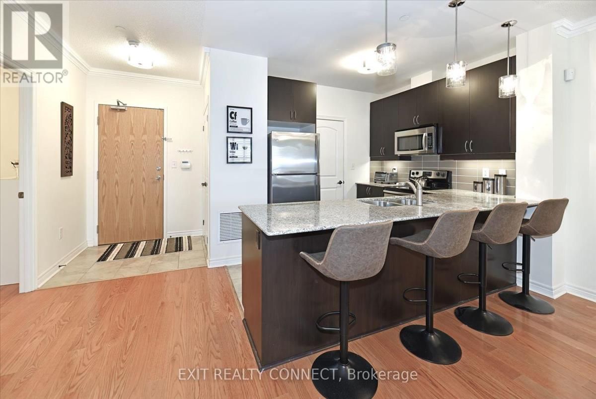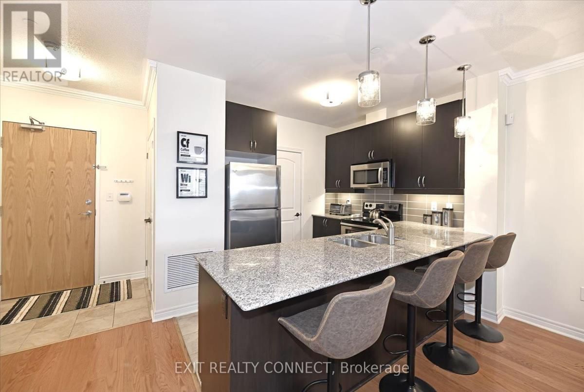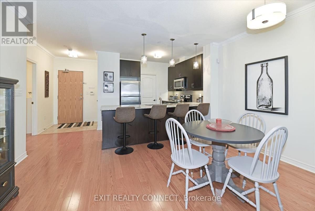 Discover over 1,200 square feet of thoughtfully designed living space in this bright and spacious 2-bedroom plus den condo, ideally situated on the ground floor of Milton's highly regarded Green Life community. Known for its innovative geothermal heating and cooling, this energy-efficient building offers sustainable living without compromising on comfort or style. The open-concept layout features a modern kitchen with a breakfast bar, a welcoming dining area, and a generous living room with a walk-out to your private patio perfect for enjoying your morning coffee or unwinding in the evening. Inside, the versatile den provides the ideal space for a home office, guest room, or hobby room. The 2 additional bedrooms are generously sized, and the primary suite offers ample storage thanks to a walk in closet, it also boast a 4pc bath with soaker tub and an abundance of natural light. This unit's prime location within the building puts you steps from all the essentials front and rear entrances, the elevators, the garbage chute, and your parking spots (one underground near the elevators and one surface spot close to the rear entrance) yet your new home remains impressively quiet and private thanks to excellent builder soundproofing. You're conveniently close to the gym, party room, and games room, making everyday living both accessible and enjoyable. Complete with a private storage locker and just moments to downtown Milton, the Milton Centre for the Arts, shops, restaurants, parks, and GO Transit, this condo is ideal for first-time buyers, downsizers, or investors alike. (id:26457) ...