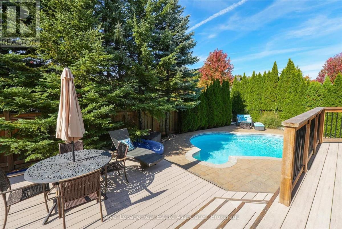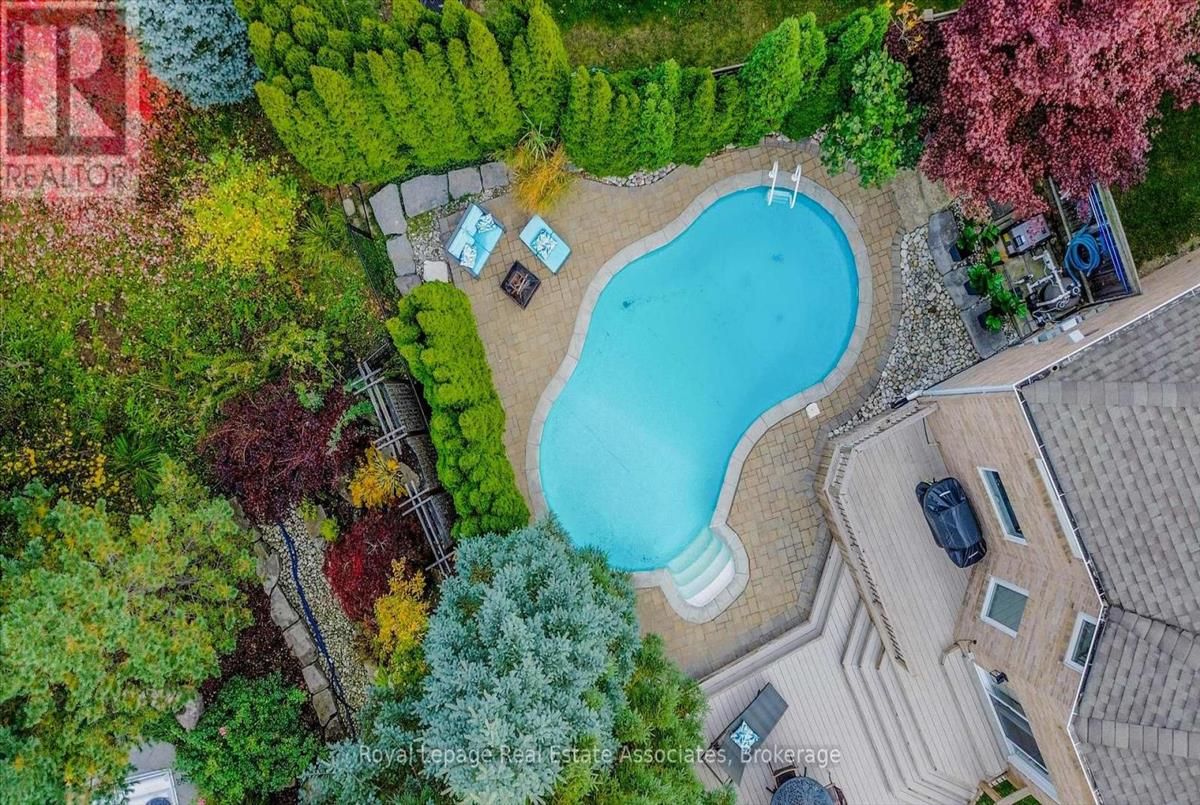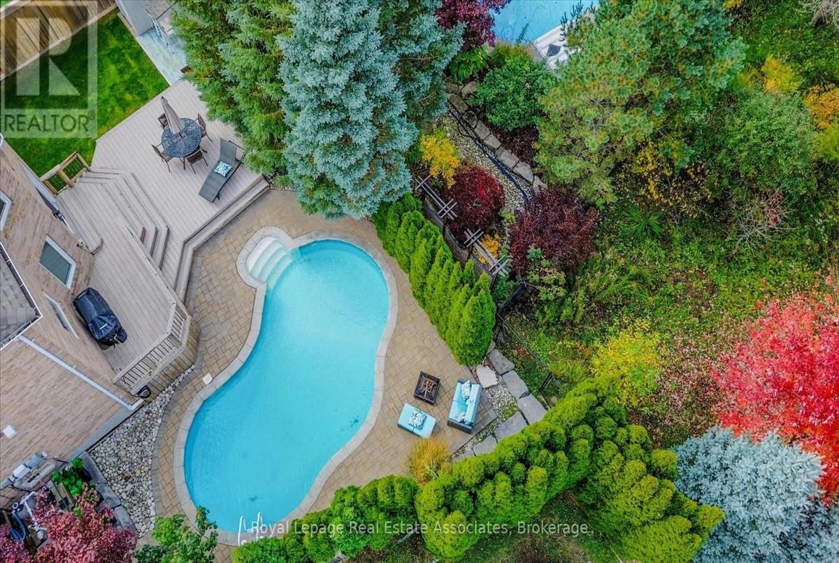 Stunning, fully updated executive detached home in a highly sought-after neighbourhood, offering the perfect balance of elegance, comfort and family living. Bright and open living spaces make it easy to spend time together, while still offering room to spread out. The heart of the home is the fabulous renovated kitchen, complete with a large centre island and plenty of space for gathering, ideal for both everyday family meals and entertaining. The open-concept design flows seamlessly into the bright family room with a gas fireplace. Upstairs, the large primary bedroom offers two walk-in closets and a spa-like bathroom. Three other generously sized bedrooms provide ample space for the whole family. The finished basement with additional bathroom adds even more space for recreation, a home office, or movie nights. Complete with built-in sauna! Step outside to a private backyard designed for fun and relaxation, with an inground pool, cabana bar and peaceful ravine views, perfect for summer days and weekend get-togethers. Located in a high-demand community close to top-rated schools, parks, trails, and all amenities, this home is a rare opportunity to own a move-in ready property with premium finishes and a one-of-a-kind setting. Kitchen and main floor renovation - 2019. New staircase from main floor to second floor - 2013. Hardwood floor upstairs - 2013. Primary bathroom renovation - 2019. Second upstairs bathroom - 2020. Basement and basement bathroom - 2023. Mechanics: Furnace and A/C - 2018. New water softener - 2024. Exterior: Pool - 2011Composite decking with cedar trim - 2011. Roof - 2015. New Pool Heater - 2025. (id:26457)