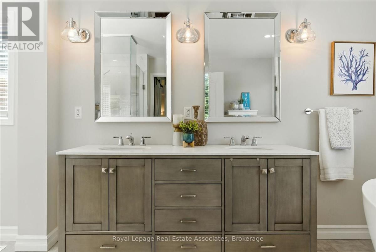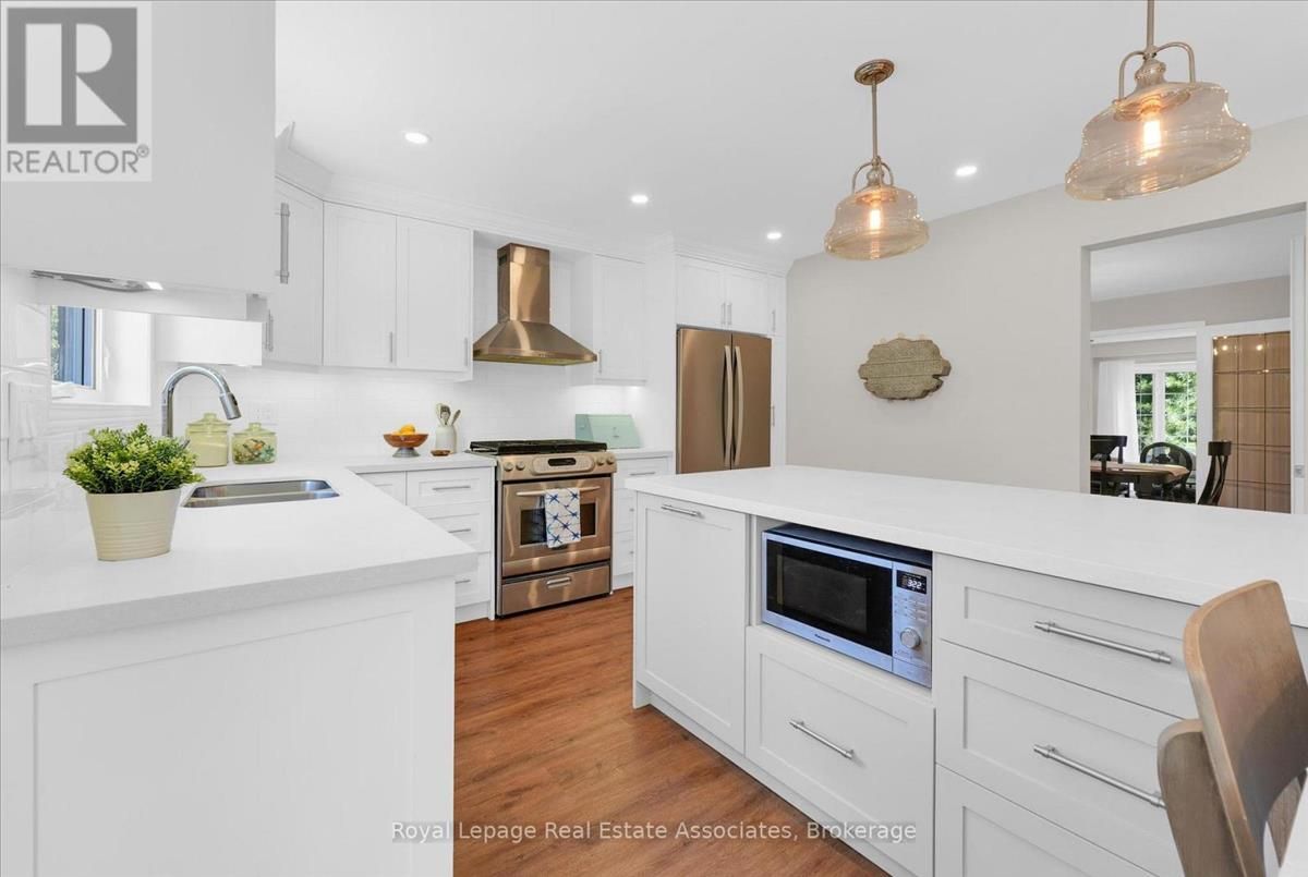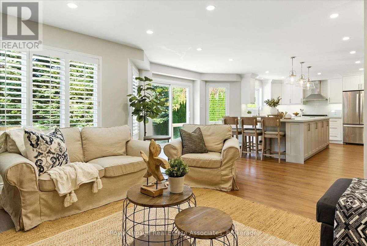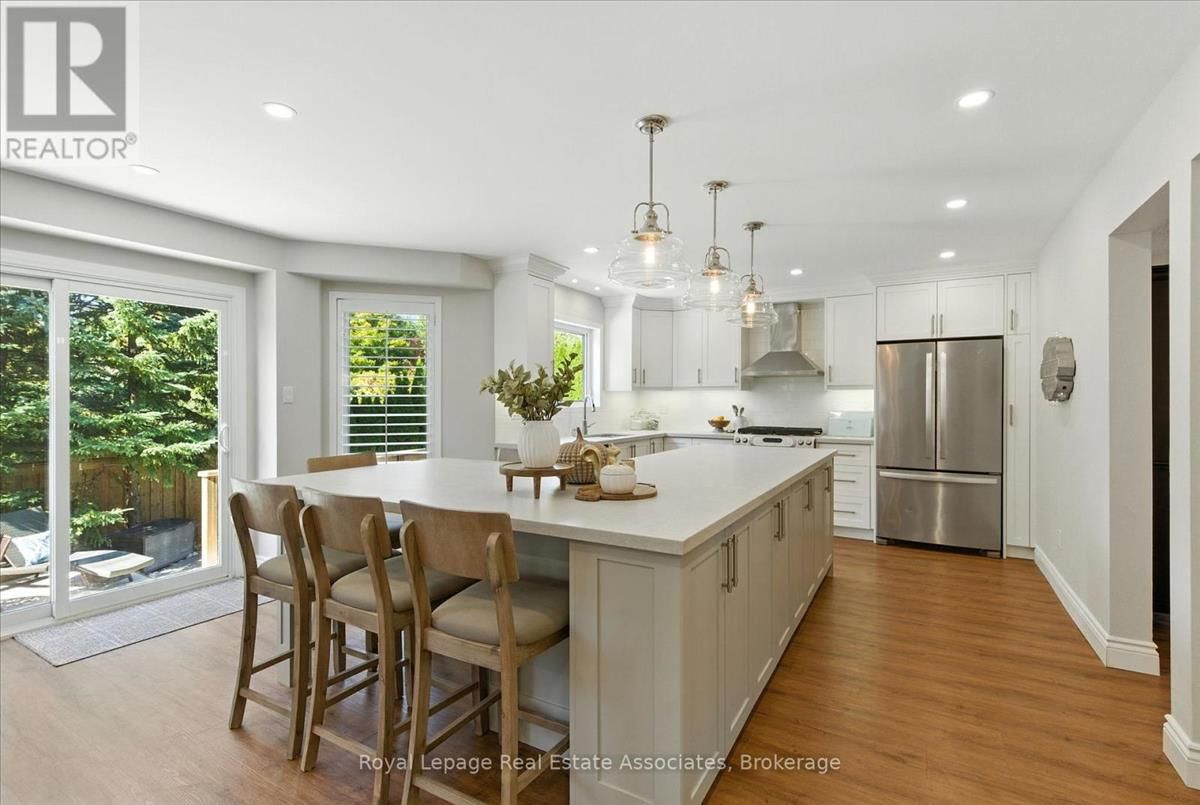 Stunning, fully updated executive detached home in a highly sought-after neighbourhood, offering the perfect balance of elegance, comfort and family living. Bright and open living spaces make it easy to spend time together, while still offering room to spread out. The heart of the home is the fabulous renovated kitchen, complete with a large centre island and plenty of space for gathering, ideal for both everyday family meals and entertaining. The open-concept design flows seamlessly into the bright family room with a gas fireplace. Upstairs, the large primary bedroom offers two walk-in closets and a spa-like bathroom. Three other generously sized bedrooms provide ample space for the whole family. The finished basement with additional bathroom adds even more space for recreation, a home office, or movie nights. Complete with built-in sauna! Step outside to a private backyard designed for fun and relaxation, with an inground pool, cabana bar and peaceful ravine views, perfect for summer days and weekend get-togethers. Located in a high-demand community close to top-rated schools, parks, trails, and all amenities, this home is a rare opportunity to own a move-in ready property with premium finishes and a one-of-a-kind setting. Kitchen and main floor renovation - 2019. New staircase from main floor to second floor - 2013. Hardwood floor upstairs - 2013. Primary bathroom renovation - 2019. Second upstairs bathroom - 2020. Basement and basement bathroom - 2023. Mechanics: Furnace and A/C - 2018. New water softener - 2024. Exterior: Pool - 2011Composite decking with cedar trim - 2011. Roof - 2015. New Pool Heater - 2025. (id:26457)