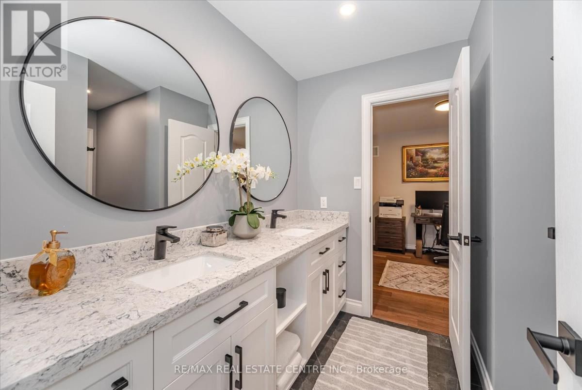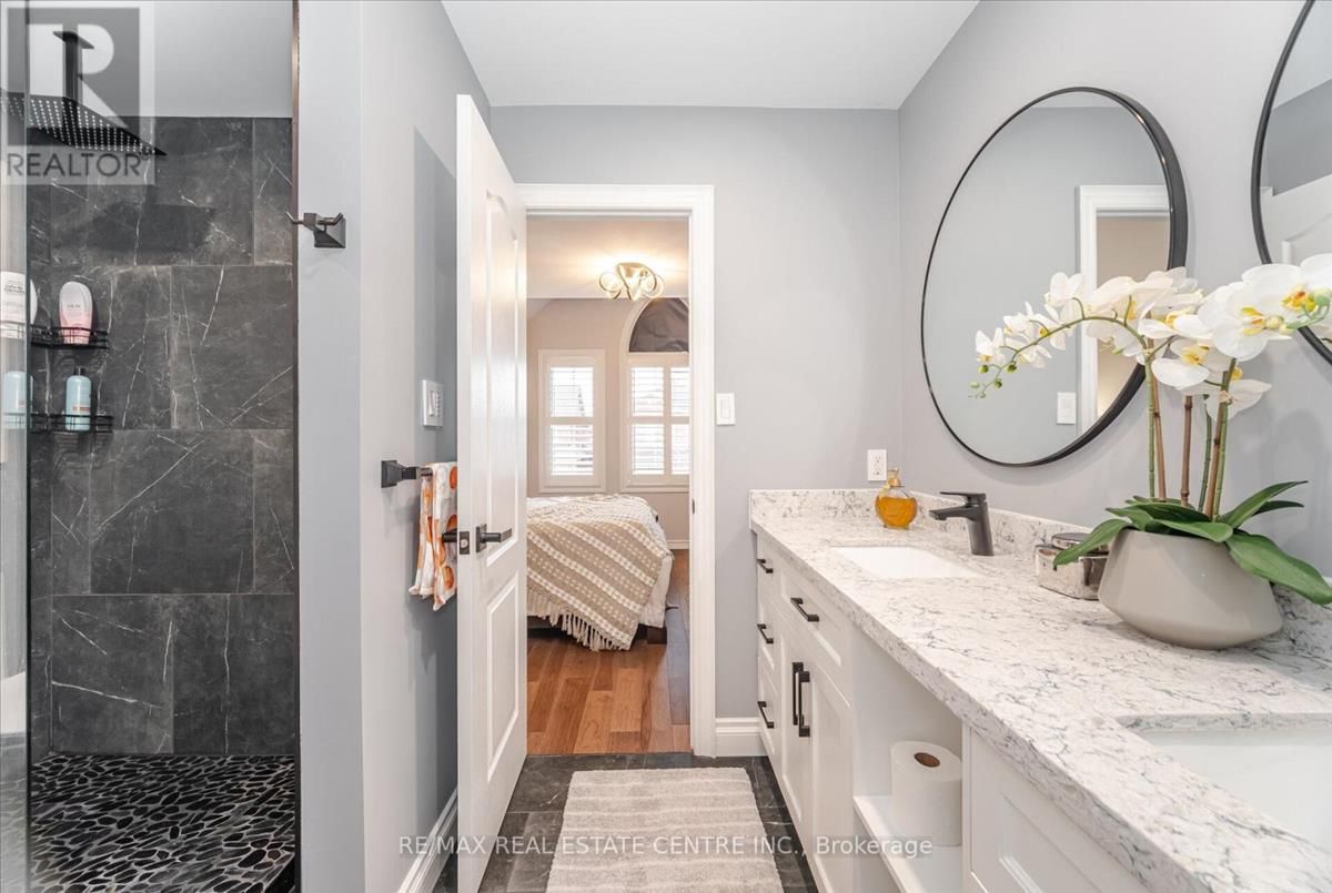 A rare find.House with all 2nd floor bedrooms with attached bathroom.Stunning 4+1 bedroom family home offering nearly 3,500 sq.ft. of living space including a beautifully finished basement.Perfectly situated on a quiet cul de sac in desirable Taunton community of North Oshawa, this move in ready home combines comfort, style, and convenience just minutes from Ontario Tech University,Durham College, shopping, restaurants, schools, parks.Step inside to a grand 17 ft foyer and 9 ft main floor with modern neutral colors. The bright living and dining rooms flow into a spacious family room with a cozy fireplace overlooking the backyard. The updated eat in kitchen features custom cabinets, a large island, high end built in appliances, and a Bosch built in coffee machine for your morning espresso.The main floor laundry room adds everyday practicality. Upstairs offers four spacious bedrooms including a primary suite with a large walk in closet with custom organizers and a luxury ensuite with a separate shower and bathtub.The second and third bedrooms share a Jack and Jill bath with double sinks, while the fourth bedroom enjoys its own bathroom.Finished basement adds incredible versatility with an entertainment area featuring a wet bar, office or game room, an additional bedroom, full bathroom, and a large cold room with hidden storage.Throughout the home you will find engineered hardwood flooring, California shutters, smooth ceilings, and updated lighting that create a bright and elegant feel. Exterior upgrades include new entrance, garage, and backyard doors, LED holiday lighting, an expanded driveway that fits up to five cars, a natural gas line for BBQ, wiring for a hot tub or sauna, new shed,wiring for electrical car.Security includes a Ring camera, Ring doorbell, and fingerprint lock.No sidewalk. proximity to Coldstream Park, Harmony Valley Park, playgrounds, schools, shopping, recreation.Possibility of adding side door and legal basement conversion (verified by buyer) (id:26457)