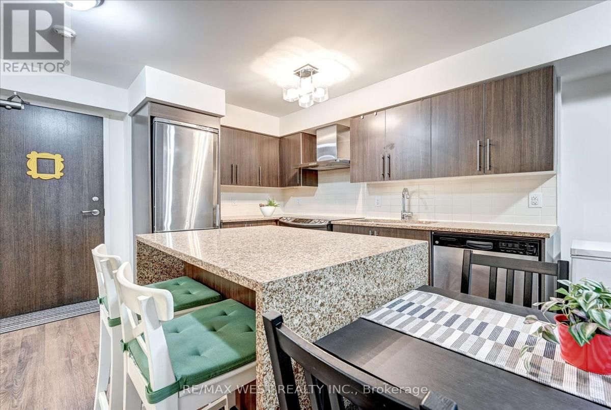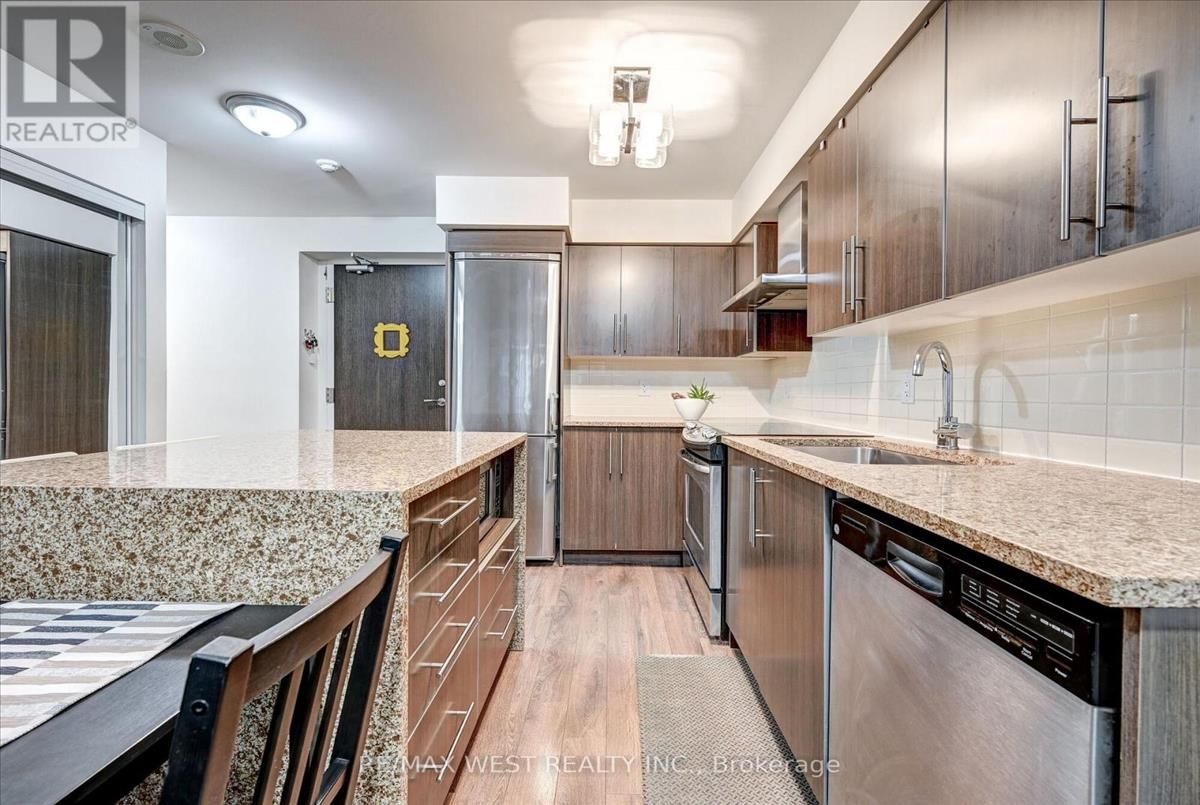 Discover urban and convenient living at its finest. Unit layout features two generous bedrooms and two full bathrooms. An open-concept kitchen is ideal for entertaining, showcasing stainless steel appliances, a ceramic backsplash, and a stunning Quartz waterfall island. The primary suite includes a private ensuite and walk-in closet, with laminate flooring throughout. Building amenities feature 24-hour concierge, an indoor pool, sauna, gym, party room, and theatre. Steps from TTC, subways, shopping, and dining, your vibrant lifestyle awaits. Heat, Water, Parking & Locker Included! (id:26457)