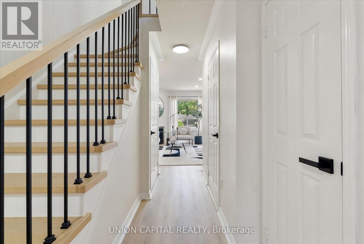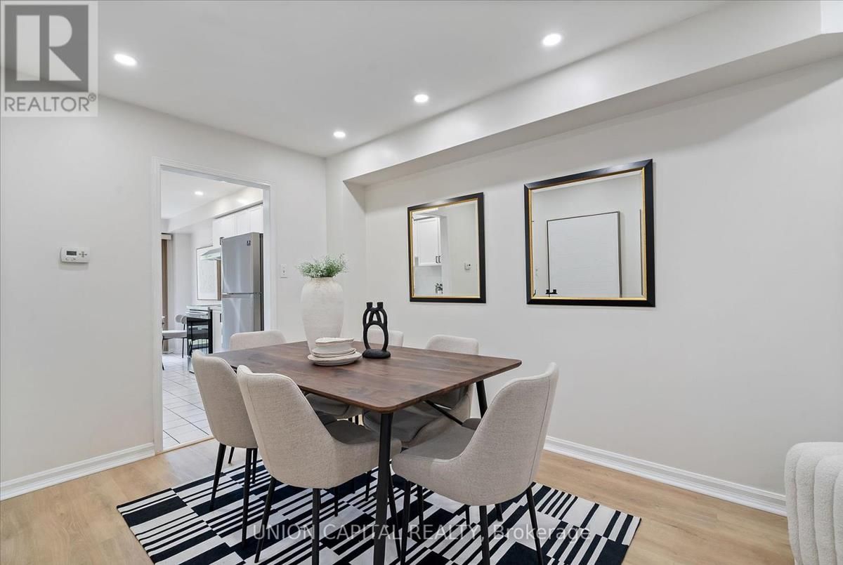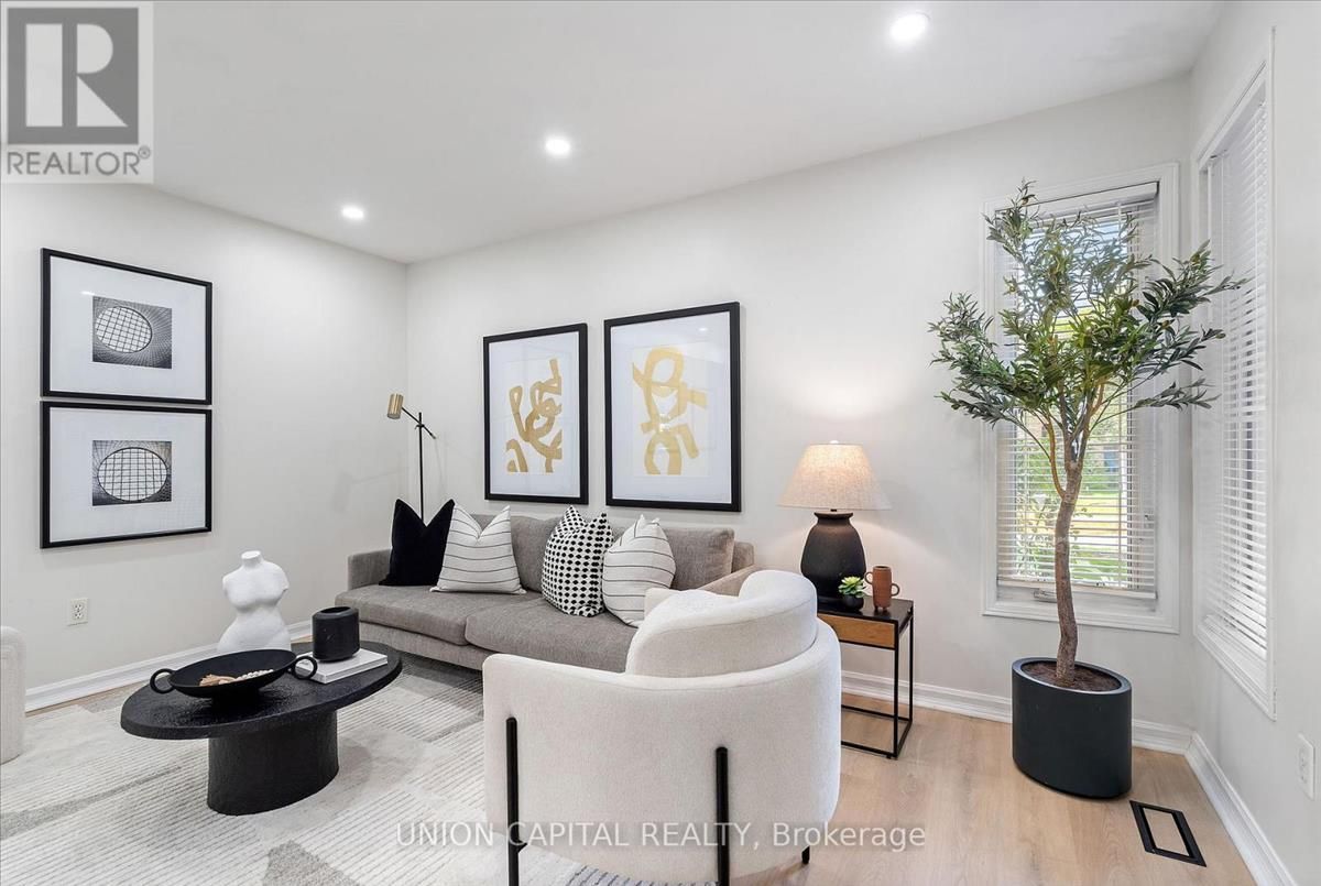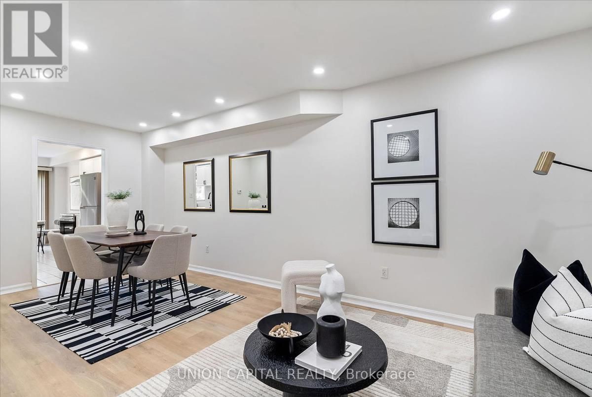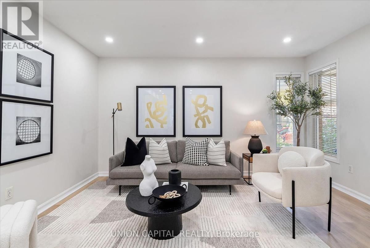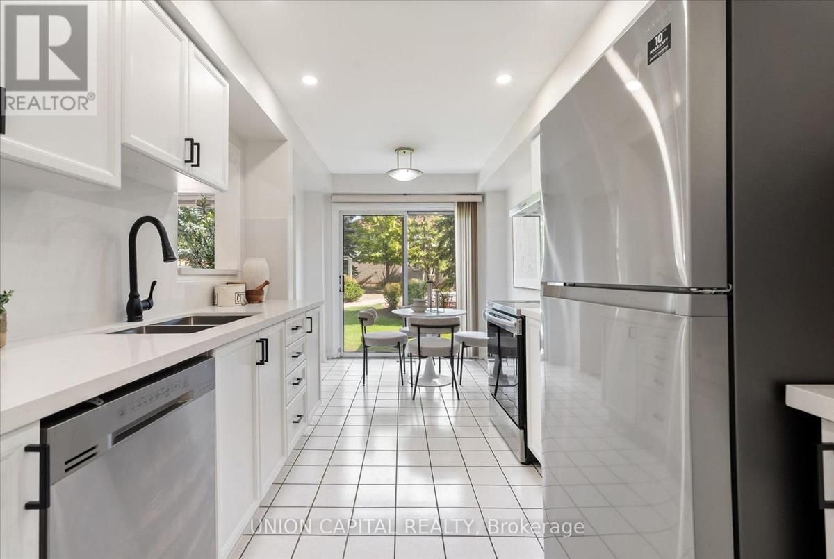 Welcome to #106-2555 Thomas St. - Nestled in the heart of Central Erin Mills in Mississauga, this beautifully updated 3-bedroom, 3 bathroom condo townhome is a must-see! The main floor showcases a modern kitchen featuring Quartz countertops and stainless steel appliances. A spacious family room, living room, and dining area offer the perfect layout for everyday living and entertaining. Updated vinyl flooring and a convenient powder room add style and functionality. Upstairs, the primary suite boasts a sun-filled retreat with space for a cozy sitting area and a 4-piece ensuite. Two additional bedrooms are generously sized, ideal for family, guests, or a home office. Located in a low maintenance fee, well-maintained landscaped complex, this home offers unmatched convenience steps to public transit, top-rated schools (John Fraser SS, St. Aloysius Gonzaga SS), major highways, Credit Valley Hospital, and Erin Mills Town Centre. Recent Upgrades (2025): Quartz countertops in kitchen & all bathrooms, Quartz backsplash in kitchen, vinyl flooring on main level, premium quality carpet in bedrooms, new blinds throughout, new stairs & railings, fresh paint throughout. This home combines modern updates with a prime family-friendly location move in and enjoy! (id:26457)