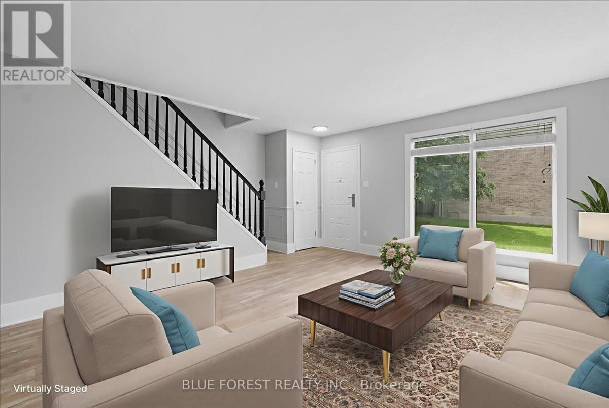 Turnkey condominium living in southwest London. This meticulously updated three-bedroom, 1.5-bathroom residence has been thoughtfully refreshed throughout, including new trim, paint, baseboards, flooring, and additional upgrades. The second level features generously sized bedrooms designed to provide ample comfort. The fully finished basement offers a versatile den, suitable for a home office, recreational space, or additional living area. The condominium fee covers water expenses and includes an exclusive parking space located conveniently near the entrance. Ideally situated near TVDSB and LDCSB elementary and secondary schools, as well as a variety of amenities, excellent dining options, shopping centers, and with convenient access to Highway 401/402. (id:26457)
