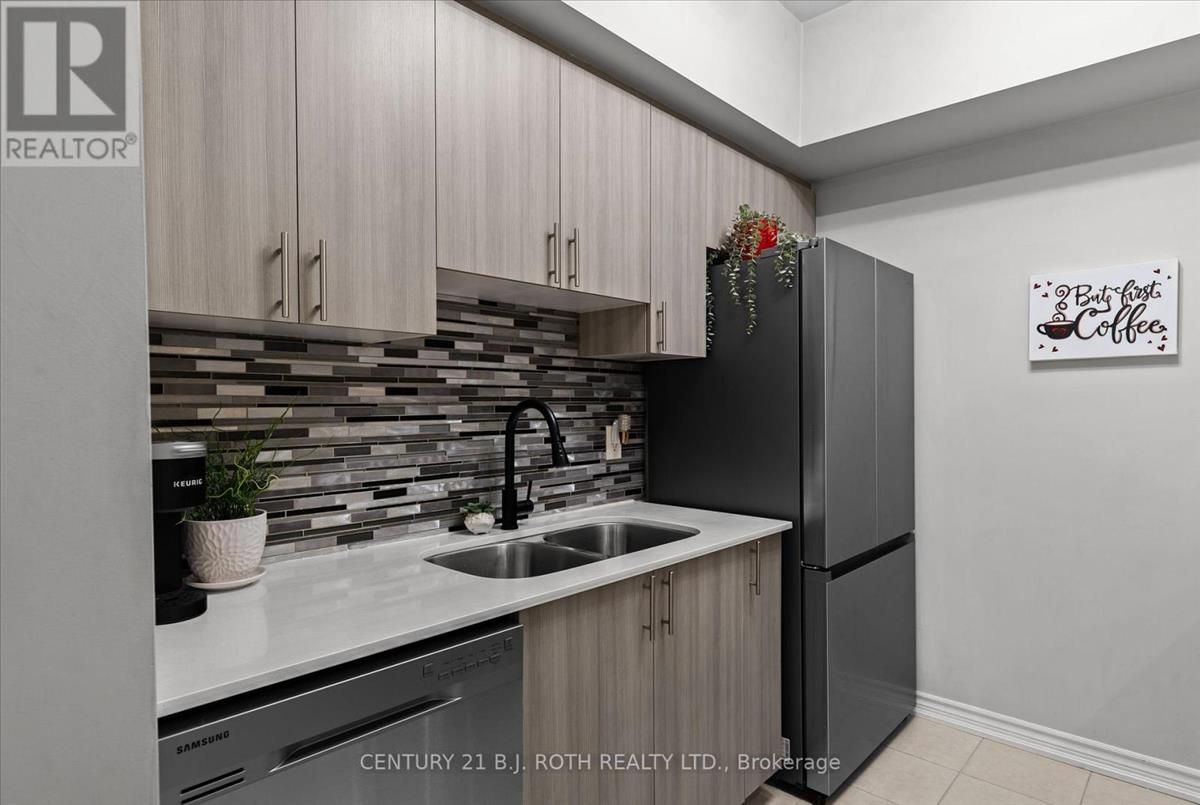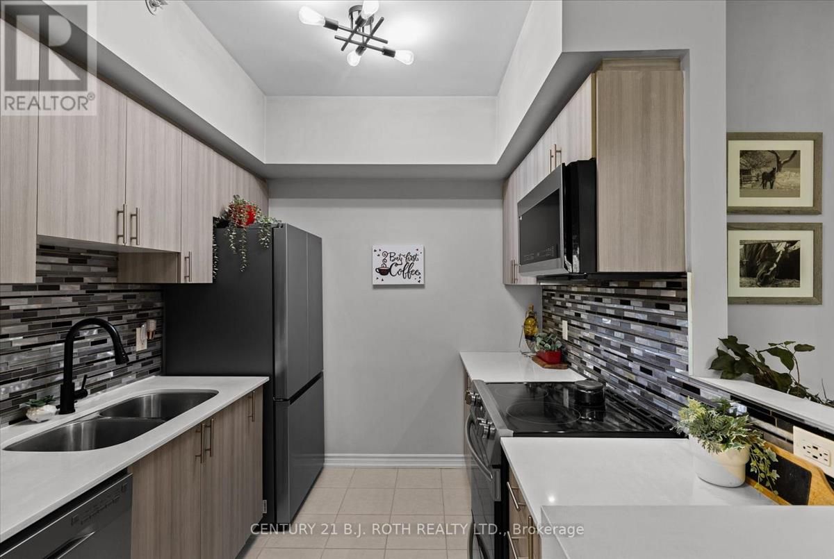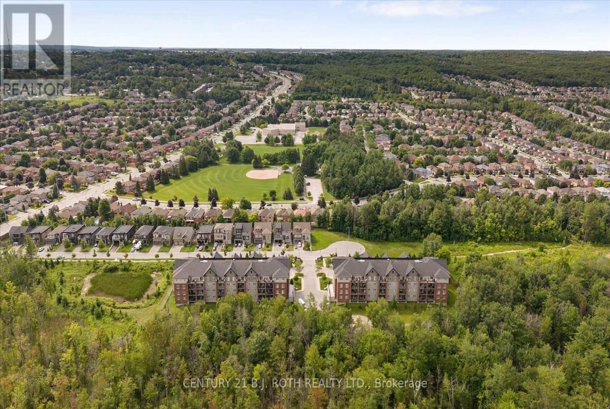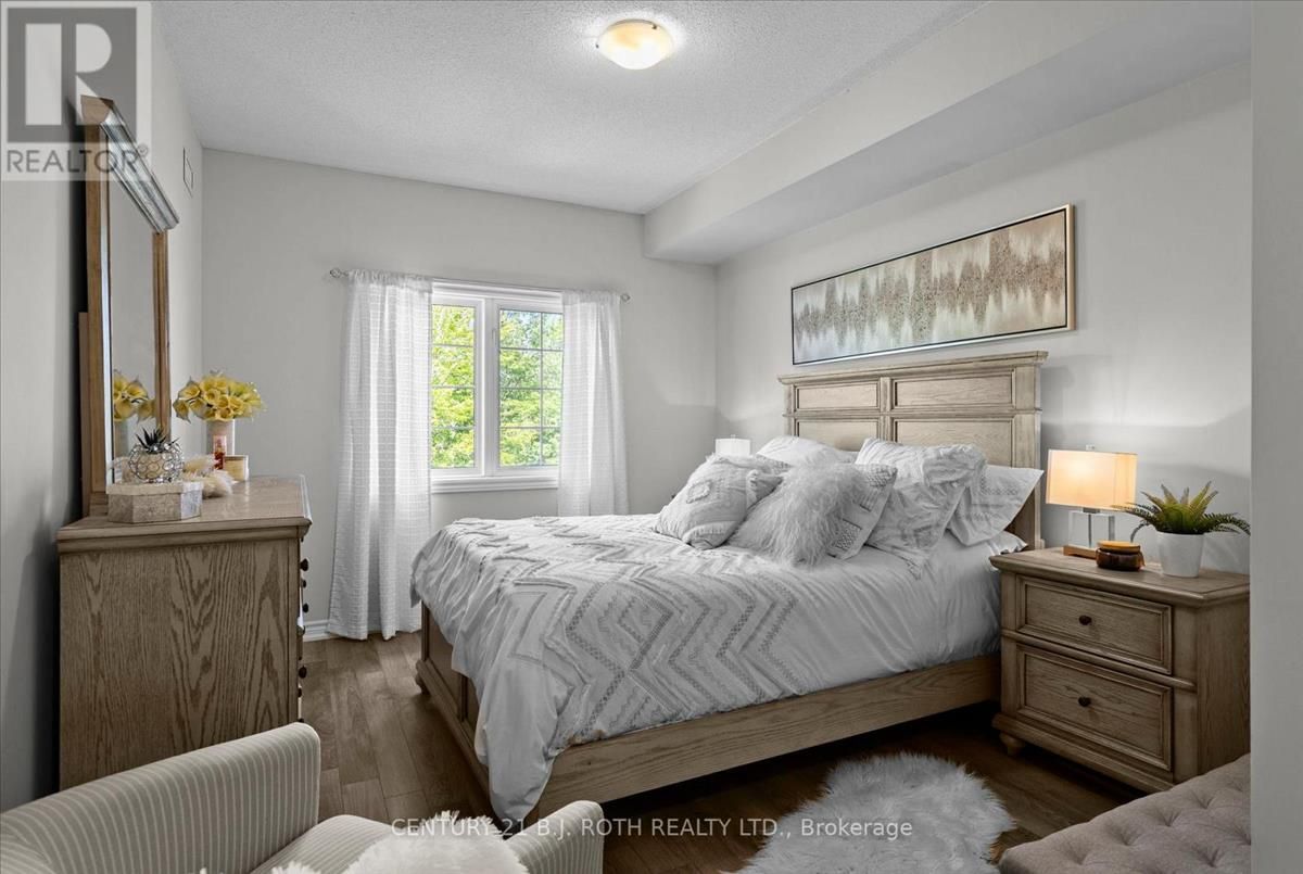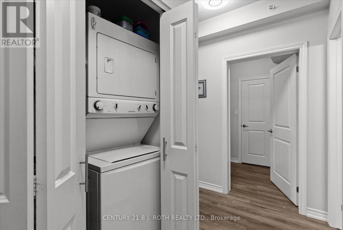 Embrace treetop serenity in one of Barrie's most picturesque communities. Set within the Ardagh Bluffs and wrapped by the natural beauty of Bear Creek Eco-Park, Greenwich Village is prized for its calm setting, walkable green space, and well-kept buildings. Suite 304 delivers that coveted "bungalow feel without the maintenance" and a rare, unobstructed eco-park view from every window and the oversized covered balcony, and yes, barbecues are permitted! Offering approximately 1,101 sq. ft., this bright, open-concept layout features two generous bedrooms, two full baths, and a seamless living/dining space that extends outdoors for effortless entertaining. Thoughtful interior upgrades include 9' ceilings that enhance the airy feel, high-end laminate flooring throughout, a custom built fireplace feature wall, and a well-appointed kitchen with modern slab-style cabinetry, Quartz counters, tile backsplash, under-mount double sink, stainless steel appliances (waterline to fridge), and upgraded plumbing fixtures. A compact water softener and in-suite laundry adds day-to-day comfort. The light, neutral bathrooms keep the palette fresh and timeless. Your private primary retreat offers a large walk-in closet and spacious ensuite. The second bedroom is ideal for guests, family, or a dedicated home office with a view. 1 Surface parking and 1 Underground parking with storage locker are included, practical must-haves for year-round living. Being on the third floor positions you level with the canopy, creating a peaceful, elevated outlook that changes beautifully with the seasons. Suite 304 is a hidden gem in one of Barrie's most desirable low-maintenance communities. (id:26457)