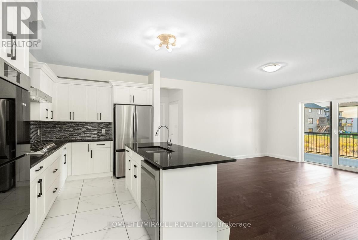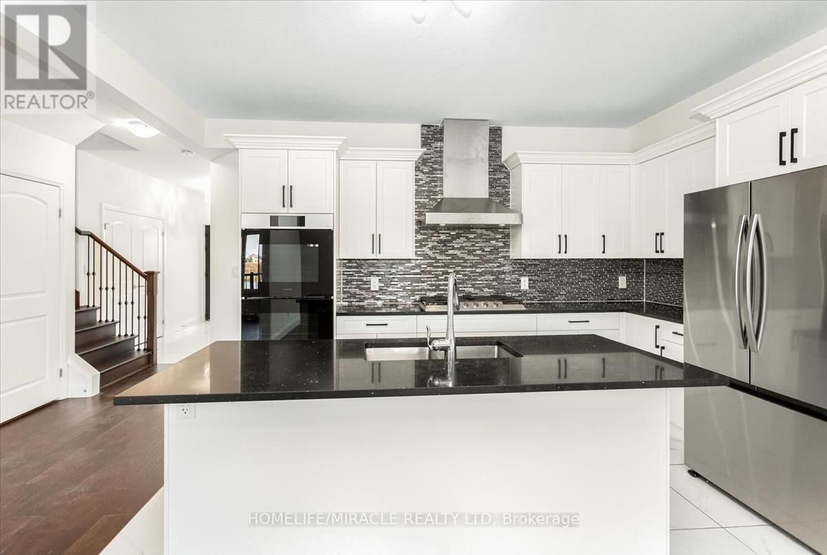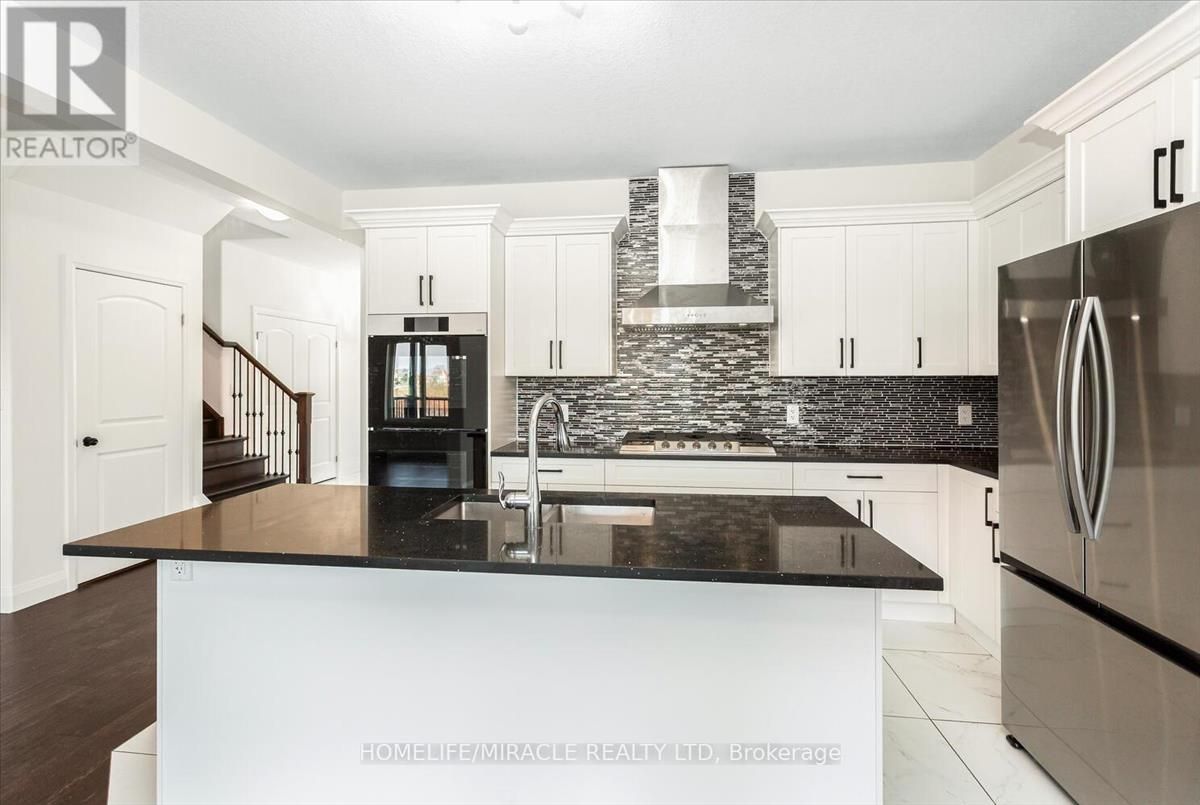 Welcome to 80 Grandville Circle, featuring the sought-after Taj - The Modern Model with an upgraded elevation that includes elegant partial stone detailing. This stunning 5-bedroom, 4-bathroom detached home offers a functional and spacious floor plan with approximately 3,720 sq. ft. of total living space, including the garage. The open-concept main floor showcases a chef's kitchen with upgraded cabinetry, sleek countertops, and brand new appliances including a fridge, cooktop, hood, built-in microwave oven, washer, and dryer. A rare main-floor bedroom with a full bath adds versatility for guests or multigenerational living. The inviting living room is anchored by a cozy fireplace slot and expansive windows that fill the space with natural light. Upstairs, the luxurious primary suite features a spa-inspired ensuite and access to a large balcony deck, perfect for morning coffee or evening relaxation. With a walk-out unfinished basement, 3-car garage, and a premium ravine lot (50.21 x 114.42 ft), this home combines style, comfort, and location in one exceptional package. Located in the heart of Paris, Brant, close to top-rated schools, parks, and shopping, this is a rare opportunity to own a true gem in a thriving community. (id:26457)