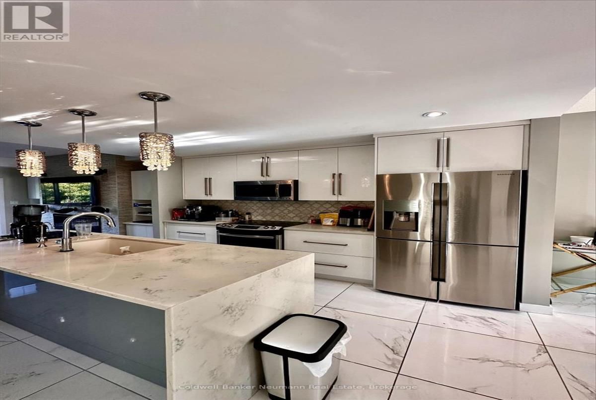 Welcome to one of Guelph's most upgraded end-unit townhomes - 1,596 sq. ft. of thoughtfully designed space in a downtown location that's hard to beat. Every detail of the home has been elevated. The previous owners selected the full range of available upgrades, resulting in a space that is both beautiful and highly functional. You'll appreciate the custom closets in each bedroom, built-ins with storage under every window and along staircases, and millwork framing the dining buffet and TV wall - delivering a polished yet practical finish throughout. The kitchen is a true showstopper, with a marble waterfall island, stainless steel appliances, marble countertops, a designer backsplash, and large 24 imported tile that flows seamlessly into the dining area. Hardwood and ceramic flooring continue through the rest of the home, and a floor-to-ceiling gas fireplace anchors the living room, creating a cozy, lounge-like atmosphere. A true rarity in this location, the two-car garage offers plenty of space for a home gym, workshop, or just everyday storage. Situated directly across from a vibrant park with community yoga, riverside trails, and Guelph's iconic covered bridge, this home places you in the heart of it all. In 10 minutes on foot, you can be enjoying the cafes and bars in The Ward, dining downtown, browsing the Farmers Market, catching a game at the Sleeman Centre, or hopping on the GO Train to Toronto. More than move-in-ready - this home is an investment in a location and lifestyle you'll love for years to come. (id:26457)