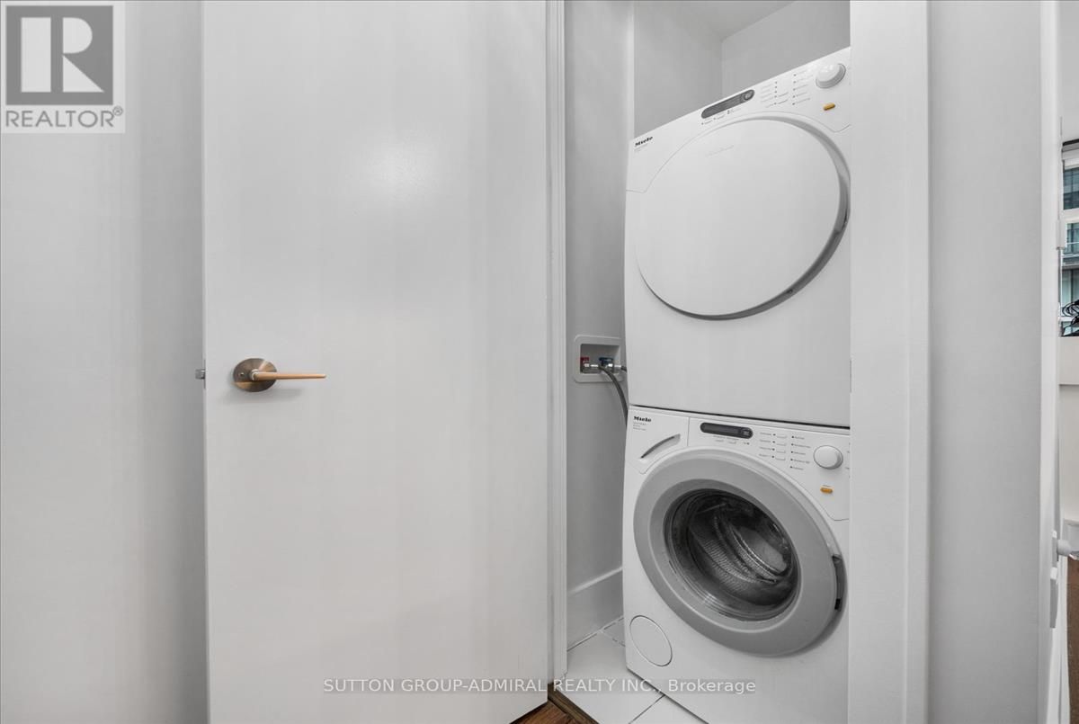 Experience luxury waterfront living at its finest in this stunning 1-bedroom, 1-bathroom condo named Pier 27 located on Queen's Quay East, one of Toronto's most vibrant and desirable neighbourhoods. Just steps from the lake, this beautifully appointed suite offers the perfect blend of modern design, functionality, and style - ideal for professionals, downsizers, or investors seeking a move-in-ready urban retreat.This bright and airy residence features 10-foot ceilings, hardwood floors throughout, and floor-to-ceiling windows that flood the space with natural light. The open-concept living and dining area flows seamlessly to a private balcony with new tile flooring and beautiful lake views, providing the perfect spot to unwind and take in city and water views.The gourmet kitchen is a showpiece, complete with quartz countertops and a large island, Sub-Zero refrigerator, and Miele appliances - combining sleek design with superior performance. The spacious bedroom offers ample storage and a calm, contemporary feel, while the spa-inspired bathroom features modern fixtures and finishes for everyday luxury.Freshly and professionally painted, this suite exudes a crisp, designer aesthetic and is being sold fully furnished with curated designer pieces (see attached list) - making it truly turnkey and ready to enjoy.Additional highlights include one underground parking spot, premium building amenities, and a location that's second to none. Enjoy Toronto's waterfront lifestyle - steps to the lake, Sugar Beach, parks, cafés, restaurants, Loblaws, LCBO, the Distillery District, and transit. Quick access to the Gardiner Expressway and Union Station makes commuting effortless.This is a rare opportunity to own a sophisticated, fully furnished condo in a premier building on Toronto's waterfront. Simply move in and experience the best of Queen's Quay luxury living. (id:26457)
