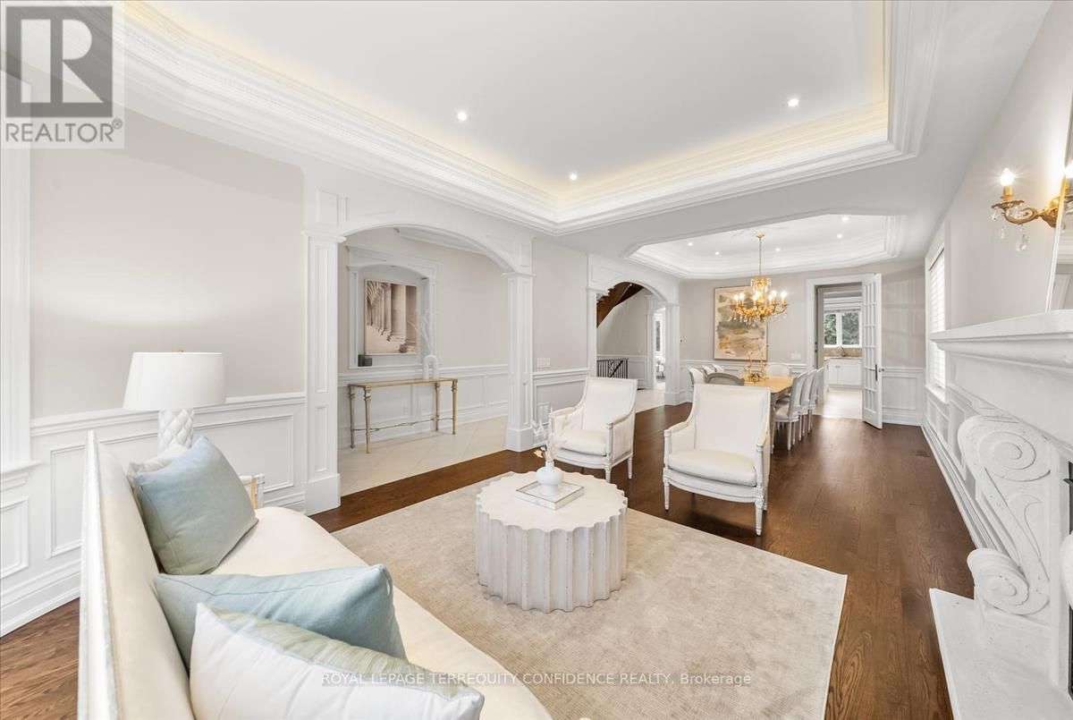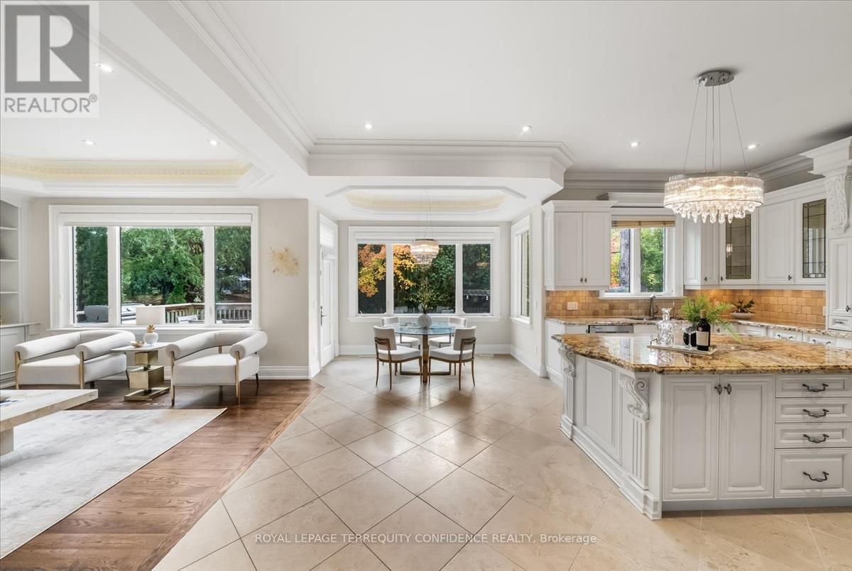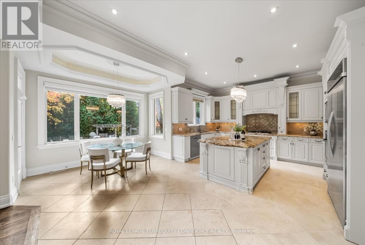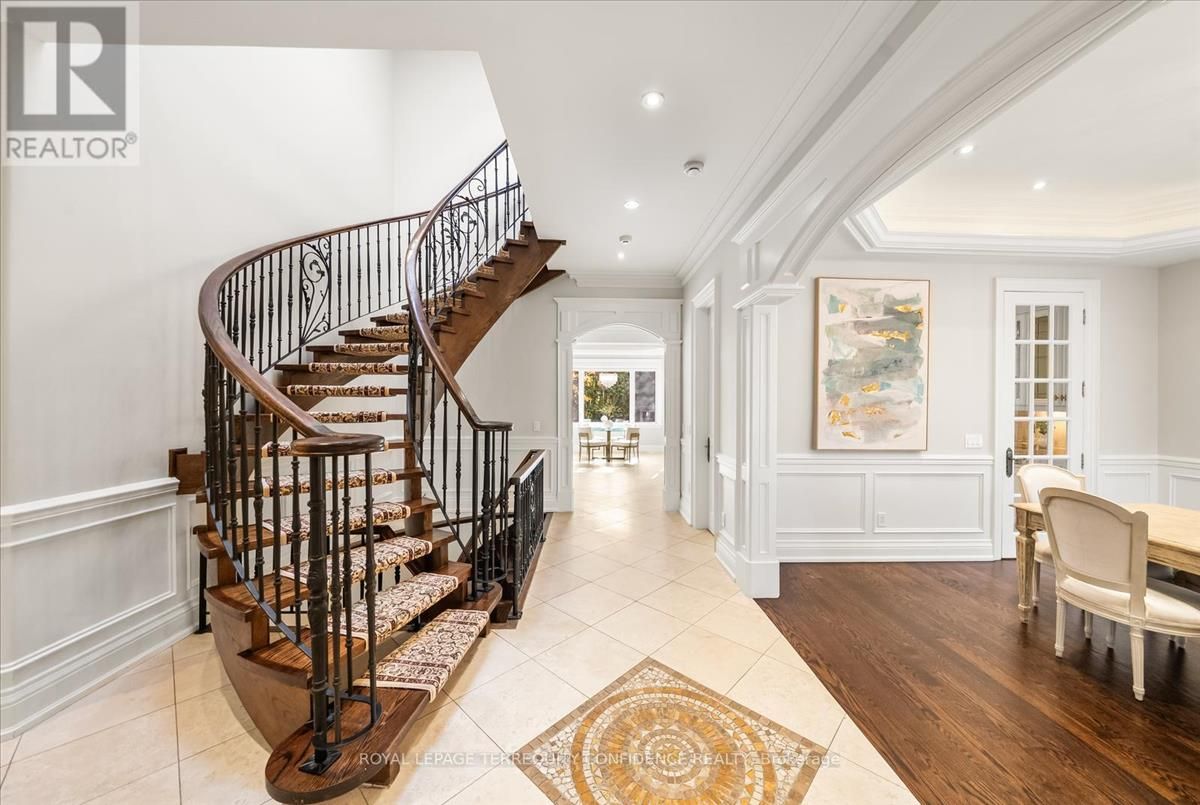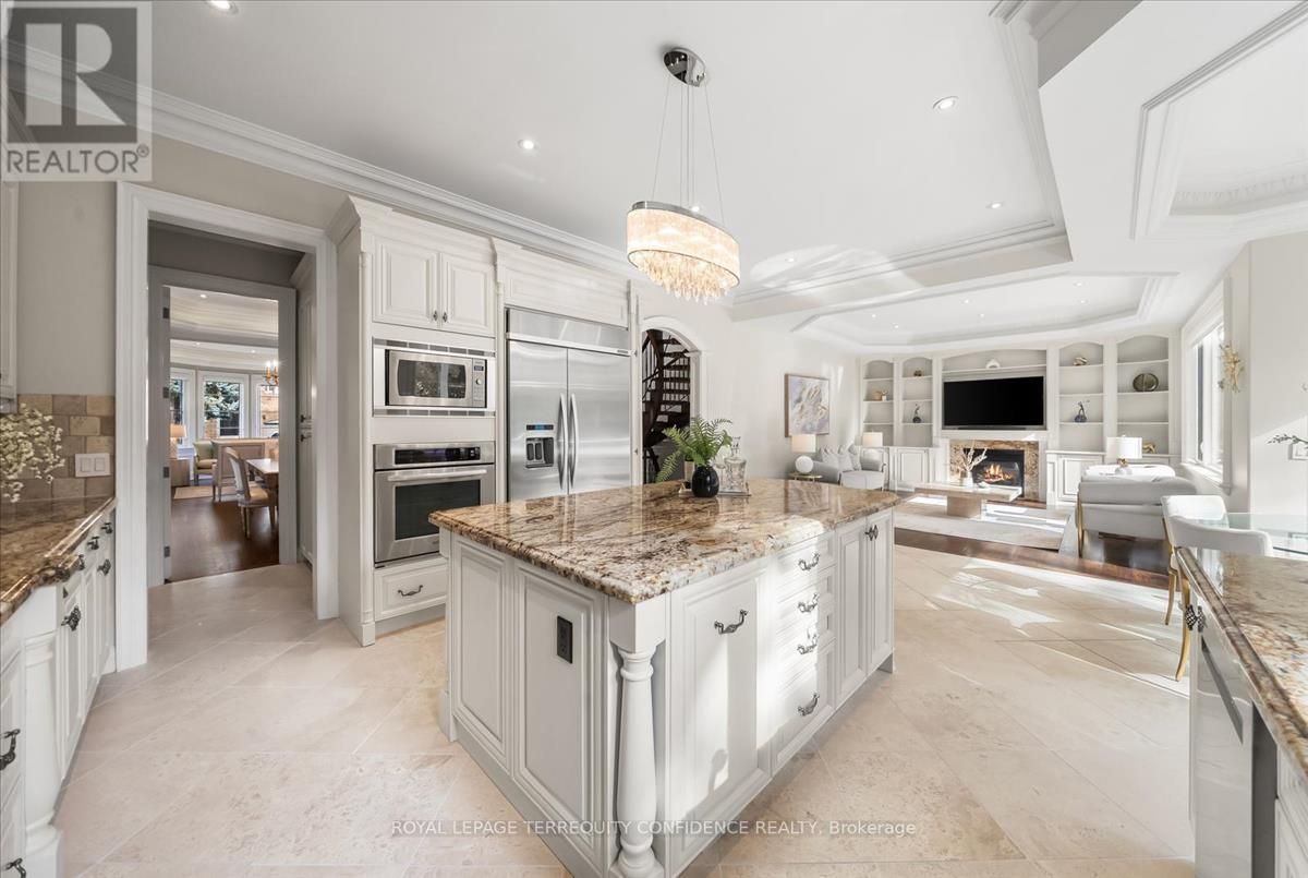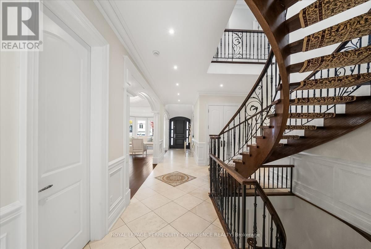 Stately luxury home, situated on a premium 54.24 x 131.5 foot, south-exposed lot in prime Willowdale. Nestled on a quiet tree-lined street, this meticulously maintained and upgraded residence boasts an array of unrivaled features: including a rare 3-car garage, 5 bedrooms, interlocking driveway with no sidewalk, elegant stone façade & manicured grounds. Enter through the solid mahogany front door to the grand double-height foyer. Bright & spacious principal rooms on the main floor, luxuriously finished with solid oak hardwood floors, wainscoting, LED pot lights, 2 gas fireplaces, crown moulding & rope lighting. Journey on to the large kitchen with granite counters, a center island, pantry, servery, built-in appliances, & a sublime breakfast area overlooking the tranquil backyard. Further, the magnificent family room is complete with built-in shelves & a gas fireplace, main floor office with wood paneling & custom built-ins. Upstairs, discover 5 large bedrooms; including the primary suite with a 10-foot vaulted ceiling, his & hers closets, a 7 piece ensuite, and balcony. The walk-out, finished basement is a private haven; with a recreation room, wet bar & gas fireplace, gym/theatre, & additional bedroom. Discover spectacular home upgrades throughout, including: new A/C (2023), dishwasher (2024), kitchen hood (2024), high-end silhouette window coverings (2022), high-end toilets (2022), central vacuum (2021), washer & dryer (2021), extra washing machine (2023), LED lighting (2023), sprinklers (2022), water filtration (2024), updated designer chandeliers, security system, exterior motion-sensing lights, and more. Highly desirable and convenient location with only minutes to highly ranked private & public schools, Earl Haig S.S., Bayview Ave, shops, & parks. Enjoy this truly rare combination of craftsmanship, functionality & timeless elegance. (id:26457) ...
