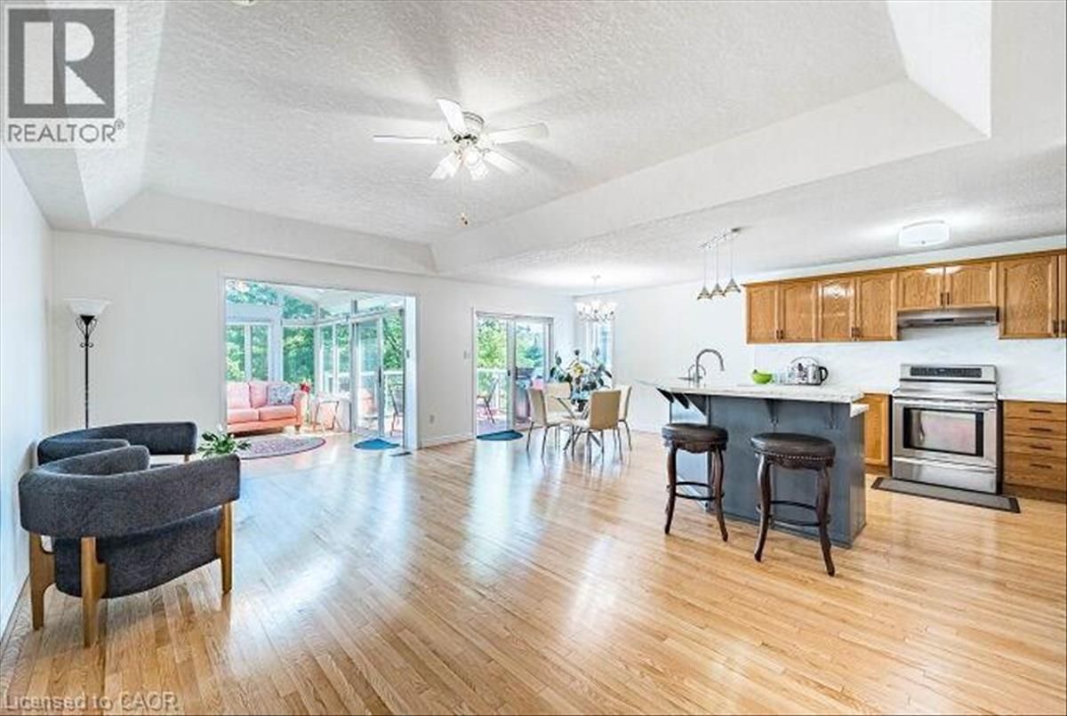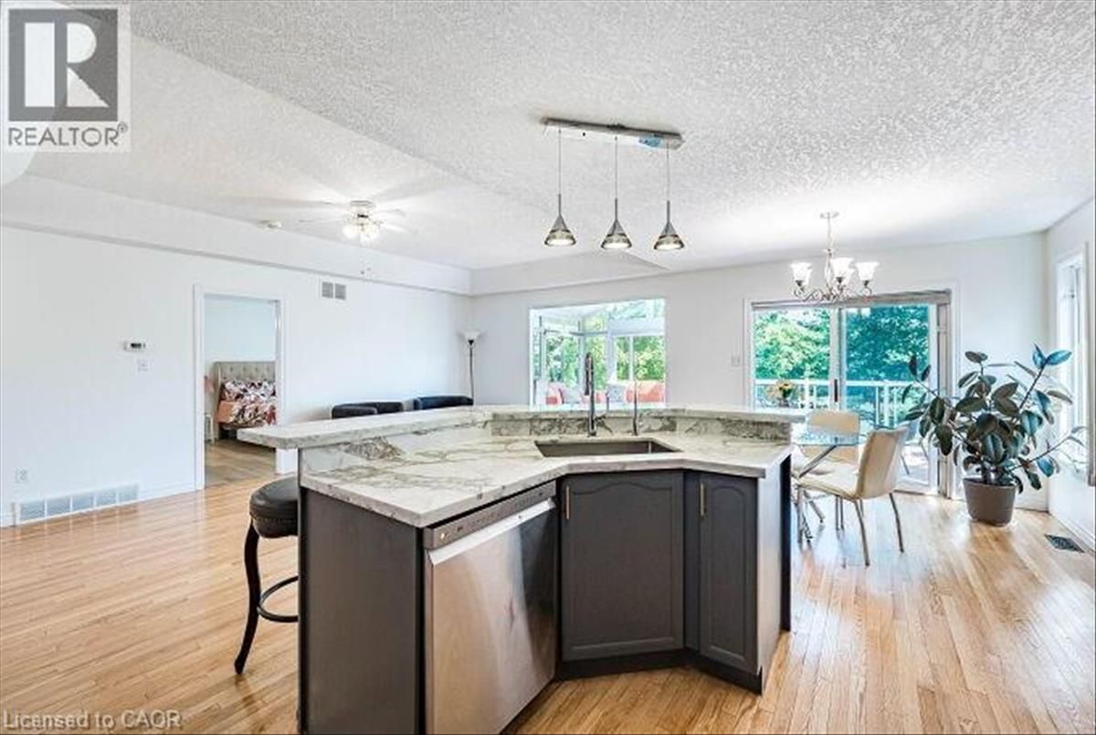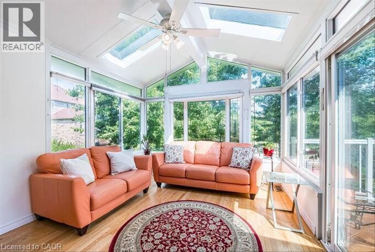 Luxury Walkout Bungalow with Million-Dollar View in Prestigious Rosewood Community, Clair Hills. Experience refined living in this elegant brick bungalow, offering a seamless blend of space, style, and natural surroundings with breathtaking views of the ravine and pondâ??nestled in one of Waterlooâ??s most sought-after neighbourhoods. This exceptional all-brick 2+2 bedroom, 3 full bath walkout bungalow offers impeccably finished living space with stunning, unobstructed views of the ravine and pond. Set in one of Waterlooâ??s most desirable neighbourhoods, this home is a rare blend of elegance, comfort, and natural beautyâ??an ideal retreat right in the city. Designed for comfort and style, the main level welcomes you with rich hardwood flooring, elegant coffered ceilings, and an abundance of natural light. It features two bedrooms, a bright kitchen seamlessly flowing into the living and dining areas, and convenient main floor laundry. A standout feature is the sun-drenched tropical-style sunroom, complete with vaulted ceilings, skylights, and an electric fireplaceâ??perfect for any season. Step through the sliding glass doors onto the upper deck to enjoy breakfast with the sounds of nature or unwind under the stars. The walkout basement extends the living space with two generously sized bedrooms and an open-concept Great room featuring a gas fireplace, alongside dedicated areas for reading and fitness. Sliding doors open to a covered lower deck offering tranquil views of the pond and surrounding mature treesâ??an ideal space to relax or entertain. Close to the University of Waterloo, top-rated schools, shopping centers, walking trails, medical facilities, places of worship, and movie theaters, this home perfectly balances comfort, privacy, and convenience. Featuring double decks and a stunning natural setting, this rare gem wonâ??t last long. (id:26457)