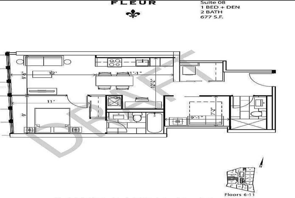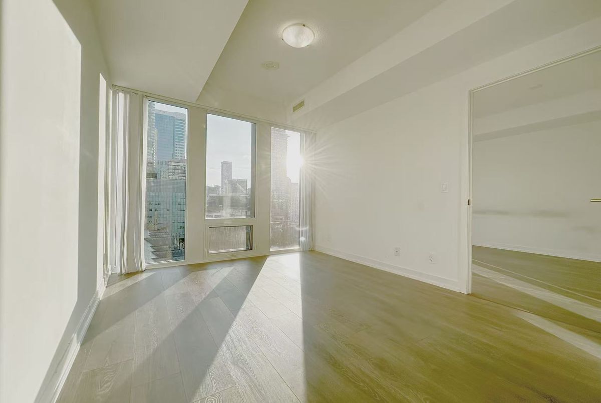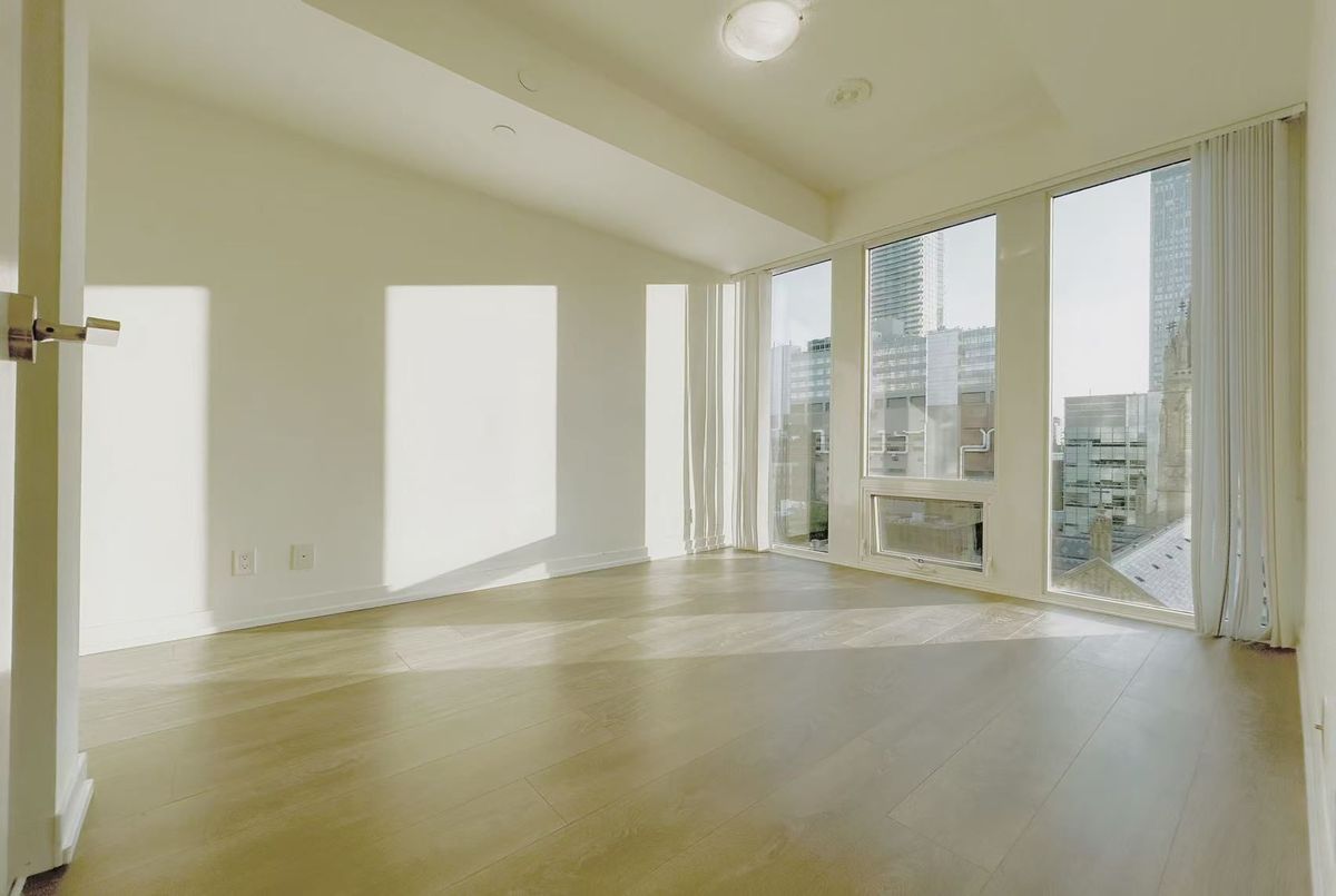 Experience the peak of downtown Toronto living at Fleur Condo by Award Winning Builder Menkes! This 677 sqft west-facing 1+1 bedroom suite is perfectly situated near entertainment, restaurants, and transit options. WIth two full bathrooms and a spacious den - already enclosed for your convenience - that can be used as a second bedroom, this unit offers flexibility for work or a separate living space. Experience top-level amenities such as a party room, media room, and a rooftop terrace with a BBQ, where you can unwind and enjoy the breathtaking views. Stay active and rejuvenated with access to a well-equipped gym and a separate room dedicated to yoga. With a 24-hour concierge, convenience and security are at your doorstep. Located just moments away from MTU, Eaton Centre, George Brown college, St. Lawrence Market, and an array of shops and restaurants, everything you need is within easy reach. Steps from world class universities, hospitals, and shopping, this location is unparalleled! Building amenties include a 24-hour concierge, party room, rooftop terrace with BBQ facilities, media room, kids' playroom, and a state-of-the-art gym. Don't miss this opportunity to live in one of downtown's most sought-after locations!