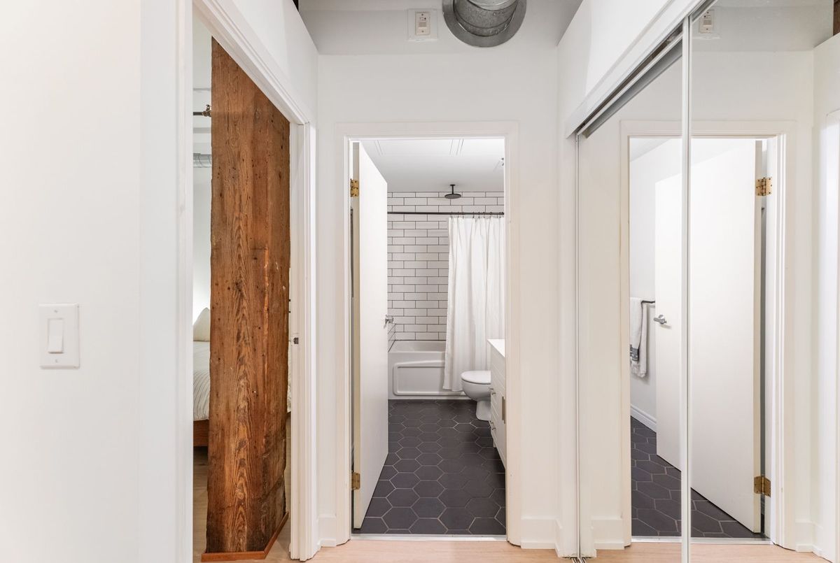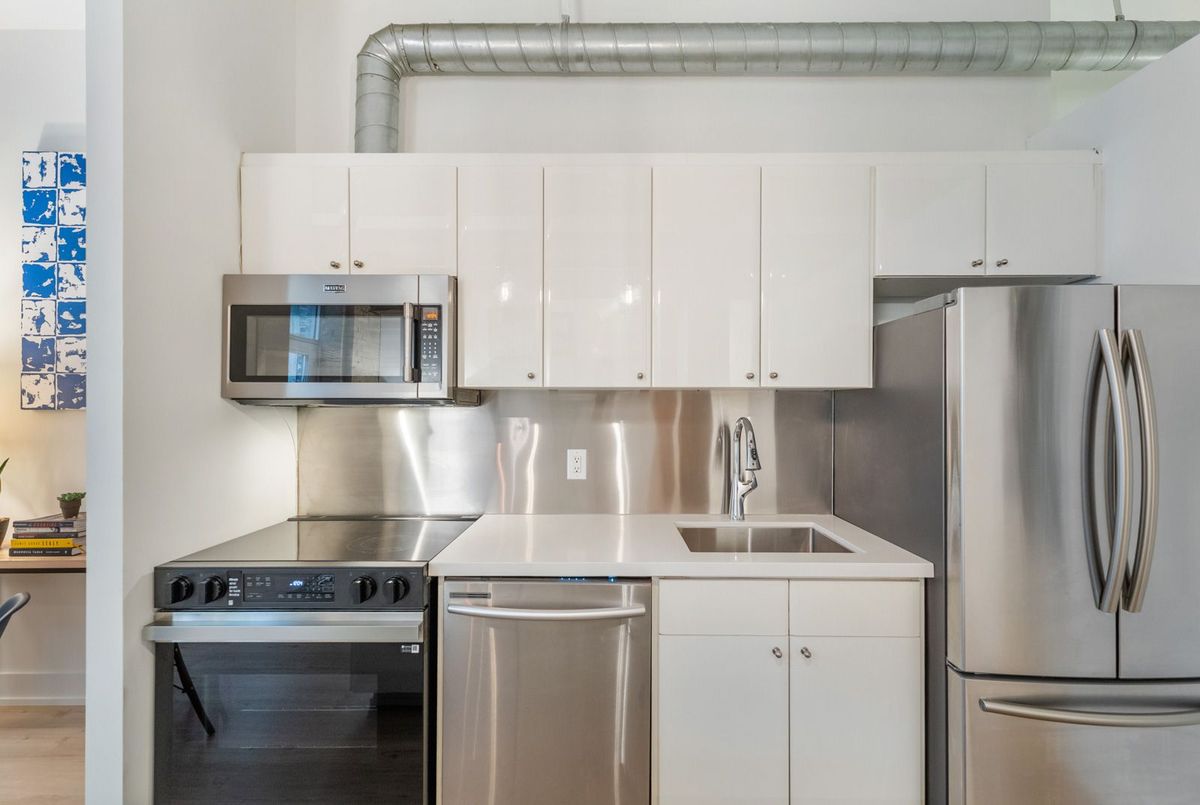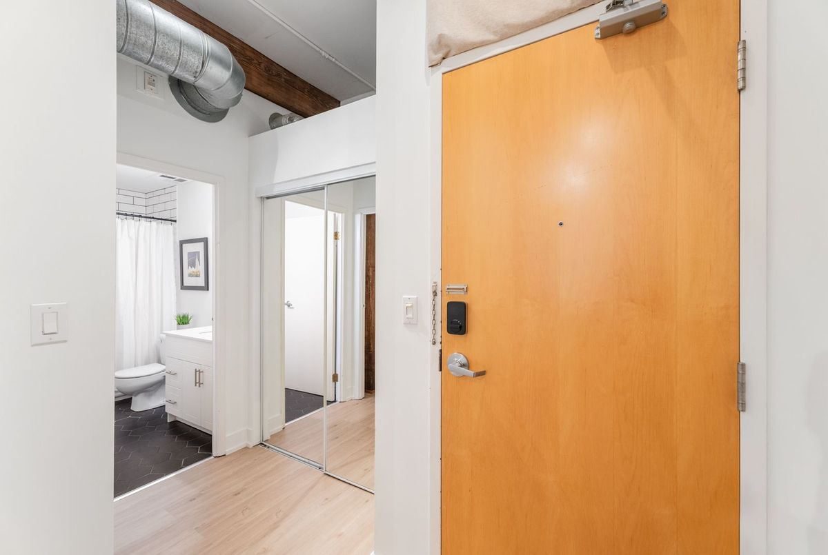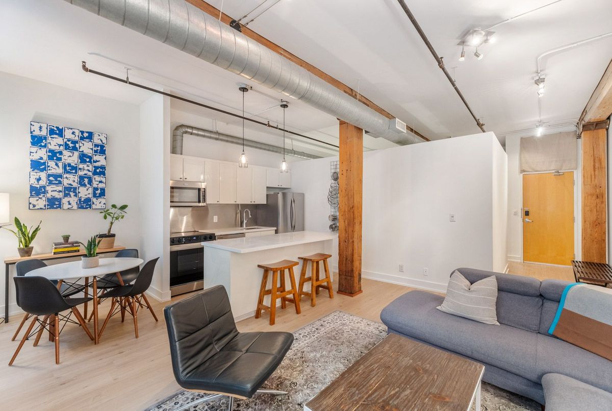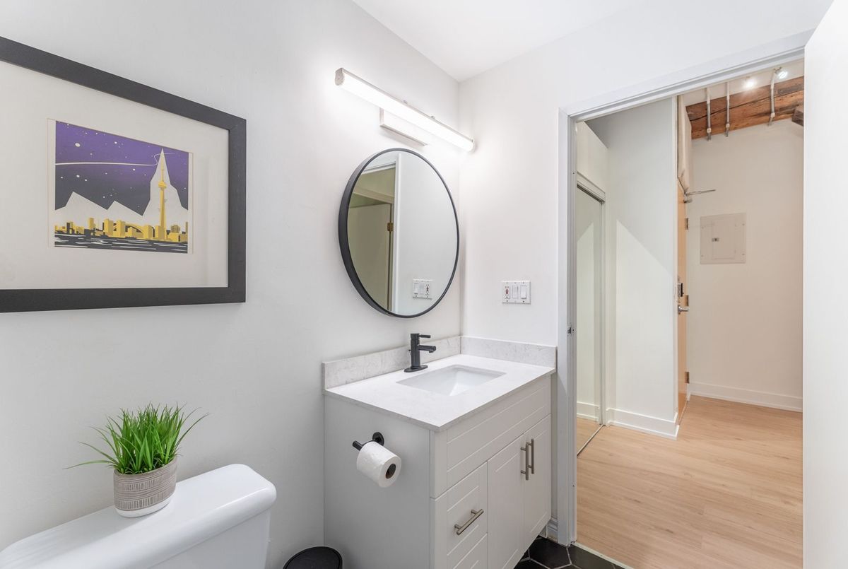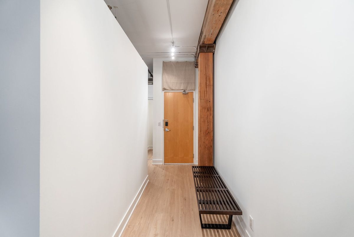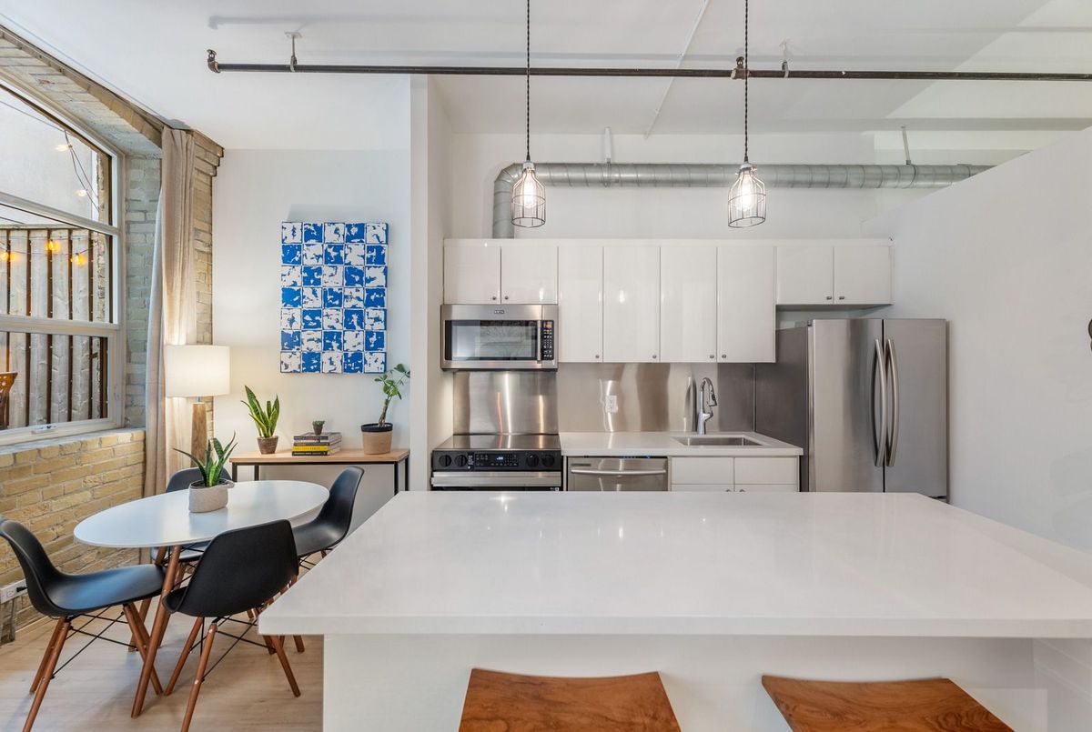 Authentic hard loft with private terrace in the heart of downtown Toronto. Welcome to the iconic Liberty Lofts at 383 Adelaide Street East, where character and modern convenience meet. This rare one-bedroom main-floor hard loft offers soaring 11-foot ceilings, exposed brick and beams, oversized industrial windows, exposed ducts, and all the charm that comes with true loft living. The open concept layout is bright and versatile, blending historic details with contemporary finishes. The kitchen is designed for both style and function, flowing seamlessly into the spacious living and dining areas. The bedroom is tucked away for privacy while maintaining the loft's airy feel. Step outside onto your private terrace, perfect for a morning coffee, entertaining, or simply unwinding at the end of the day. Get your BBQ on! This loft offers an ultra-rare gas line for you to cook up a storm on the terrace. Located in a boutique building rich with history, you're surrounded by vibrant neighbourhoods including St. Lawrence Market, Distillery District, Design District and Corktown. Cafés, restaurants, shops, and transit are all just steps from your door. A perfect blend of heritage and modern living, this loft is ideal for those seeking something truly unique in downtown Toronto. Don't miss this opportunity; they don't come up often.