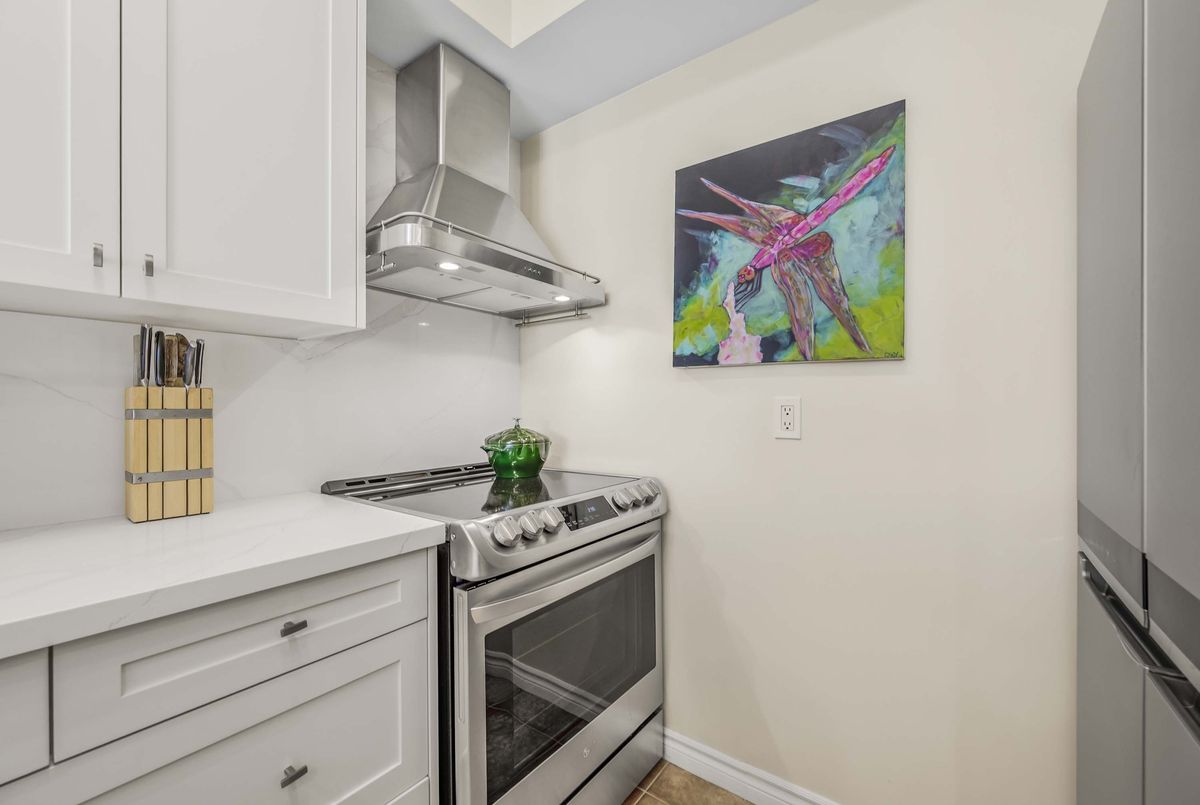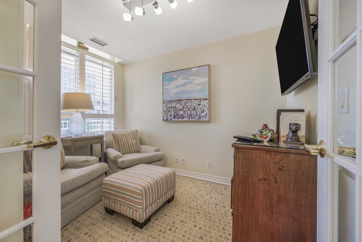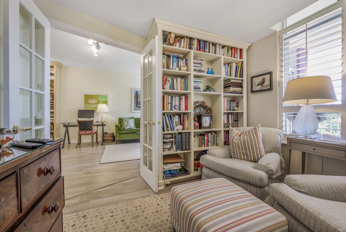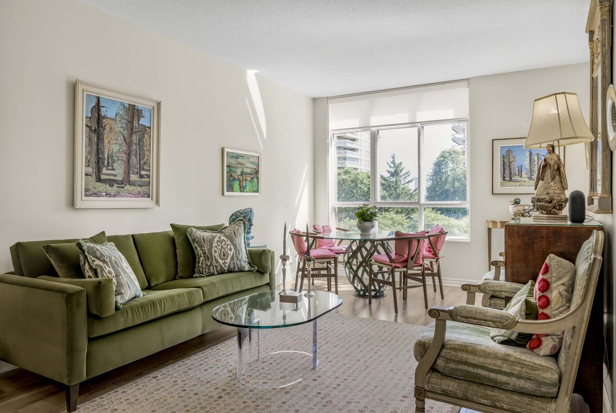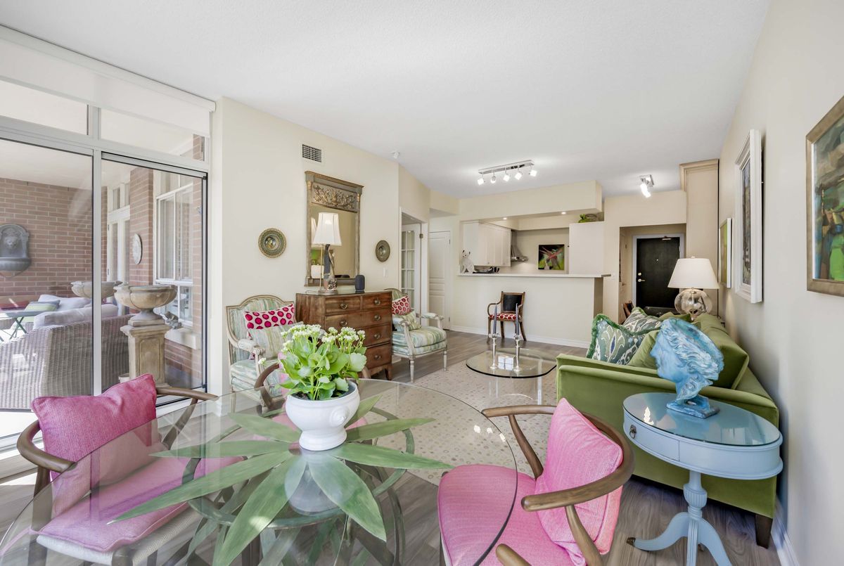 Welcome to Deer Park Residences at 1 Deer Park Crescent, an elegant boutique condominium in the heart of the Yonge and St. Clair district. This beautifully renovated suite offers approximately 887 sq.ft. of well designed living space with soaring 9 ft ceilings and treed south views. The bright open concept living and dining area features laminate flooring and a walkout to a private full width balcony, perfect for enjoying iconic views along St. Clair Avenue West. A modern kitchen is fitted with quartz counters, stainless steel appliances, and an airy open layout ideal for both cooking and entertaining.The primary bedroom includes a walk in closet, a four piece ensuite, and direct balcony access, creating a private retreat with plenty of natural light. A versatile den/second bedroom with French doors offers the flexibility of a guest room, office, or den. Additional conveniences include a two piece powder room, and ensuite laundry. One underground parking space with two bike racks and an exclusive use locker are included. Residents enjoy security desk (Mon-Fri 9am-5pm/Wknds 10am-4pm), an exercise room, and a stylish party room. Located in one of Toronto's most desirable neighbourhoods, this suite is just minutes to Yonge Street premier shops, fine dining, and everyday conveniences. The TTC is at your doorstep and Rosehill Reservoir, one of the city's lushest green spaces, is only moments away.