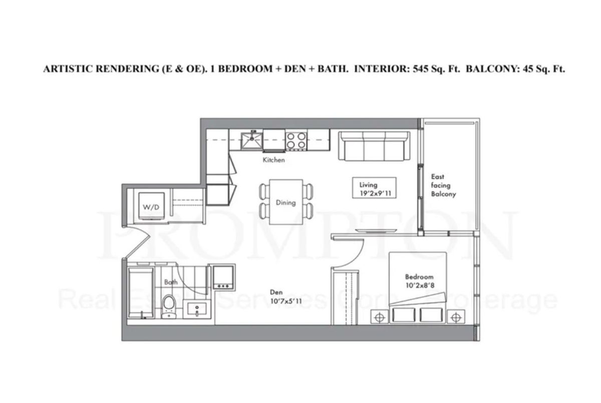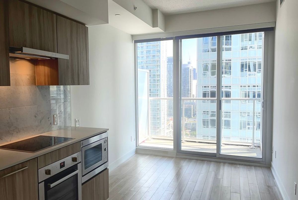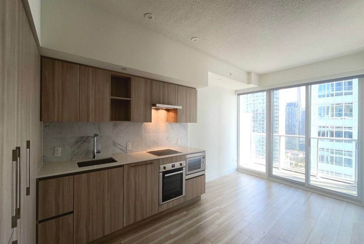 An Open Concept and Functional, 545 Sq. Ft., 1 Bedroom + Den + 1 Bath condo unit with laminated floors with premium built-in appliances, cabinet organizers, quartz countertop; a spa-like bath with marble tiles and with a 45 Sq. Ft. East facing balcony to the CN Tower. Prime Downtown Location in the heart of Bathurst and Lake Shore Blvd W area. Steps To Loblaws, Shoppers Drug Mart, TTC Transit streetcar (to Toronto Western Hospital, CAMH, Union Station & TTC Subway Stations); Less than 15 Minutes walk to Fort York Library, Canoe Landing Park, Billy Bishop Toronto City Airport (YTZ) and more. Easy Travel To Toronto Western Hospital, CAMH, Union Station, King West, Queen West, Tech Hub, Financial/Entertainment Districts, QEW/Gardiner, Rogers Centre & more. Be A Part Of This Vibrant Community! Heat, Cooling ("A/C"), Water, 1 Parking Spot & 1 Locker are Included. Furniture, Hydro ("Electricity"), Internet, Cable TV & Tenant Insurance are Not Included.