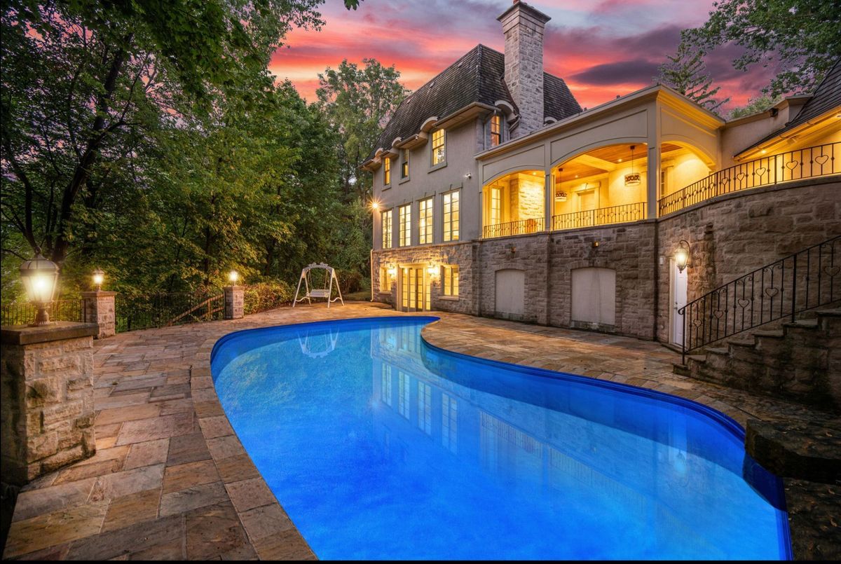 Backs Onto Ravine! Perched gracefully at the highest point of Hoggs Hollow, this French Château inspired masterpiece sits on a spectacular 239.08 x 207.81 ft ravine lot (approx. 1.14 acres). Designed by Dee Dee Taylor Hannah and built by award-winning builder Michael Rossini, this timeless stone estate offers over 10,000 sq.ft. of luxurious living space, blending European elegance with modern comfort. The homes distinctive curved and symmetrical design showcases architectural artistry rarely seen today. Featuring 4 bedrooms with ensuites, 9 washrooms, and a 3-car garage with a circular driveway accommodating up to 15 cars, all principal rooms face west, overlooking the serene ravine. A grand marble foyer, curved hallways, and custom millwork opens to elegant living and dining rooms that walk out to the ravine and garden. Two libraries on main floor, five fireplaces, built-in speakers, 10-ft ceilings, and hardwood floors throughout. The gourmet kitchen with double granite islands and an open-concept family room with motorized curtains creates a warm and inviting space for entertaining.Step out to a 700 sq.ft. patio with outdoor fireplace and panoramic ravine views. The primary suite features a lavish 7-piece ensuite, his & her walk-in closets, and heated bathroom floors. The walk-out lower level wth heated floors includes a home theatre, wine cellar, sauna, wet bar, nanny/guest ensuite, and a recreation room with fireplace opening directly to the backyard oasis.The heated concrete pool with cascading waterfall, framed by mature trees, creates a private, resort-like retreat. A rare offering combining elegance, privacy, and tranquility, just moments from the Granite Club, top private schools (Crescent, TFS, Havergal, UCC, BSS), fine dining, and Rosedale & Don Valley Golf Clubs.A true statement of taste, craftsmanship, and enduring luxury in one of Torontos most prestigious enclaves. ...