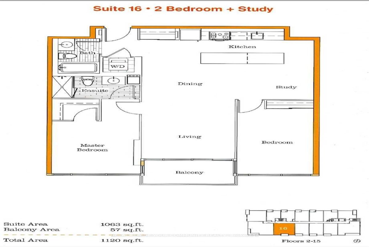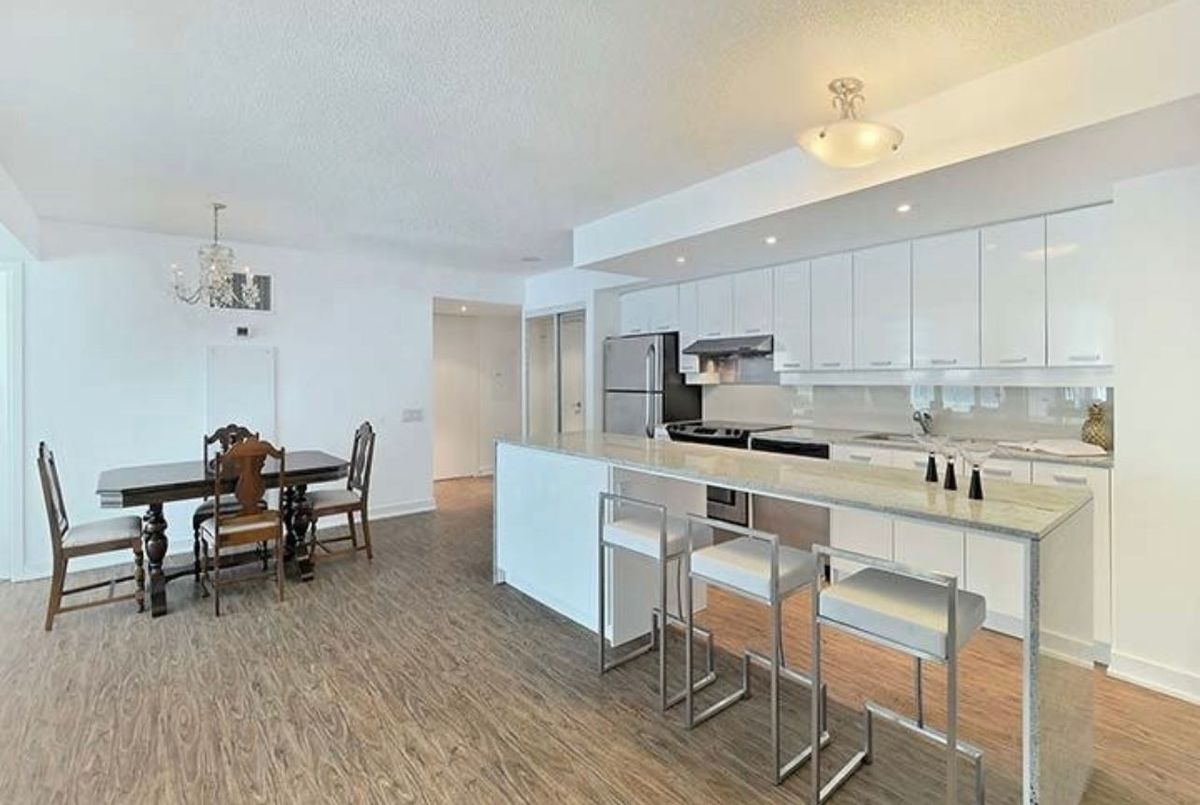 Beautiful 2 Bedroom + Study in the Highly Desirable 15 Singer Court. Spacious 1,063 sq. ft. suite plus a 57 sq. ft. private patio/terrace. Open-concept layout featuring a combined living, dining, and study area with a modern renovated kitchen. The kitchen boasts stainless steel appliances and a large granite center island perfect for entertaining. Generously sized bedrooms with wall-to-wall windows and ample closet space. Walk out to your patio/terrace and enjoy the fantastic location! Steps to subway and GO station, with easy access to major highways. Well-managed building with top-notch amenities.