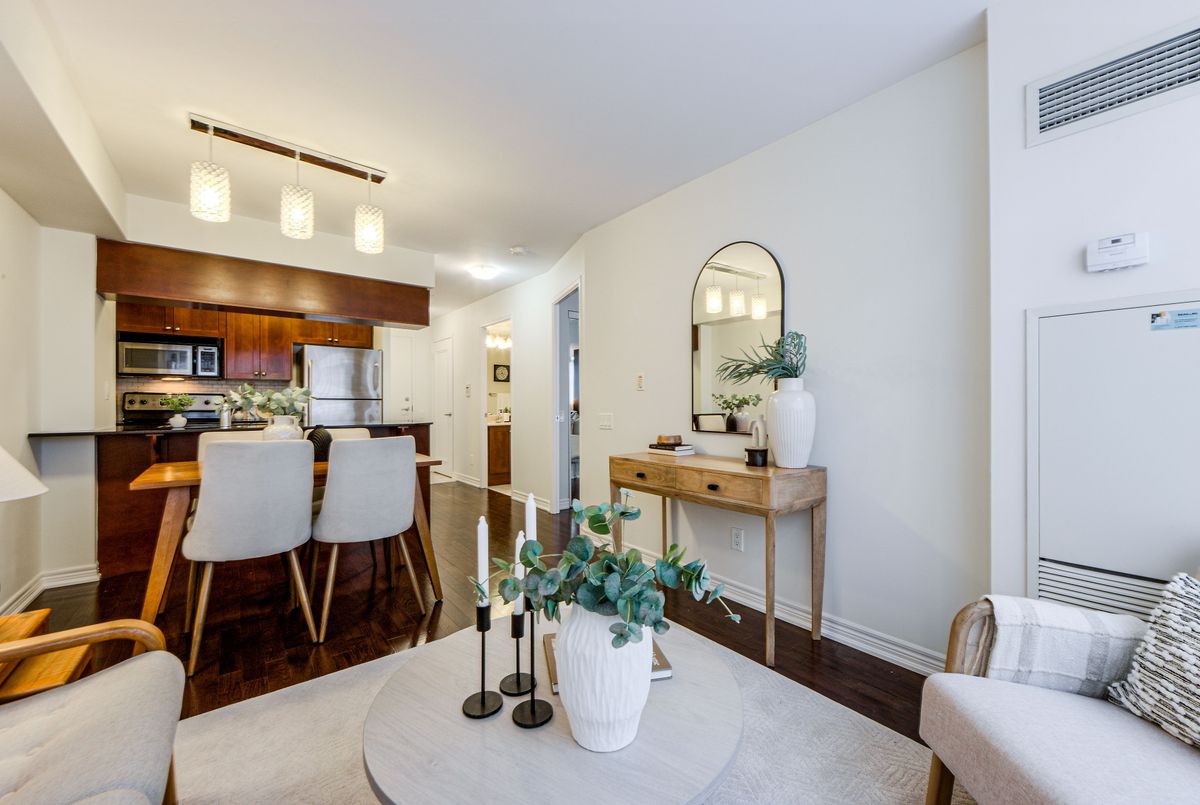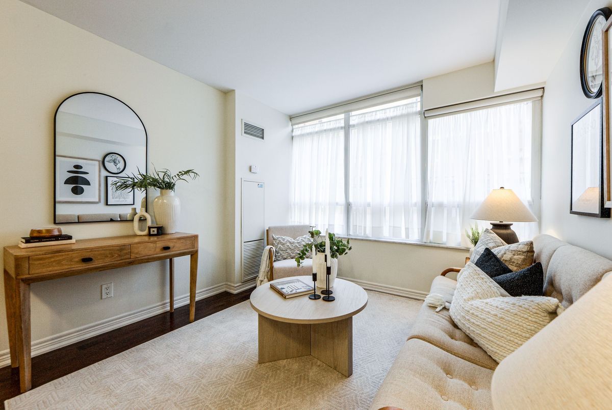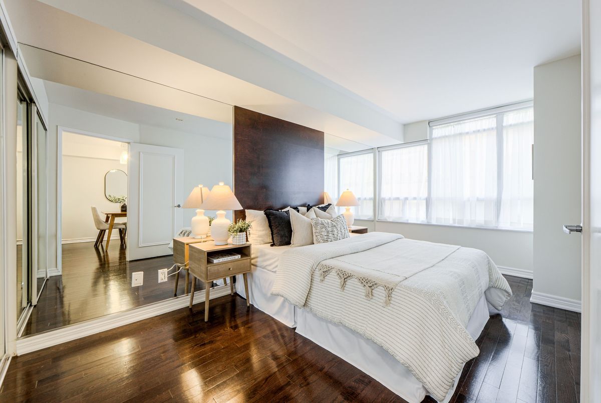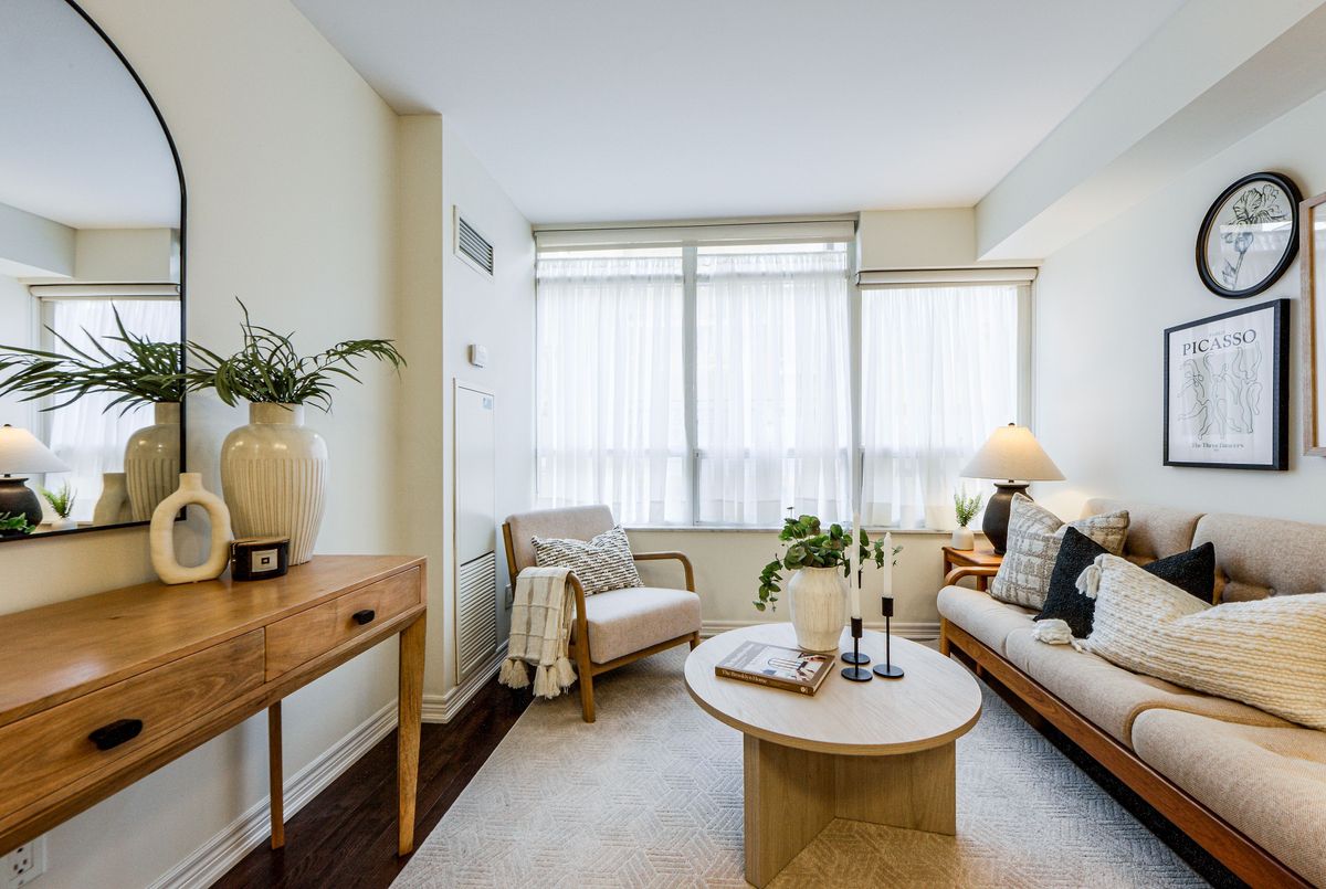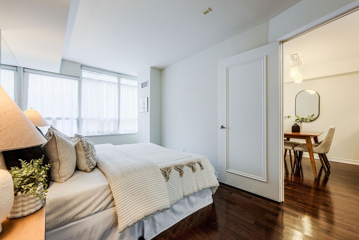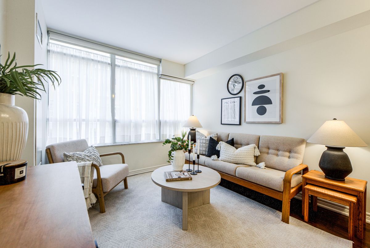 **No offer date** Welcome to 60 St Clair W, an elegant and quiet boutique building in prestigious Deer Park with just 14 floors and 92 units. This sunny south facing 1-bedroom condo apartment offers 596 sq ft of well-designed living space. This bright and airy home boasts incredibly spacious rooms and quality finishes throughout including hardwood floors, full-size stainless-steel appliances and terrific storage throughout. The open-concept layout features a modern kitchen, generous dining and living area, and a bedroom that fits a King size bed. Lovingly maintained unit! Come home to a modern lobby, enjoy the well-equipped bright gym, updated party/meeting room, concierge service and visitor parking. A stones throw to Yonge & St Clair, the convenience is unparalleled. In this fabulous and safe location, every amenity accessible without a car: groceries, drugstore, liquor store, restaurants, cafes, banks, TTC, green space. Whether you are searching for your first home, pied-a-terre, a long term investment, this unit is a rare find in prime Midtown Toronto that checks off all the boxes.