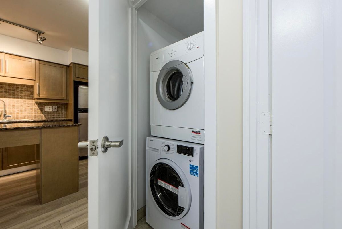 Welcome to Tridel's The Element, where downtown convenience meets urban sophistication. This bright and spacious 1-bedroom suite offers about 560 sq. ft. of functional living space with floor-to-ceiling windows, a modern kitchen featuring granite countertops, full-sized appliances, and a breakfast bar ideal for entertaining or working from home. Enjoy city views from your private balcony and a large bedroom with a double closet and abundant natural light. Perfectly located steps from the Rogers Centre, CN Tower, Financial District, PATH, TTC, and top restaurants. Includes parking and locker.