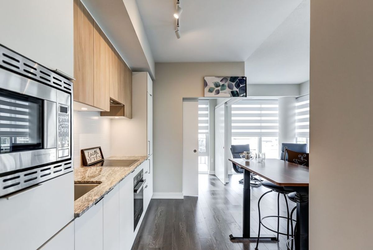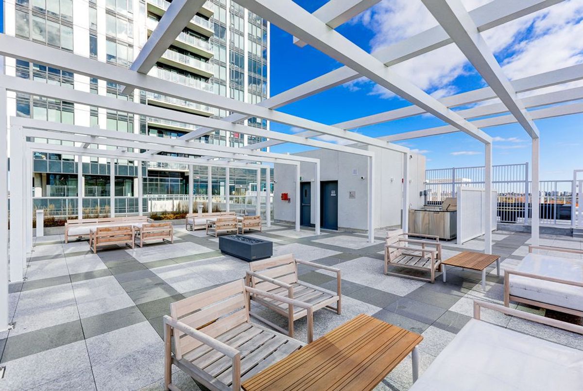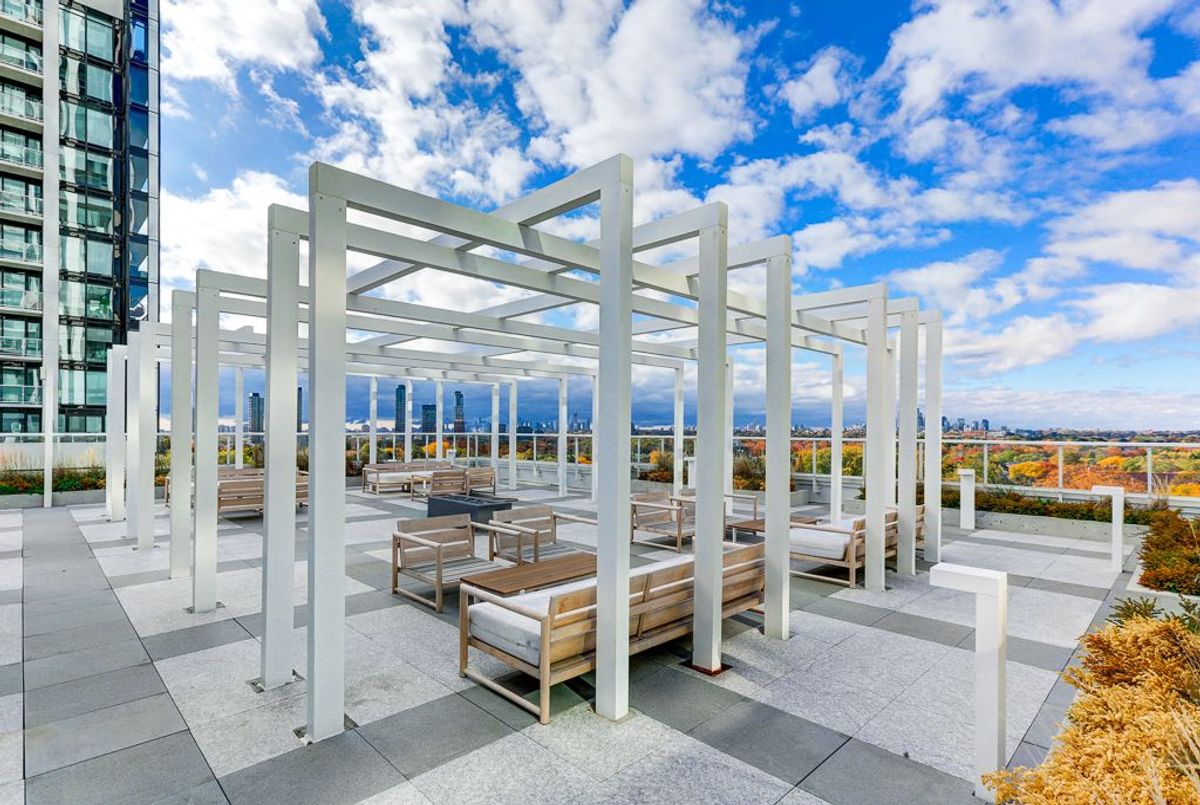 STUNNING , Luxury 1 year New, Rare Corner Unit; filled with TONS OF NATURAL SUNLIGHT! State of the Art Building with the Beverly Hills Vibes located at the Shops of Don Mills, 1+1 bedroom, Approx 700 sq ft.,. Imagine surrounding yourself with bright Windows with views of the skyline and Tree Tops. Step out to Premium shops and restaurants, VIP movie theatre, steps to the Botanic gardens, Ravine trails and more. This over sized condo offers cosmopolitan living with 9' ceilings, granite counters, marble bathroom floor, Miele B/I appliances, High end laminated flooring, 2 walk outs to the Balcony, freshly painted through-out, custom 2-tones blinds. Enjoy 24 hr concierge, Roof top out door pool, bar lounge, hot tub, BBQ area, gym, party rooms ideal to rent for personal gatherings), Indoor pool, gym and saunas with a walk-out to another lounge area, Mins to the DVP and down town. Everything in one spot! Enjoy a quality life style!