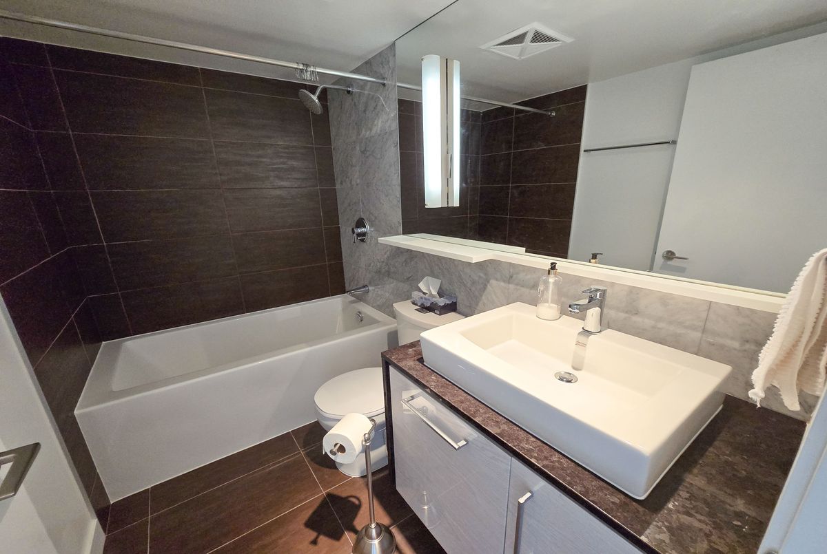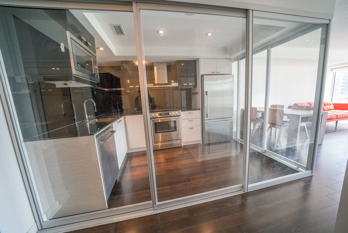 Welcome to Tango at Concord Parkplace. A Rarely Offered 1+Den with Unmatched Features! Step into this immaculately maintained 668 sq ft suite with an additional 38 sq ft balcony, offering west facing unobstructed views of the park. This thoughtfully upgraded unit stands out from the crowd with hardwood floors, high-end stainless steel appliances, luxurious stone counters, and upgraded cabinetry in both kitchen and bath. The sleek kitchen boasts upgraded sliding glass doors, allowing you to enclose the space completely. Ideal for separating the space or keeping cooking aromas contained while adding a touch of modern elegance. The oversized closet in the foyer offers exceptional storage or can function as a personal locker. Enjoy natural light through premium blinds in both the living area and primary bedroom. The open, versatile den is perfect for a home office or creative studio. Tango residents benefit from resort-style amenities: a large gym, sauna, three outdoor hot tubs plus one indoor hot tub, two guest suites, party room, 24 hour concierge, ample visitor parking, and inviting outdoor seating areas under a canopy. Located in the vibrant Bayview Village / North York corridor, you're just minutes from Bayview Village Shopping Centre, IKEA, Leslie and Bessarion subway stations, Oriole GO Station, and North York General Hospital. Quick access to Highway 401 and 404 puts the entire city at your doorstep. Enjoy nearby parks, top-rated schools, cafes, and restaurants, making this an ideal home for professionals, couples, or investors seeking style, convenience, and value.