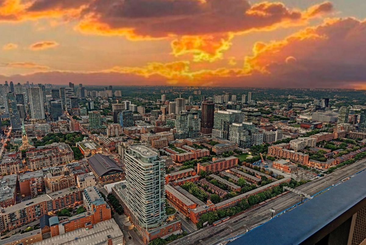 Welcome to Suite 6901 at 138 Downes. A soaring 69th-floor retreat at Sugar Wharf that pairs luxury finishes with jaw-dropping views and amenities that rival five-star hotels. With 698 sq ft inside + 110 sq ft of outdoor living, this 1+1 is more than a condo, it's a statement. From the moment you walk in, the light pulls you forward. 10' ceilings and floor-to-ceiling windows frame an ever-changing canvas of the Financial District, St. Lawrence Market, and Lake Ontario. Whether you're sipping your morning coffee or entertaining at night, the view is always on. Inside, the space is dialed-in for modern living. The kitchen is a dream: built-in Miele appliances, marble backsplash, LG microwave, custom range hood, and pantry drawers that slide like butter. The layout flows effortlessly, with a spacious living area, two full baths, wide-plank floors, and a den large enough to become a guest room, creative studio, or your home office escape. The private balcony wraps you in the sky, a front-row seat to Toronto's skyline magic. And unlike most, this suite comes with a dedicated locker, giving you the rare bonus of extra storage. But the true lifestyle flex? It's what's included in your maintenance fees. It unlocks full access to Unity Gym, a 45,000 sq ft state-of-the-art fitness club (valued at $242/month), plus Bell Fibe 1.5 Gbps internet (valued at $110/month). Add in a heated indoor pool, sport courts, co-working lounges, rooftop gardens, party rooms, kids zone, guest suites, and 24/7 concierge, and you're living in a resort that just happens to be your home. Sugar Wharf is more than an address, its a waterfront village in the sky. With Union Station, the PATH, Sugar Beach, Farm Boy, LCBO, and the energy of downtown just outside your door, you're always plugged in and always above it all. ...